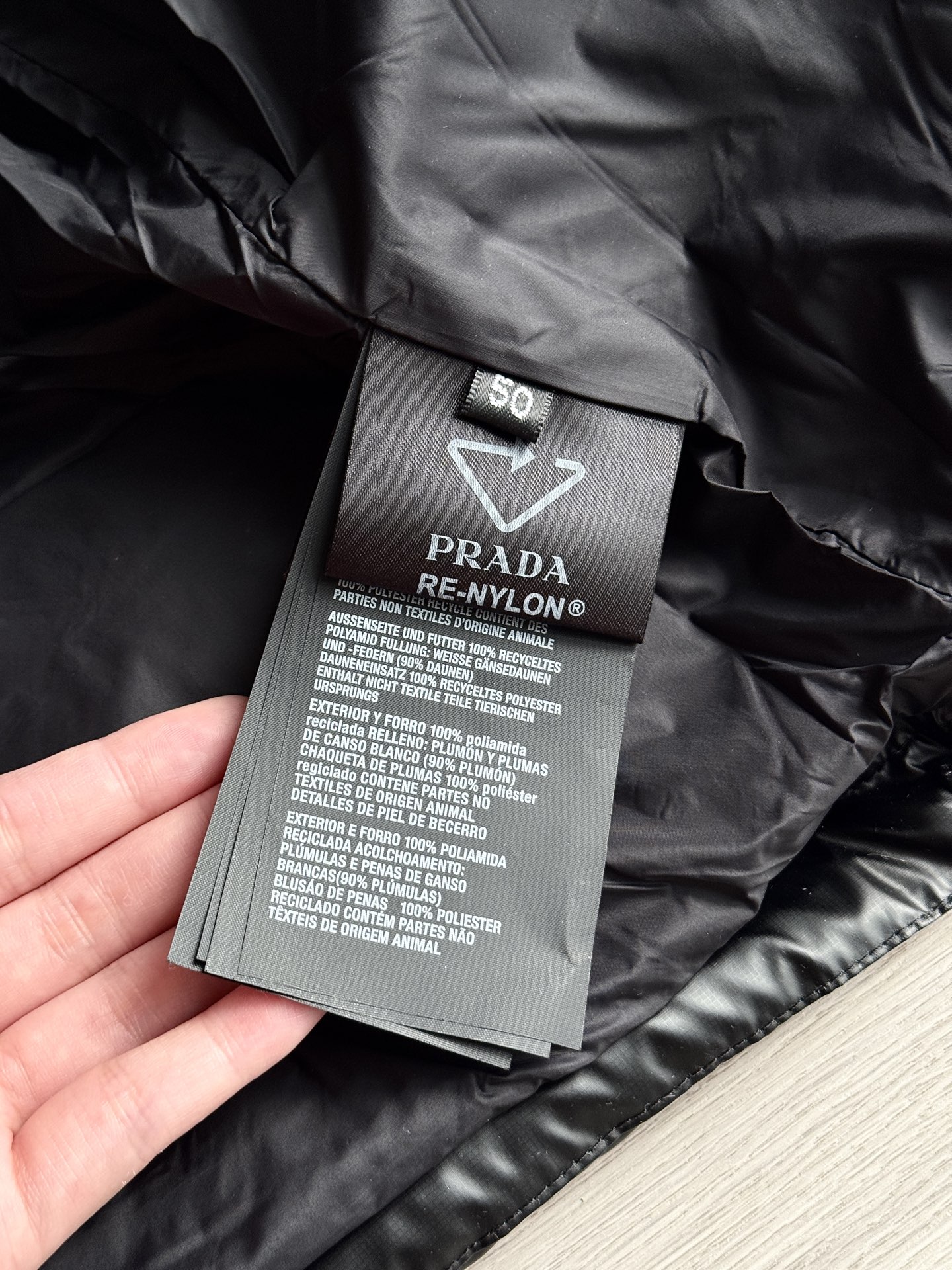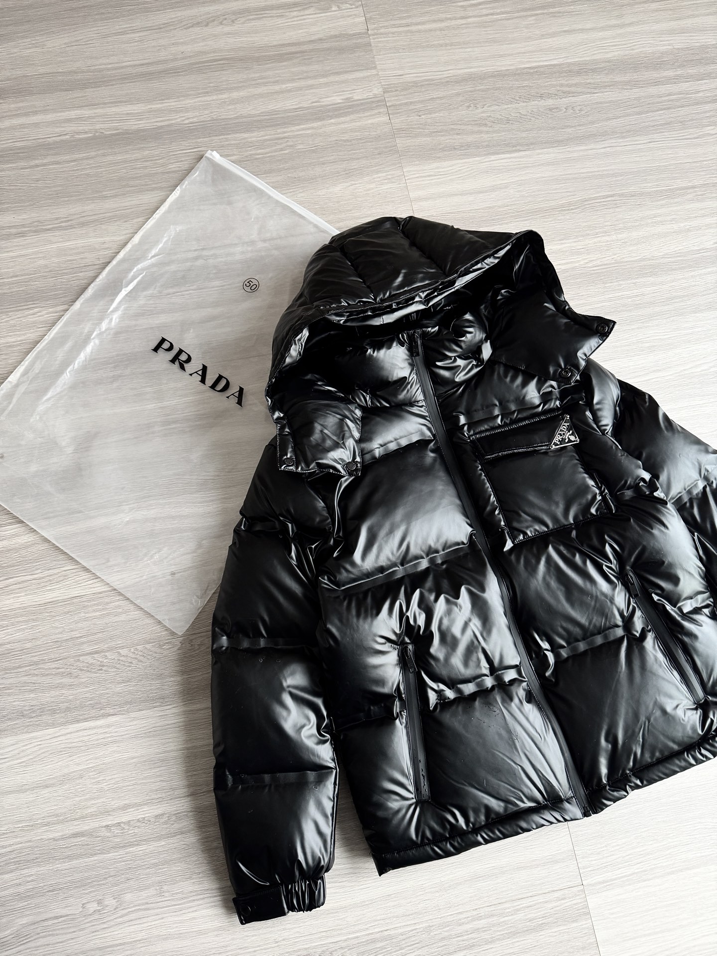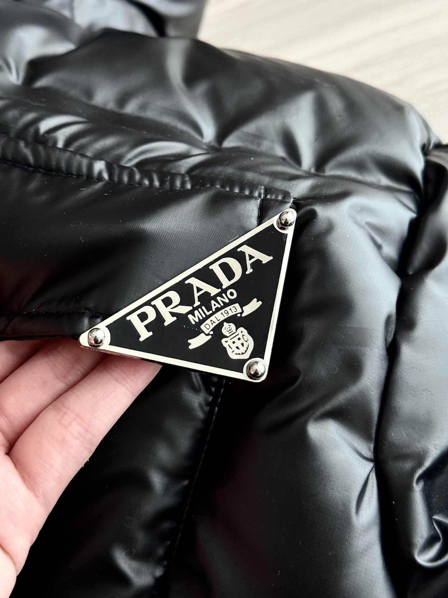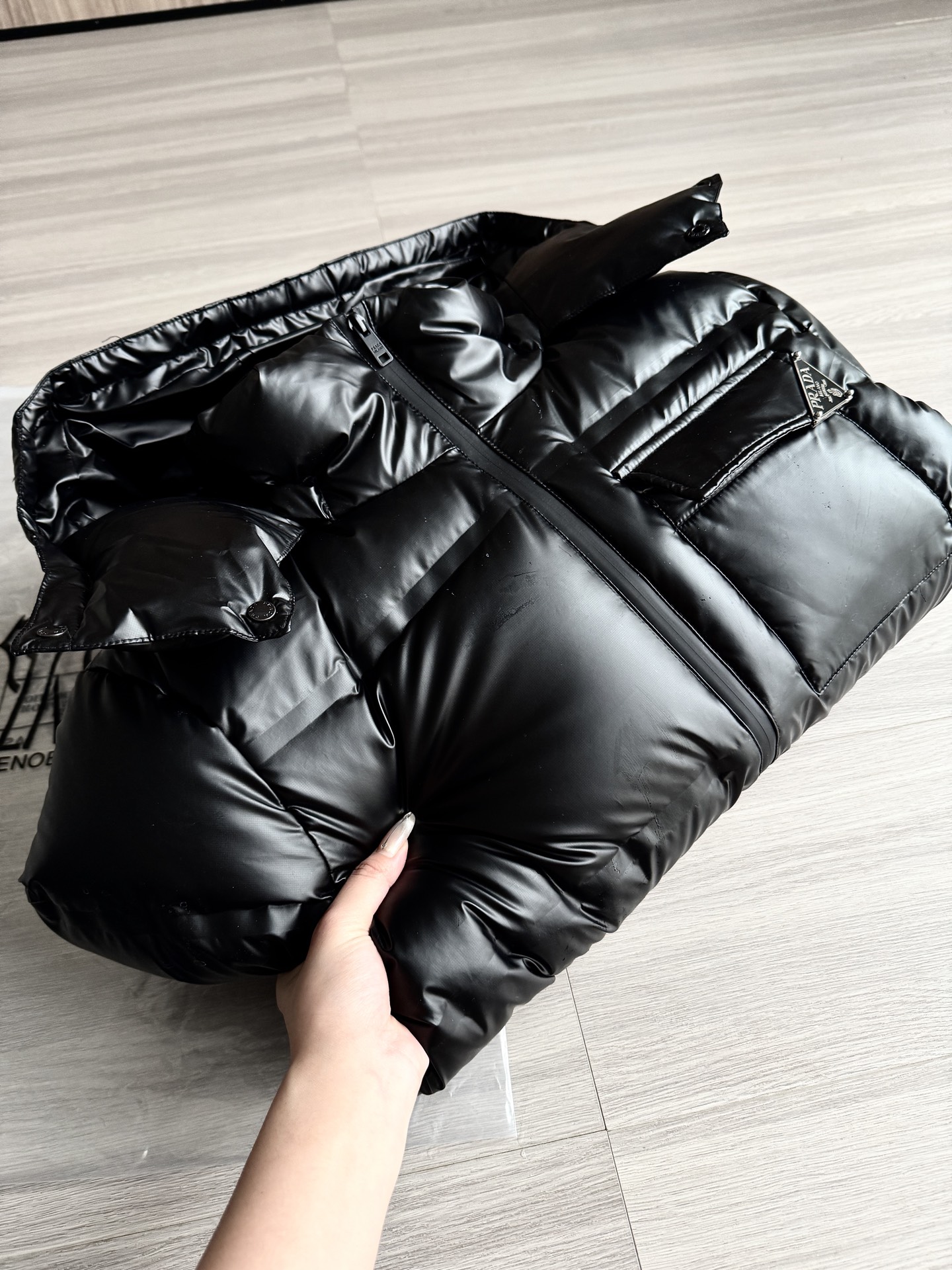 PRADA 普拉达黑科技压胶羽绒外套 极简主义风格90鹅绒羽绒服 面料舒适有型!上身超级有型的帅气,版型是立体裁剪的设计 ,帽檐可拆卸,下摆有抽绳调节,整件保暖度高,回弹力好 上身保暖有型 ,又不会有负重感 ,实穿性非常强 ,不显臃肿 ,可以很好的防止寒风侵袭⚠️男女同款