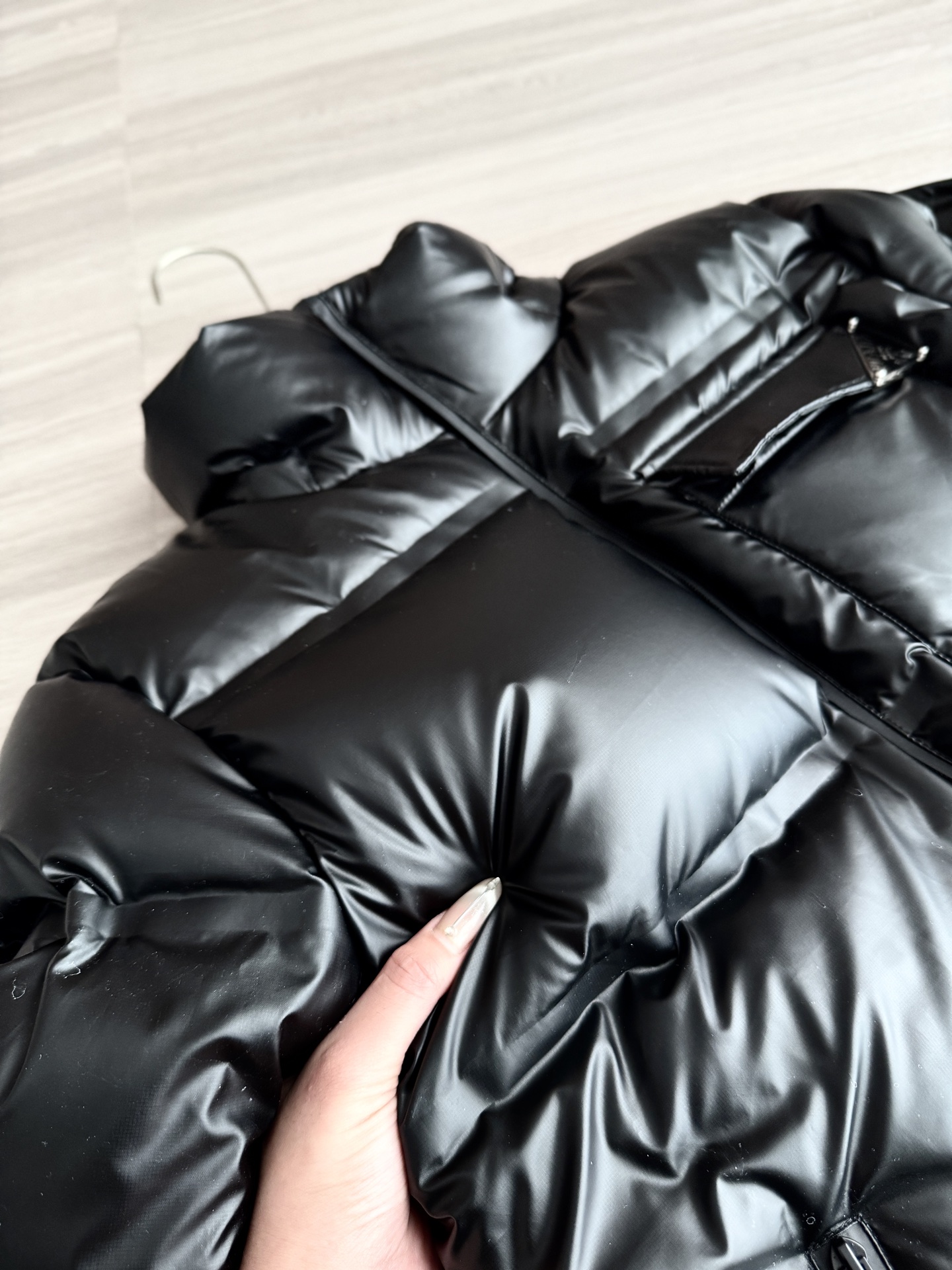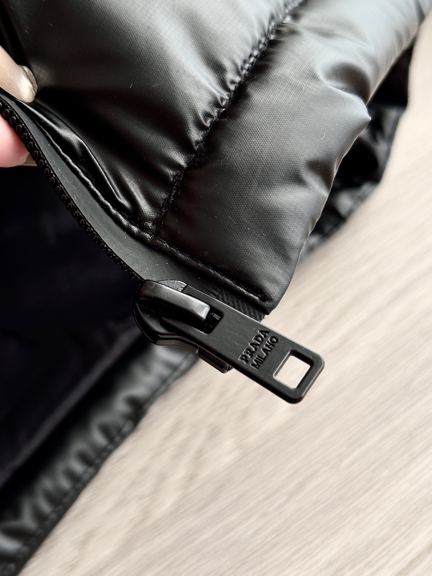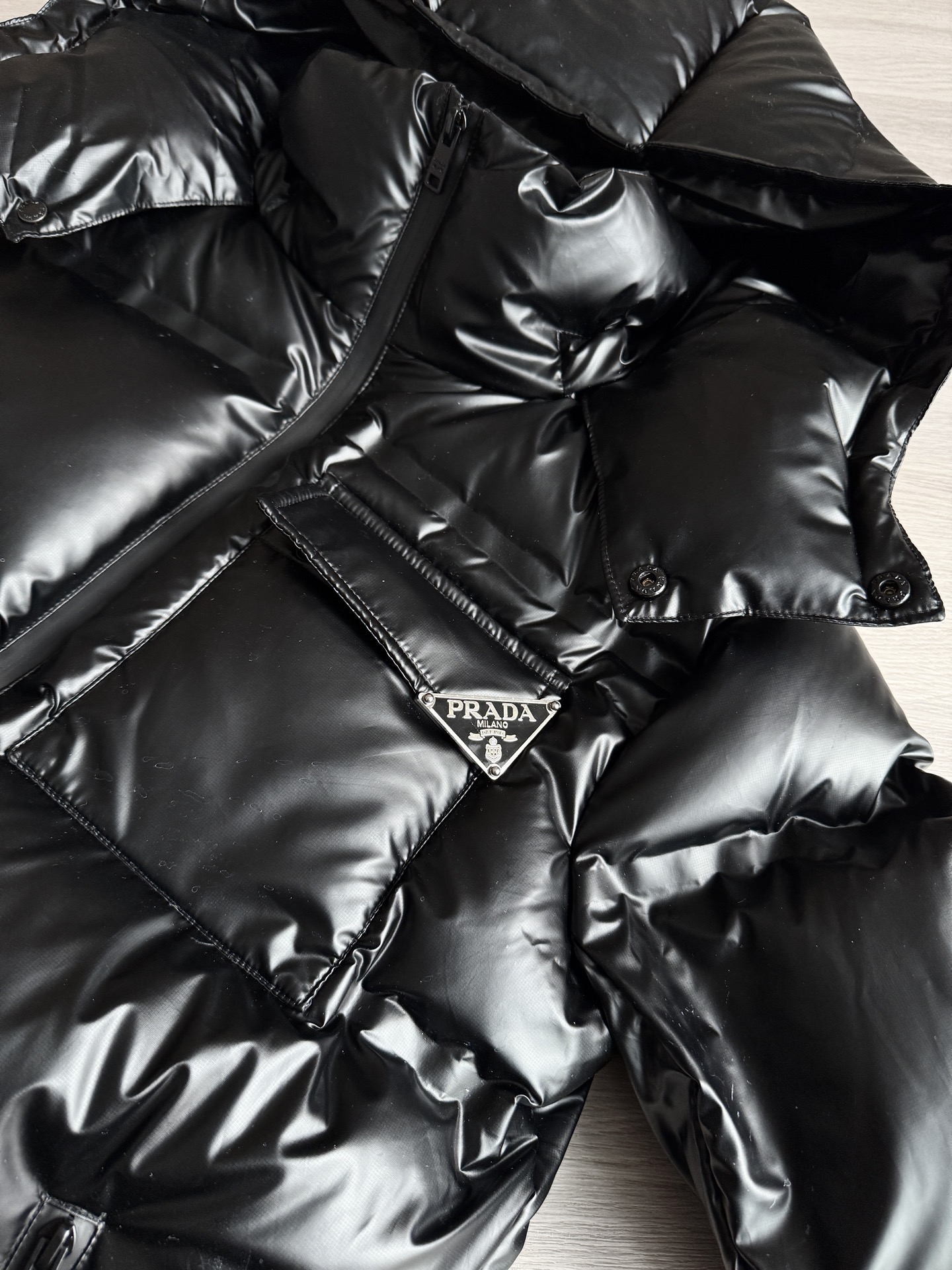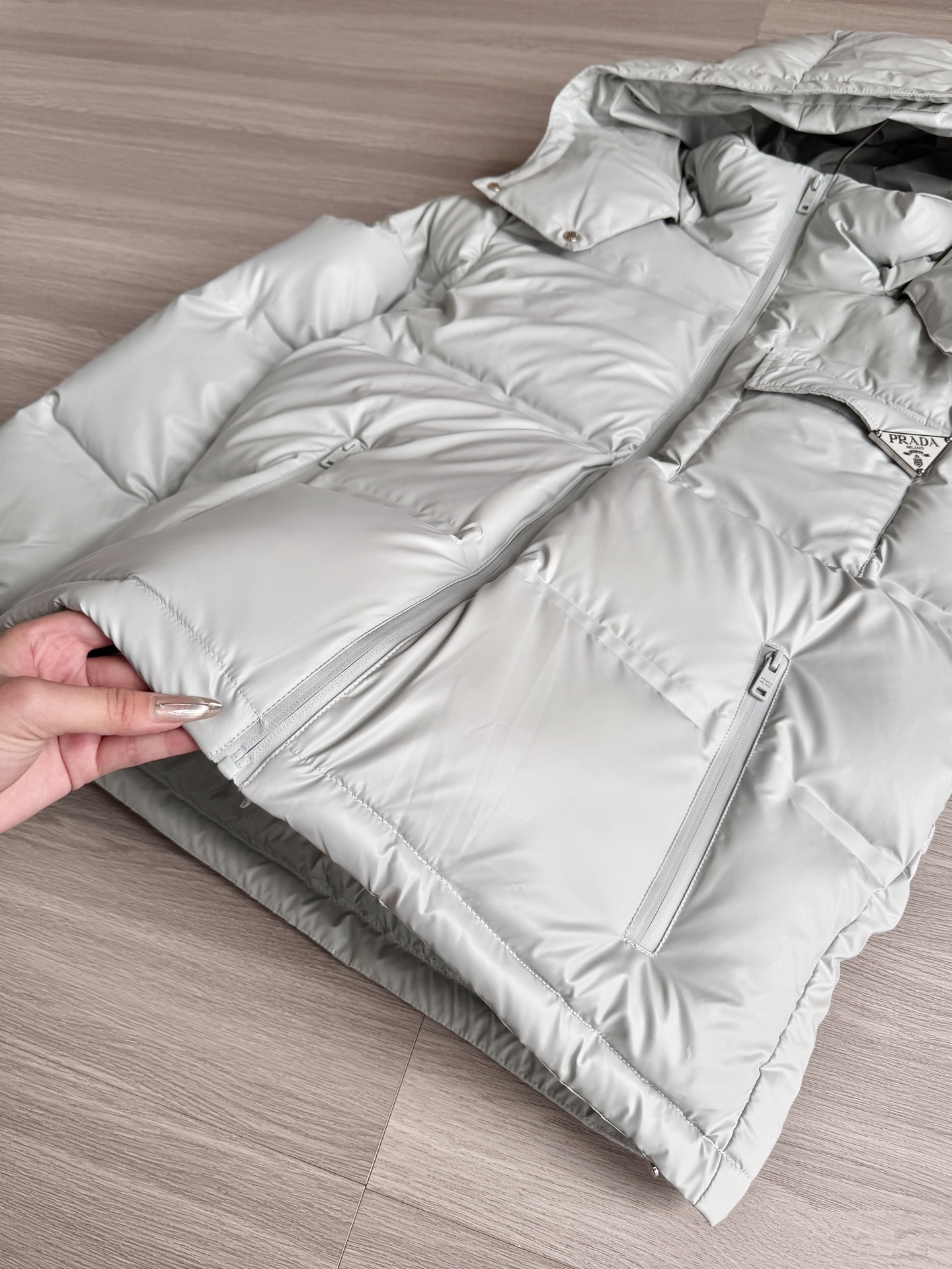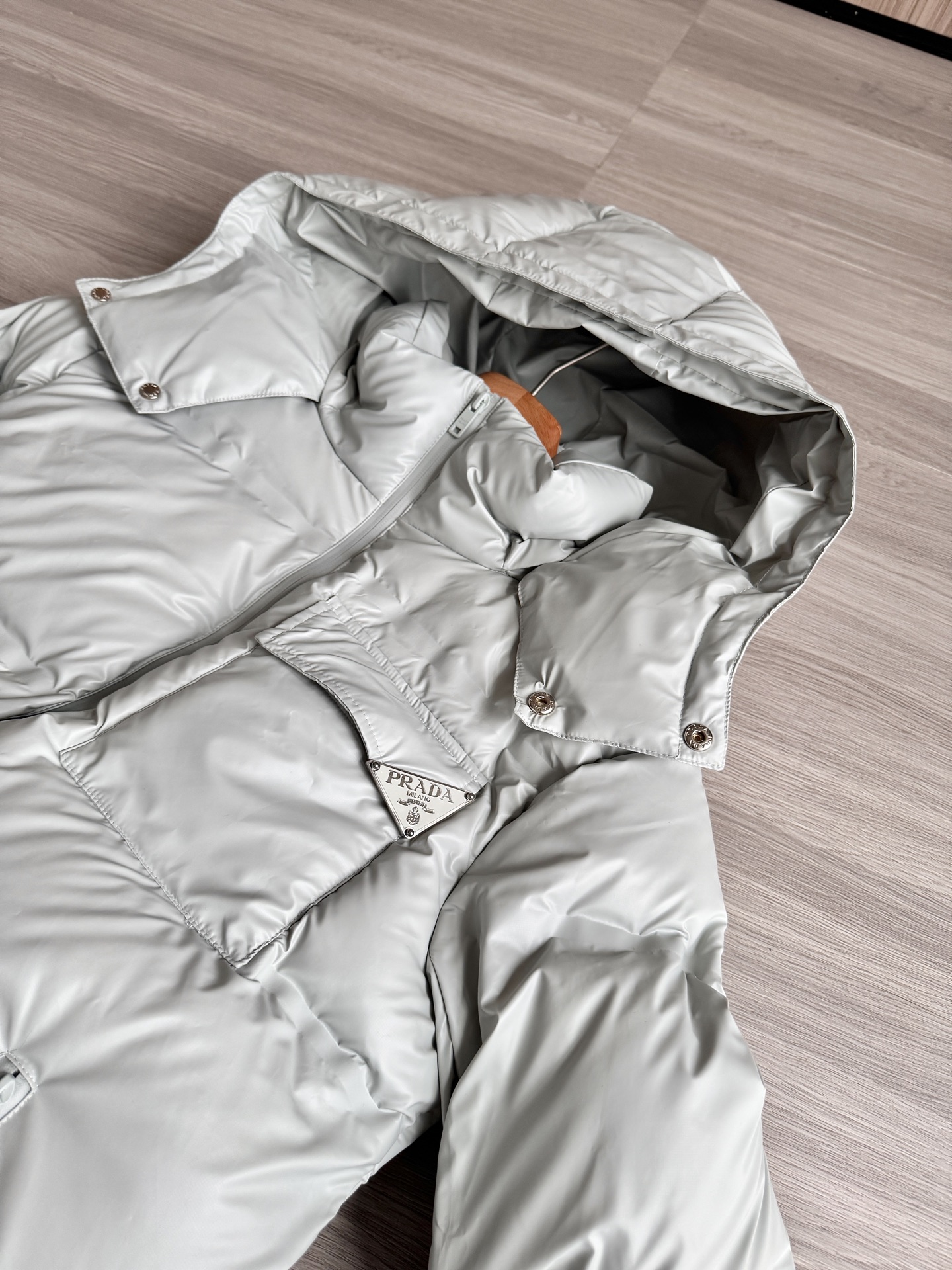 PRADA 普拉达黑科技压胶羽绒外套 极简主义风格90鹅绒羽绒服 面料舒适有型!上身超级有型的帅气,版型是立体裁剪的设计 ,帽檐可拆卸,下摆有抽绳调节,整件保暖度高,回弹力好 上身保暖有型 ,又不会有负重感 ,实穿性非常强 ,不显臃肿 ,可以很好的防止寒风侵袭⚠️男女同款