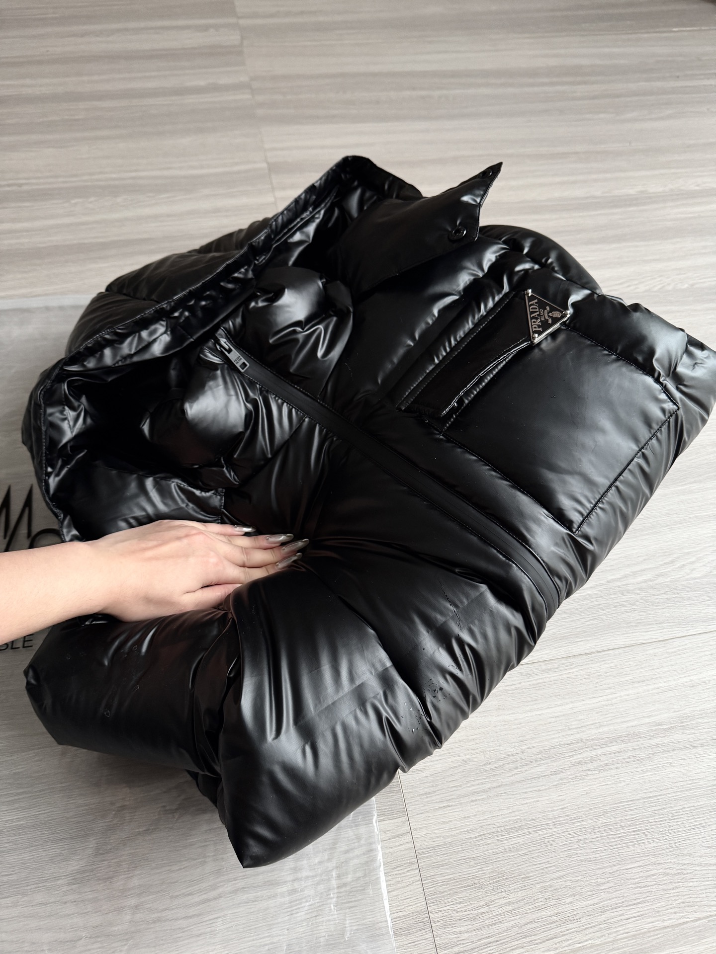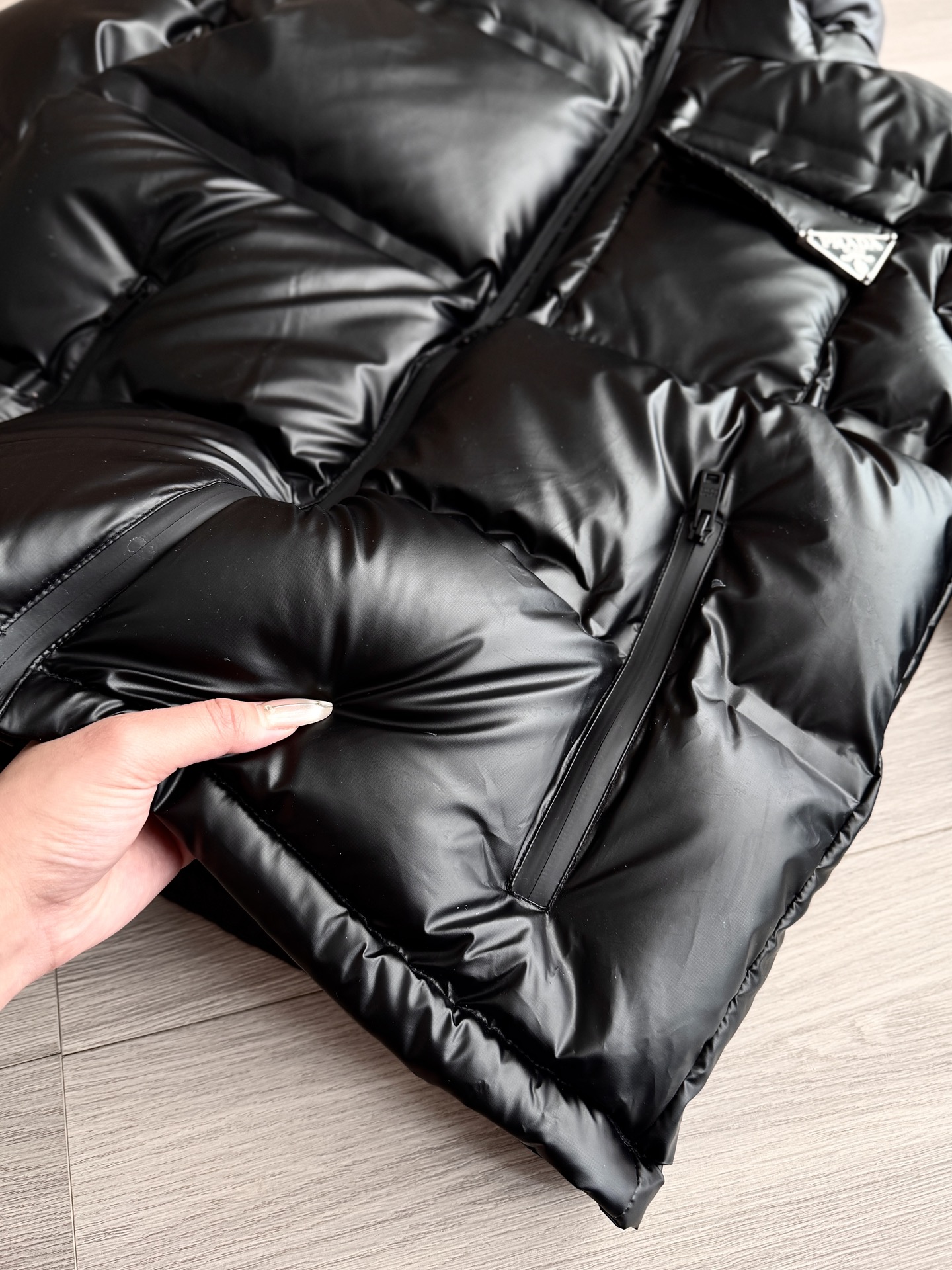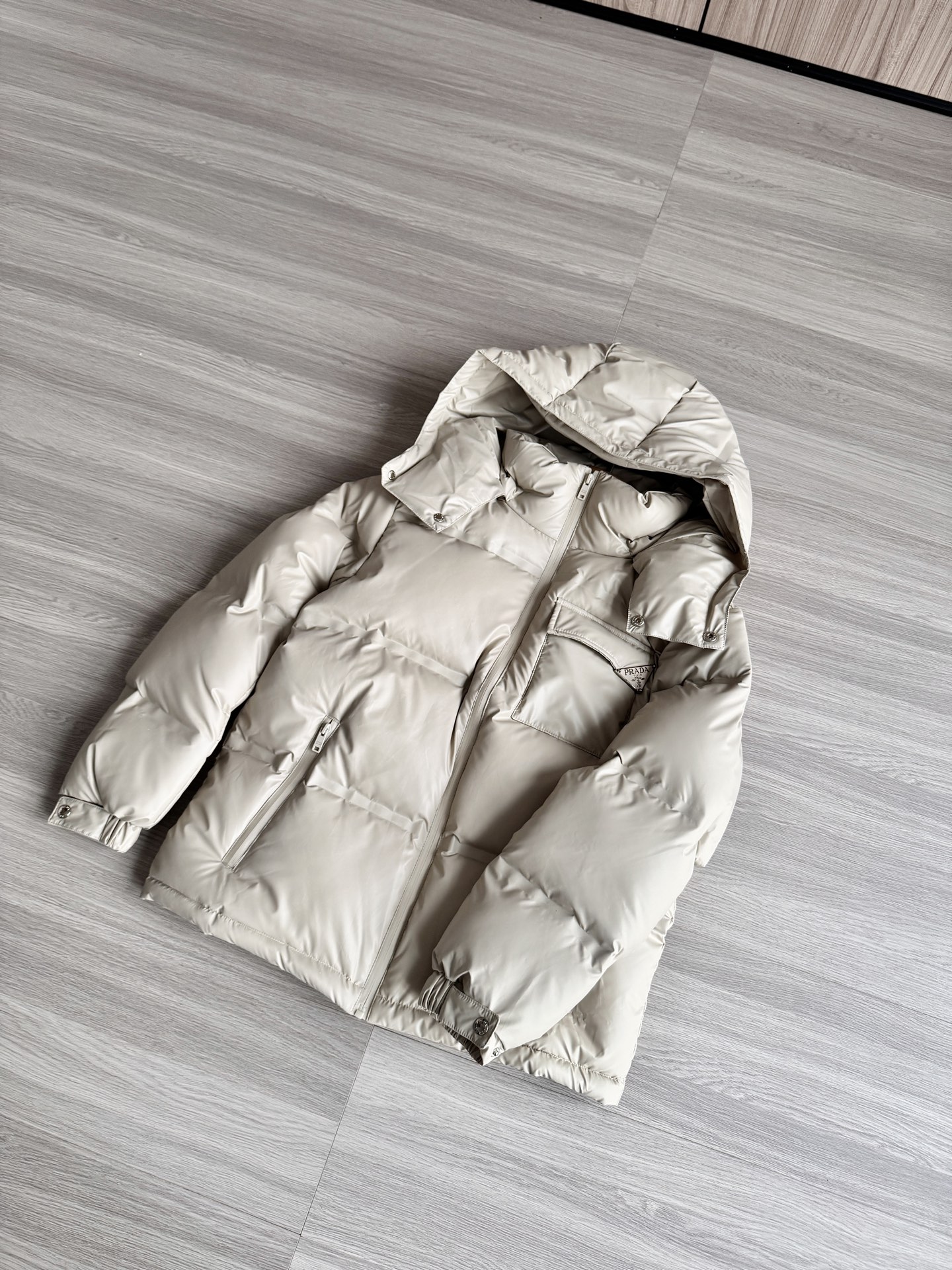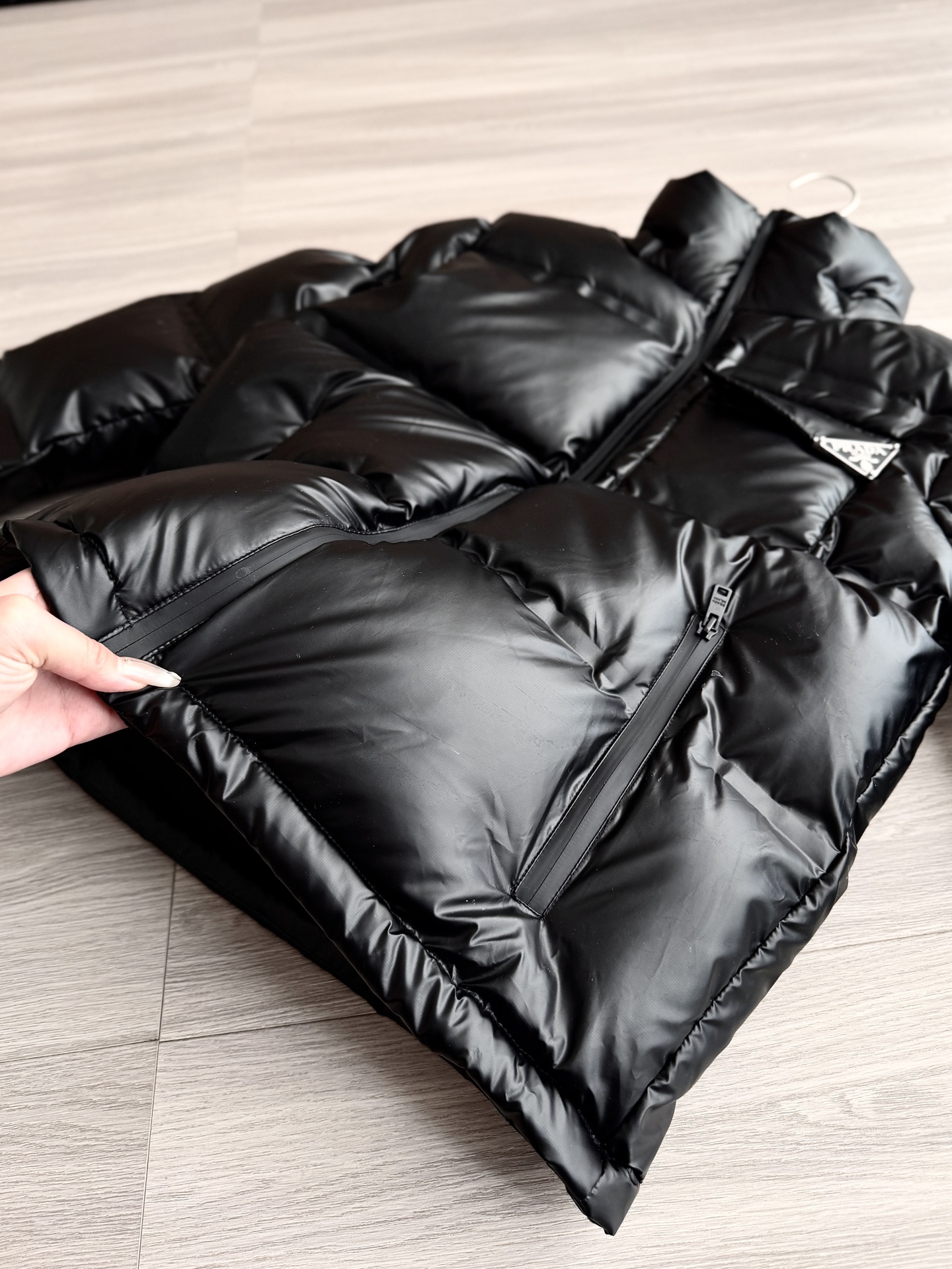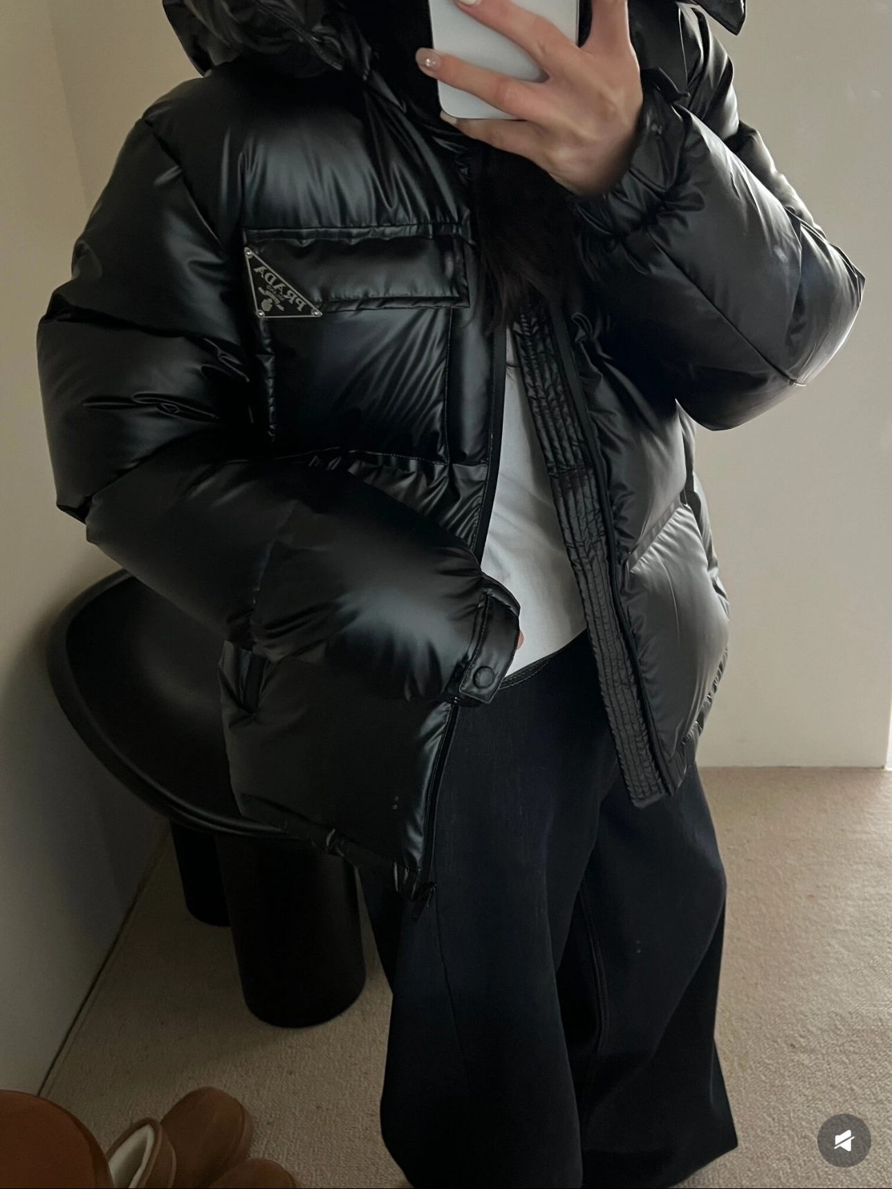 PRADA 普拉达黑科技压胶羽绒外套 极简主义风格90鹅绒羽绒服 面料舒适有型!上身超级有型的帅气,版型是立体裁剪的设计 ,帽檐可拆卸,下摆有抽绳调节,整件保暖度高,回弹力好 上身保暖有型 ,又不会有负重感 ,实穿性非常强 ,不显臃肿 ,可以很好的防止寒风侵袭⚠️男女同款