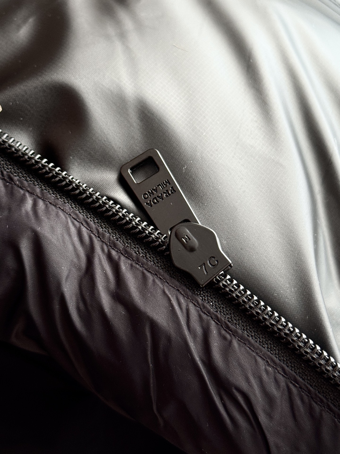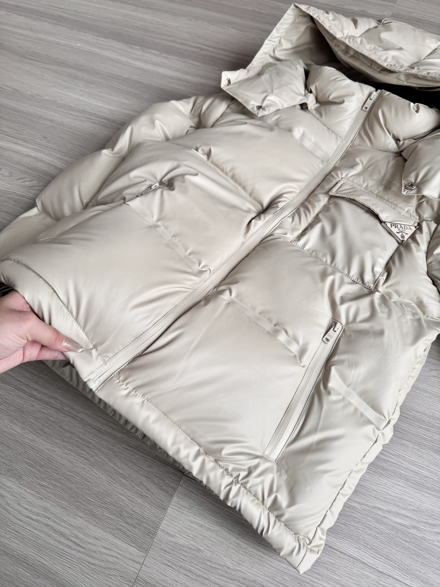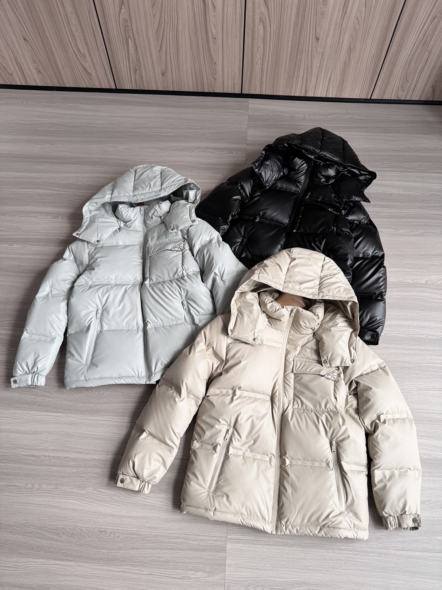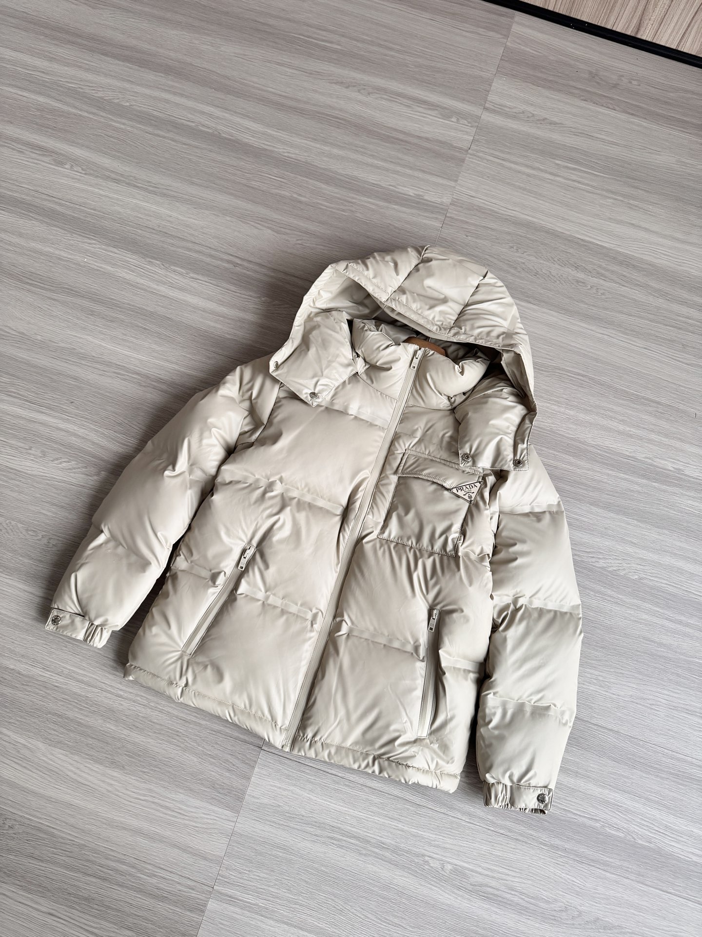 PRADA 普拉达黑科技压胶羽绒外套 极简主义风格90鹅绒羽绒服 面料舒适有型!上身超级有型的帅气,版型是立体裁剪的设计 ,帽檐可拆卸,下摆有抽绳调节,整件保暖度高,回弹力好 上身保暖有型 ,又不会有负重感 ,实穿性非常强 ,不显臃肿 ,可以很好的防止寒风侵袭⚠️男女同款