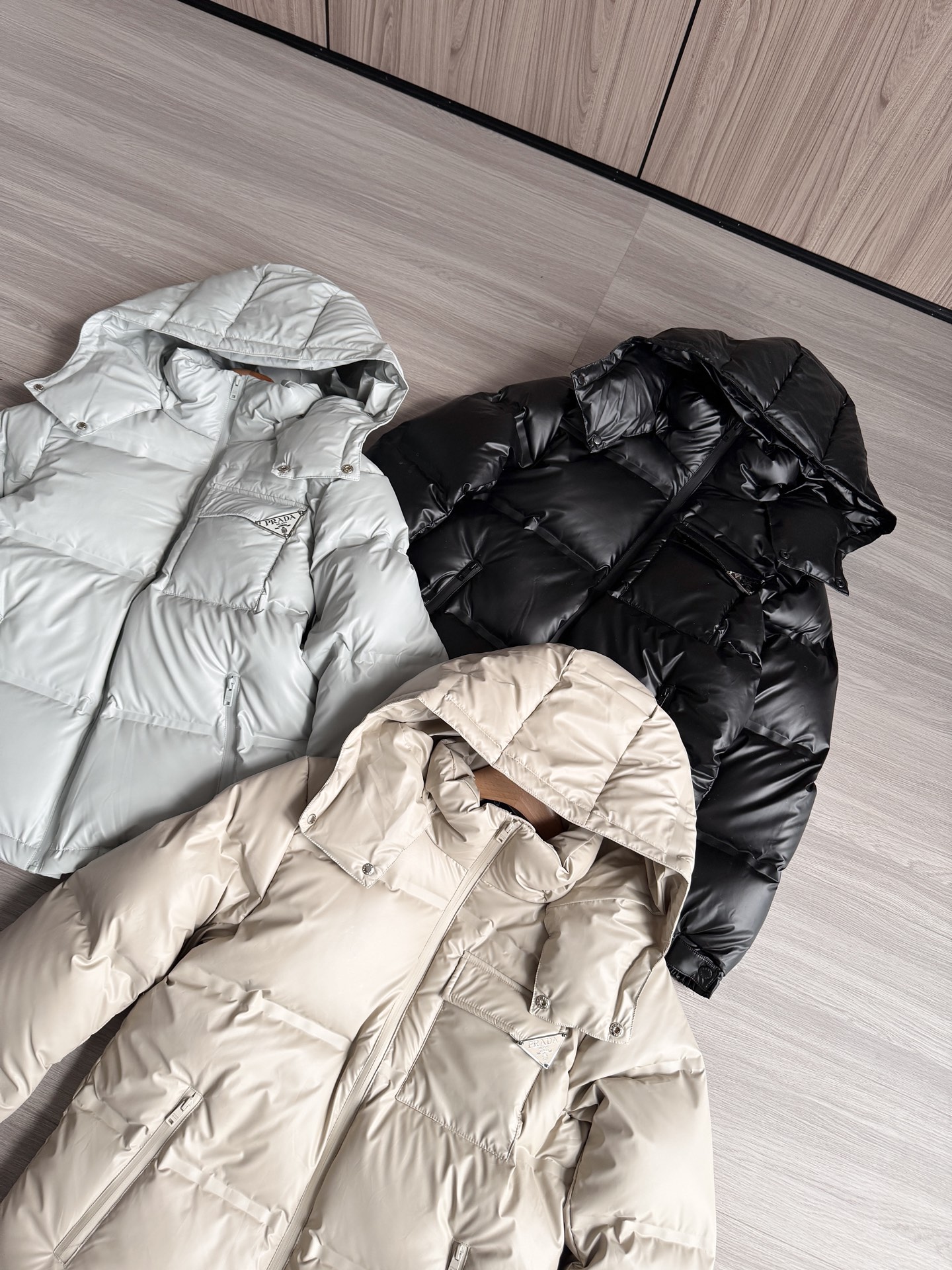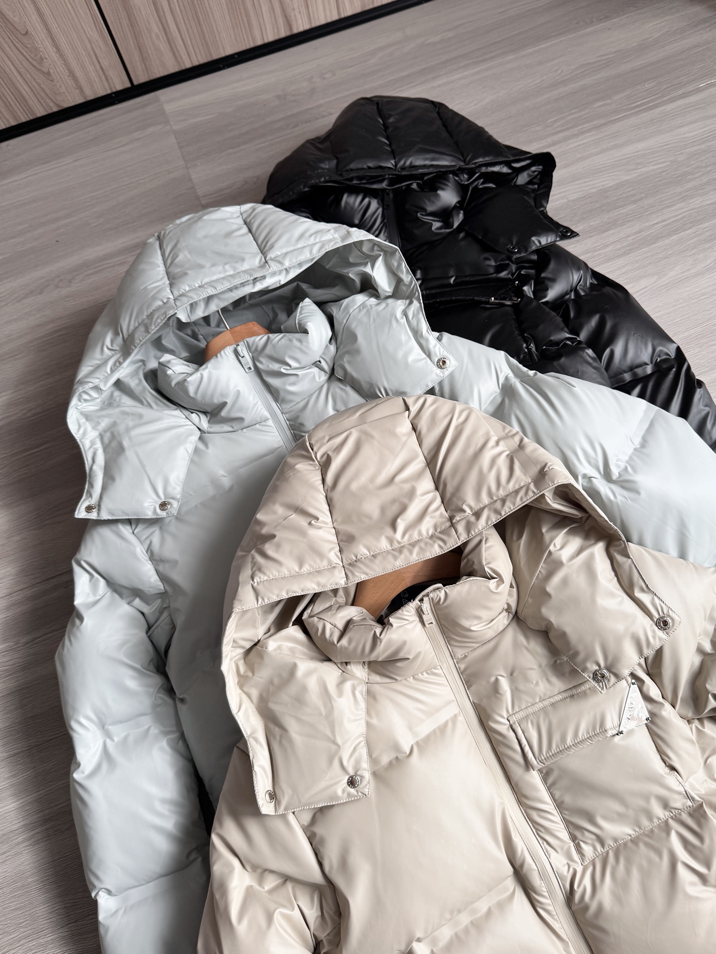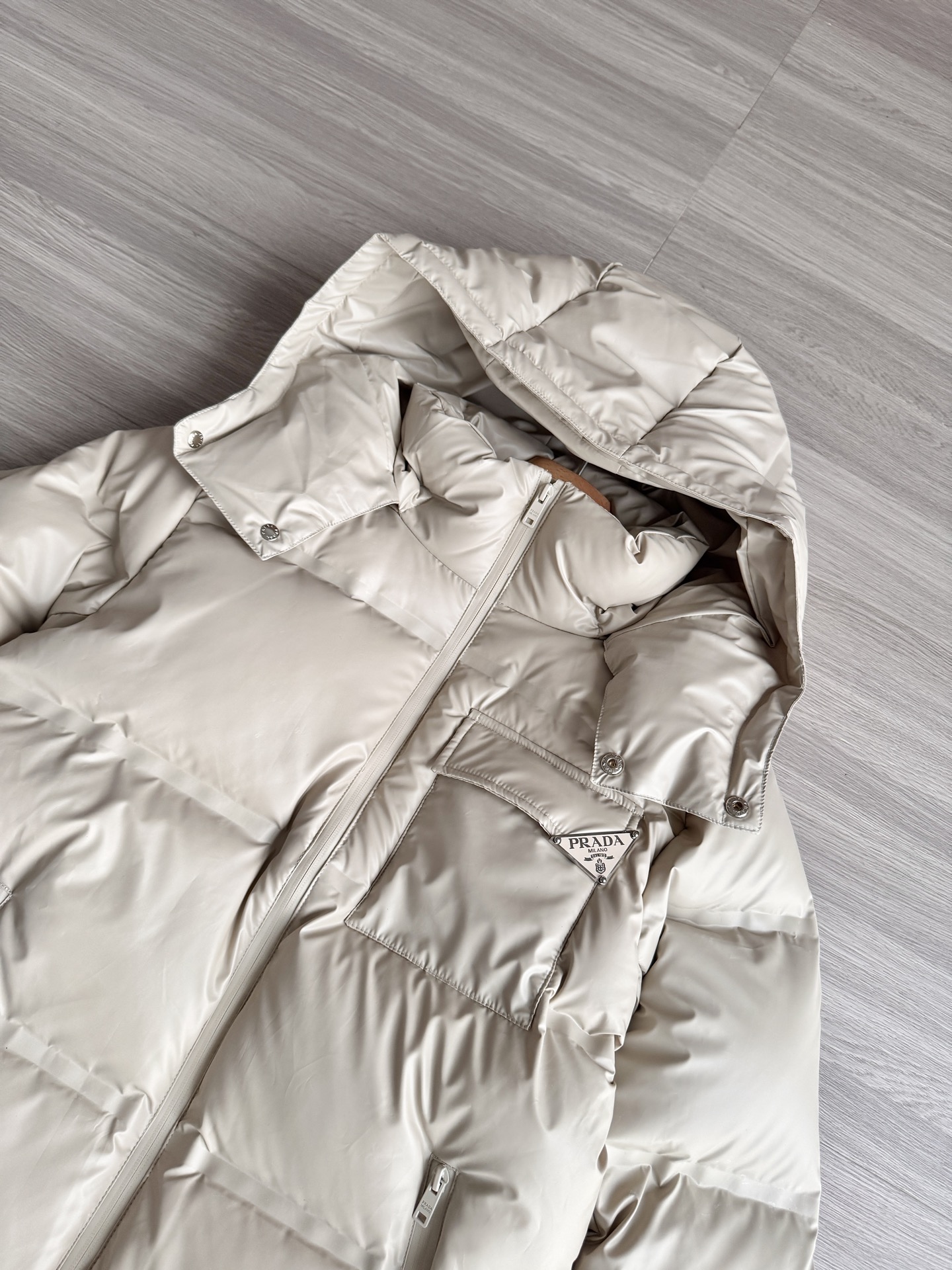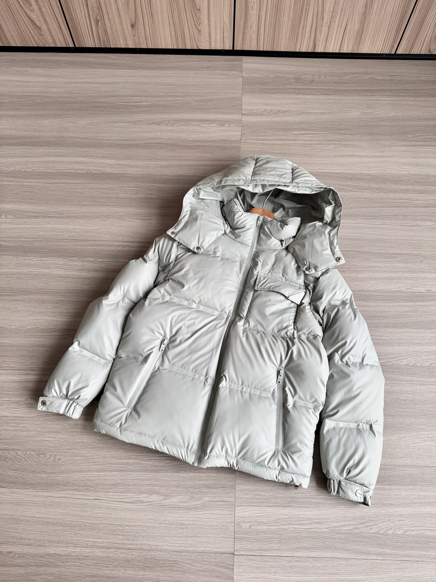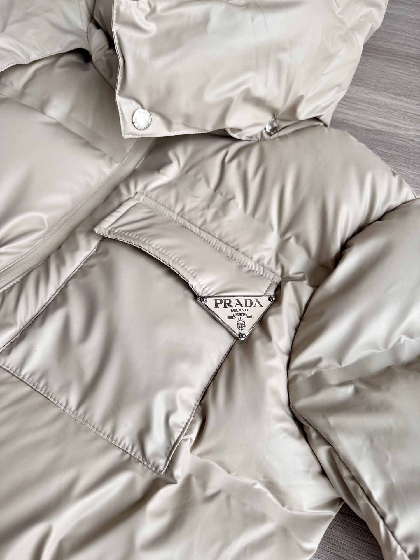 PRADA 普拉达黑科技压胶羽绒外套 极简主义风格90鹅绒羽绒服 面料舒适有型!上身超级有型的帅气,版型是立体裁剪的设计 ,帽檐可拆卸,下摆有抽绳调节,整件保暖度高,回弹力好 上身保暖有型 ,又不会有负重感 ,实穿性非常强 ,不显臃肿 ,可以很好的防止寒风侵袭⚠️男女同款
