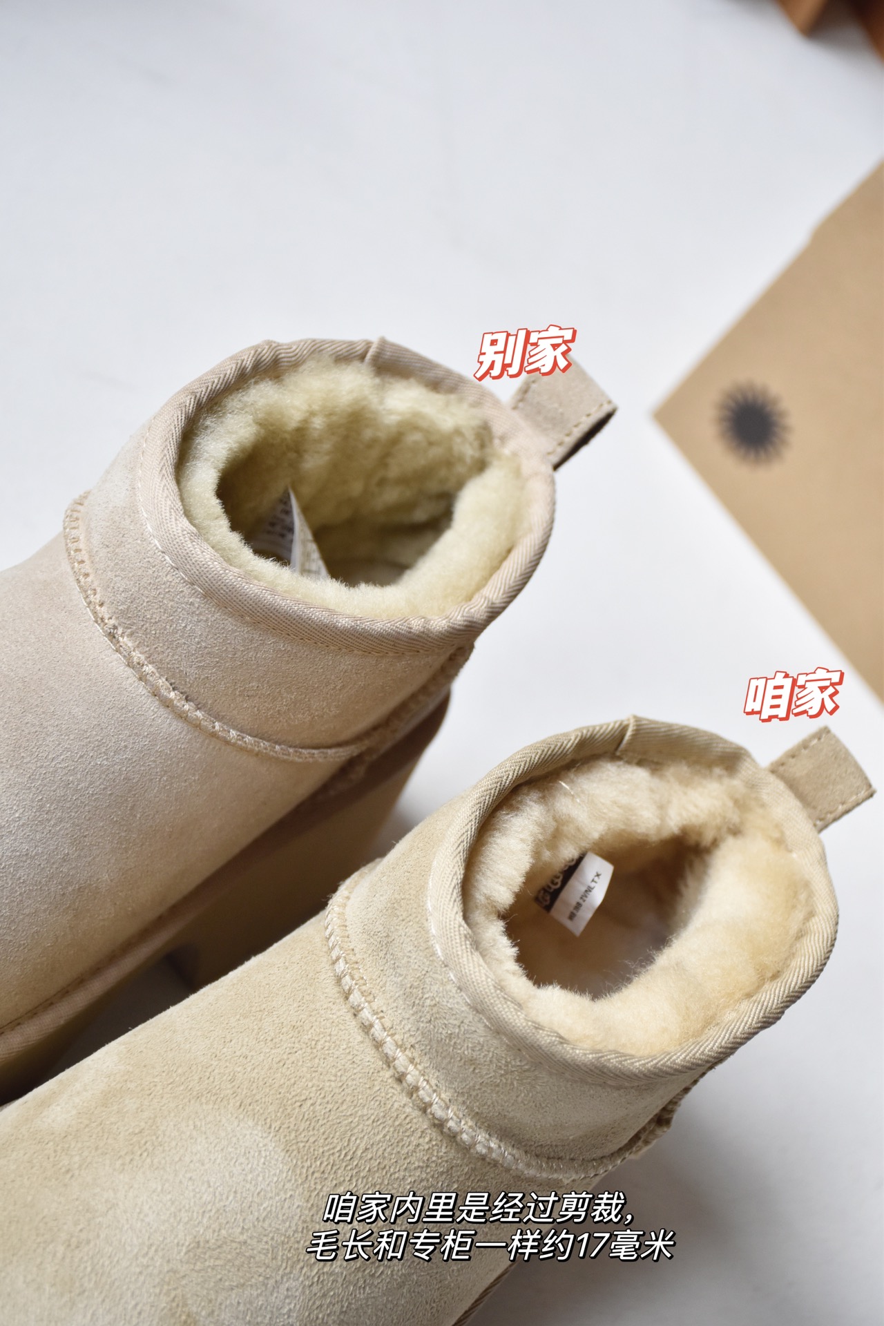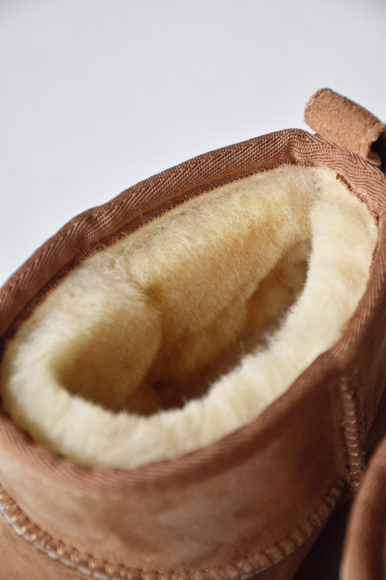 从靴筒到靴头全部羊皮毛一体!UGGPURE羊毛式植入内底,厚实饱满,羊皮的好处是皮毛一体,它上脚非常非常暖和的同时又不会像化纤那样把双脚鞋捂出汗里面湿漉漉的