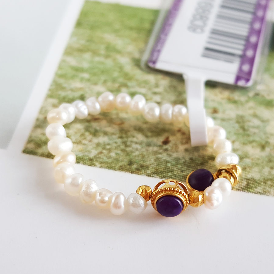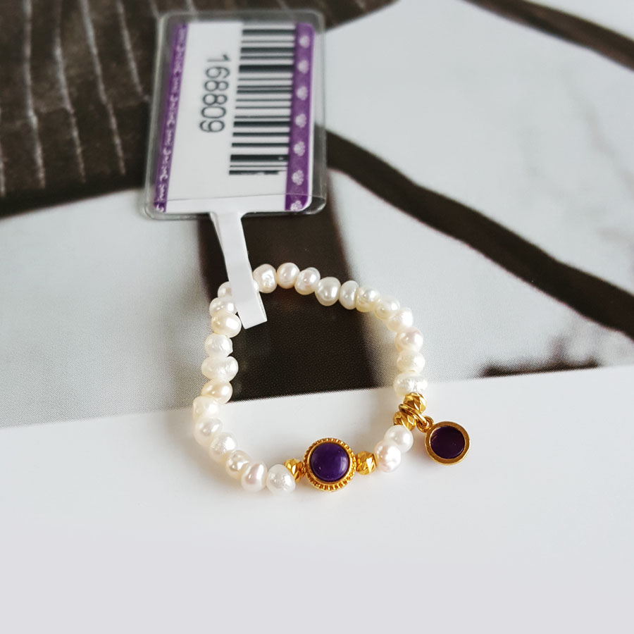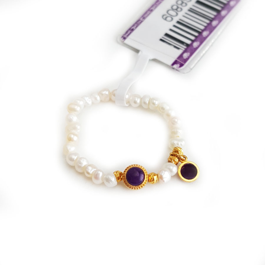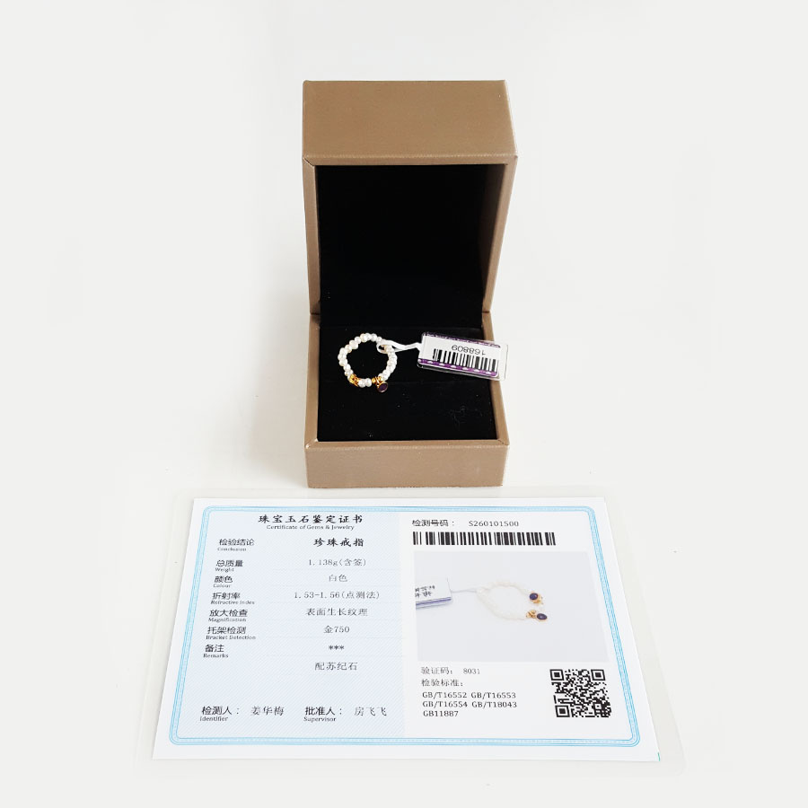 名称 | AU750黄金镶天然帝王紫舒俱来配约2.6MM小米珠珍珠指环戒指 |