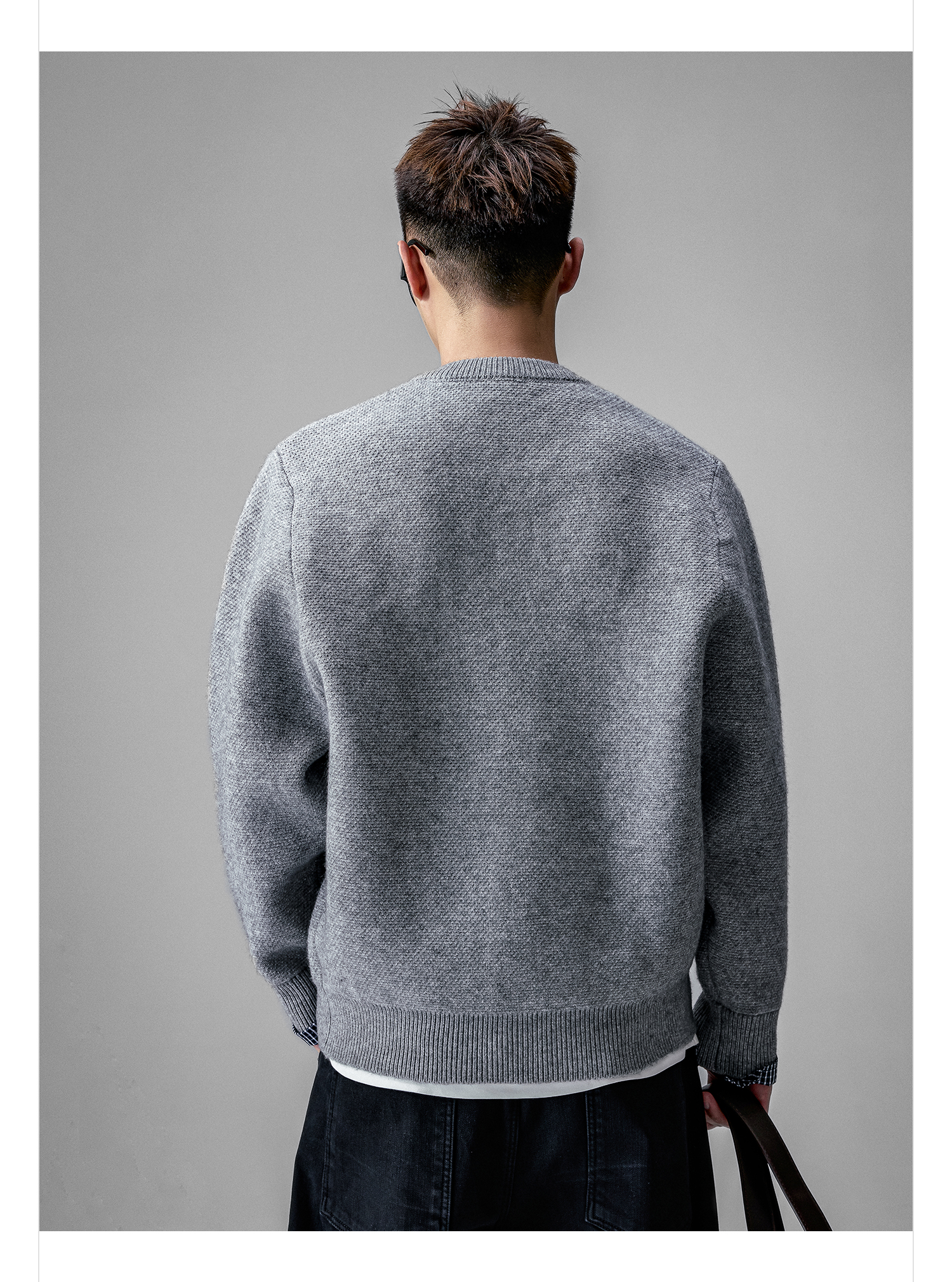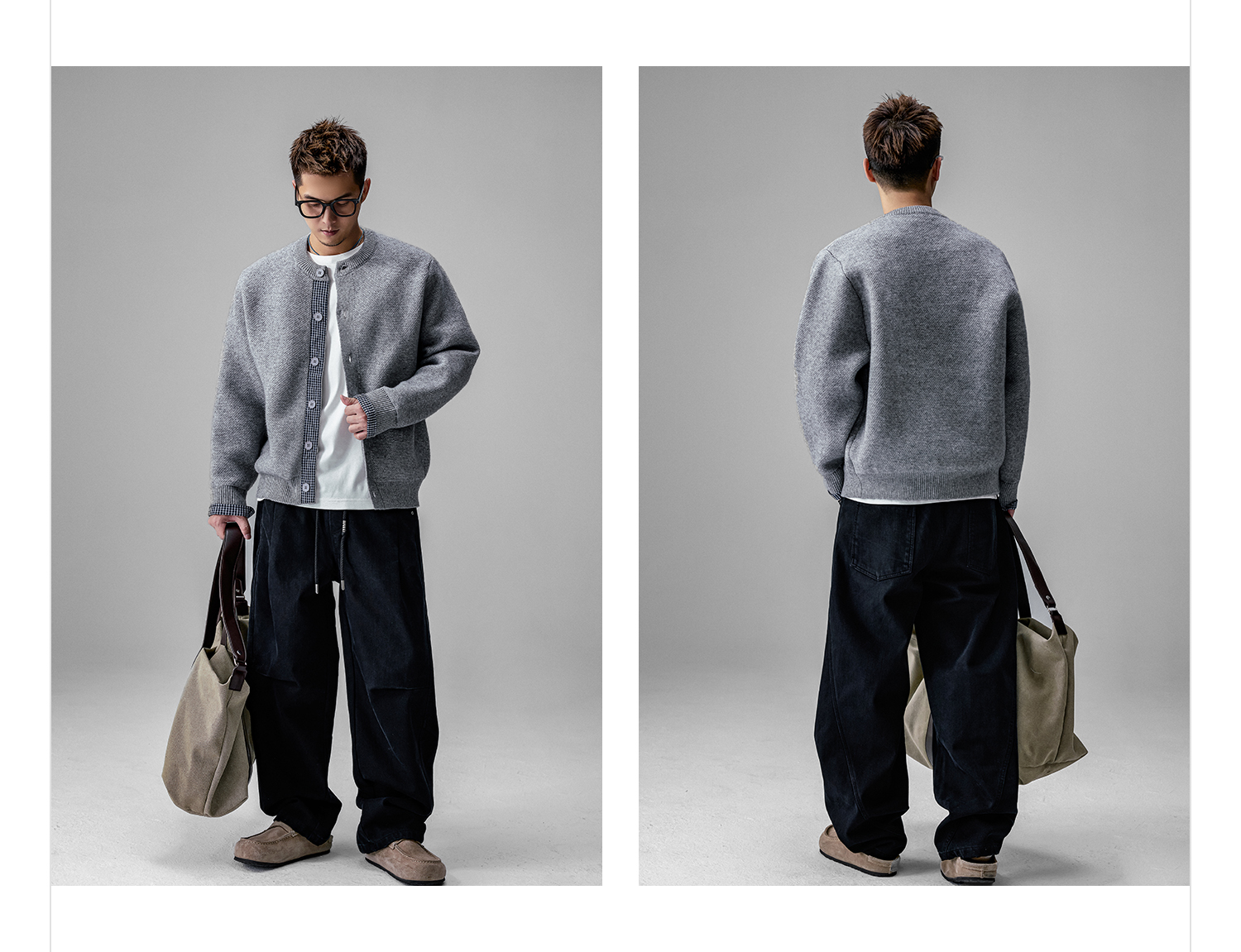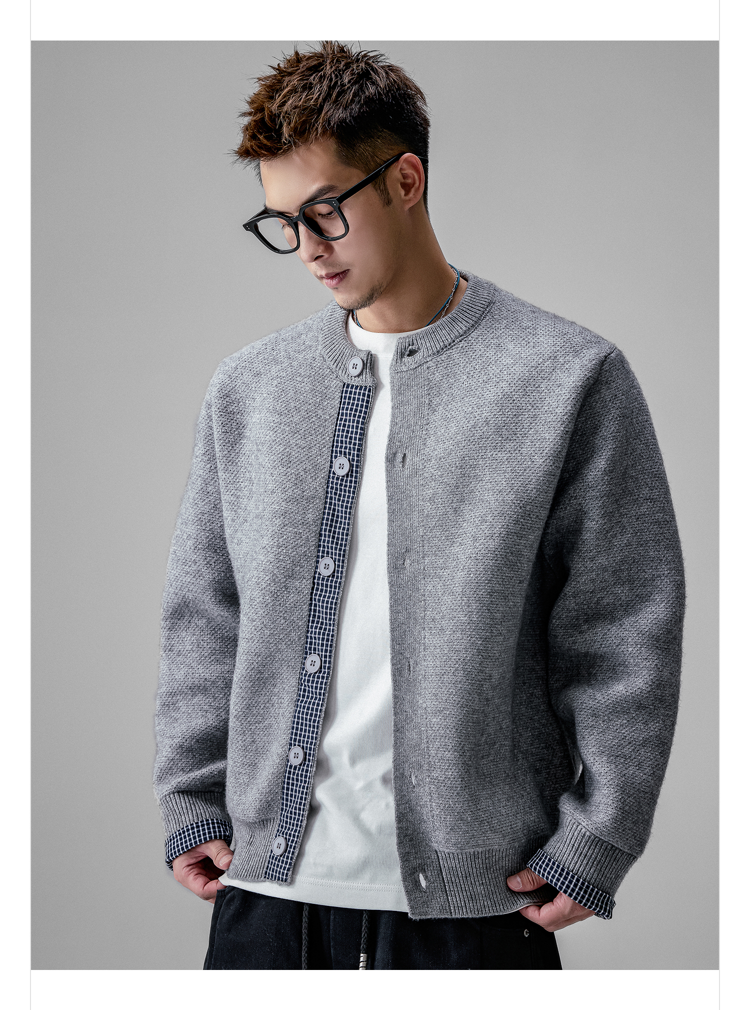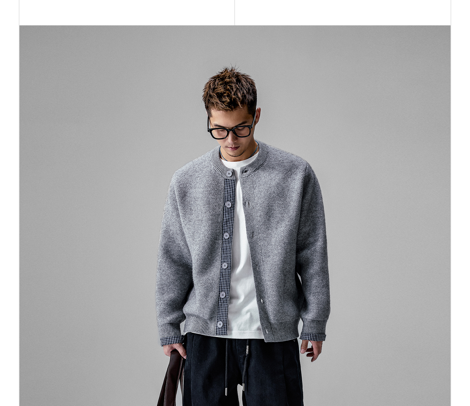 徐太浪【拼接格子 扣子开襟】灰色开衫毛衣男秋冬休闲针织衫外套