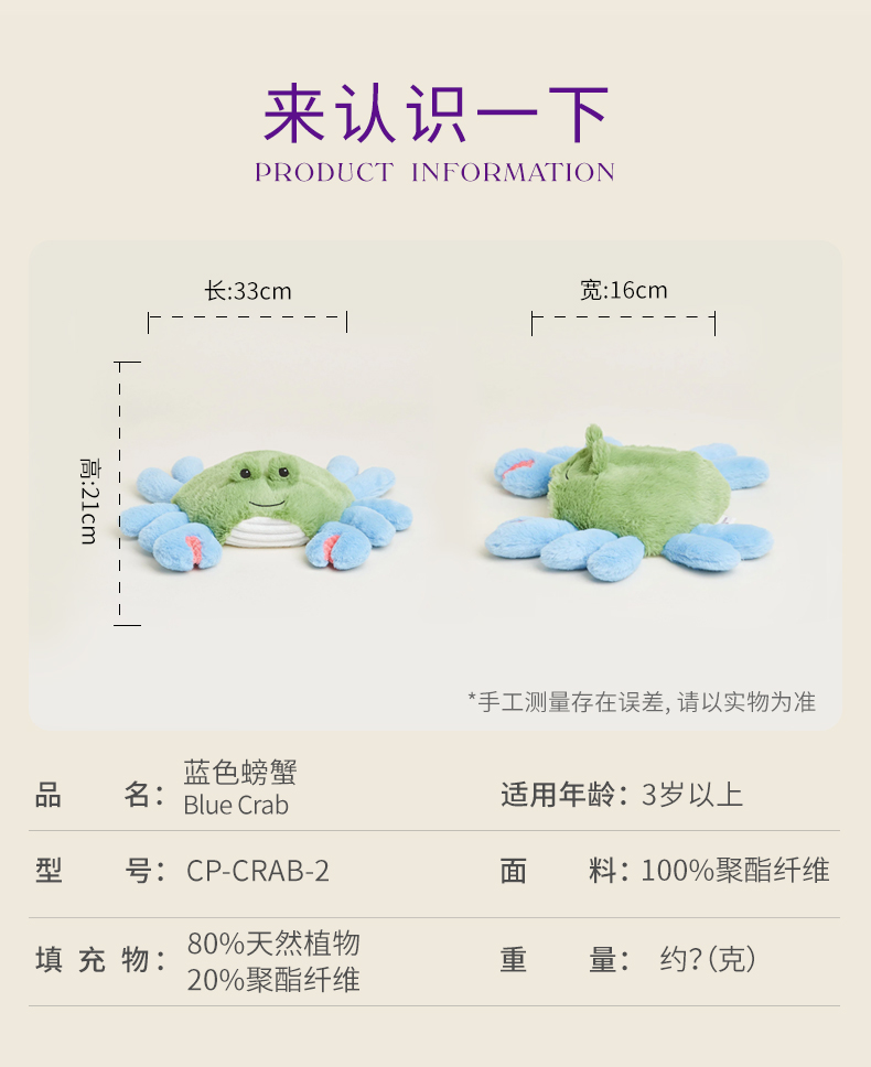 英国warmies 蓝色螃蟹安抚玩偶公仔送礼毛绒可加热抱枕