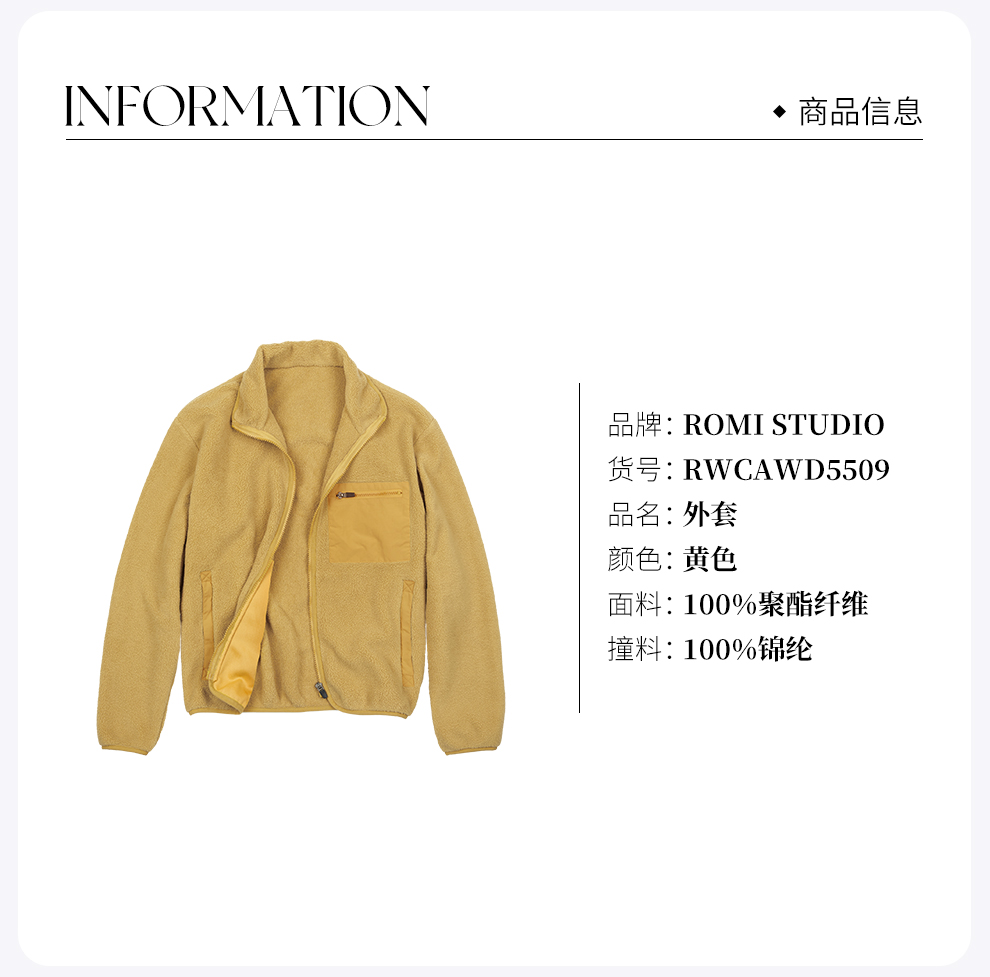 ROMI STUDIO“云感摇粒绒”梭织细腻绒毛锁温立领外套 RWCAWD5509