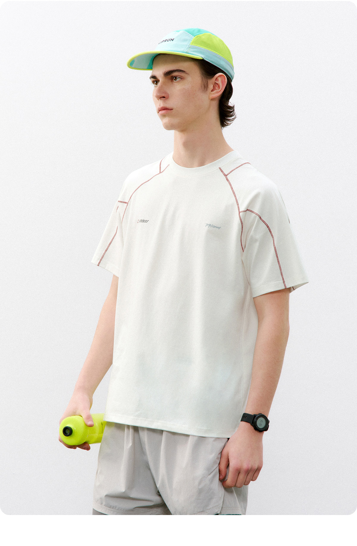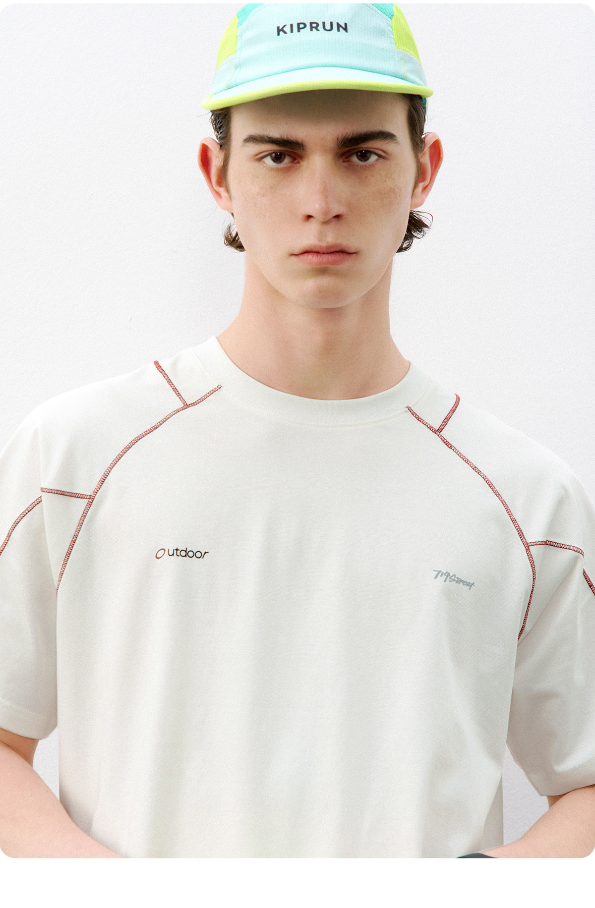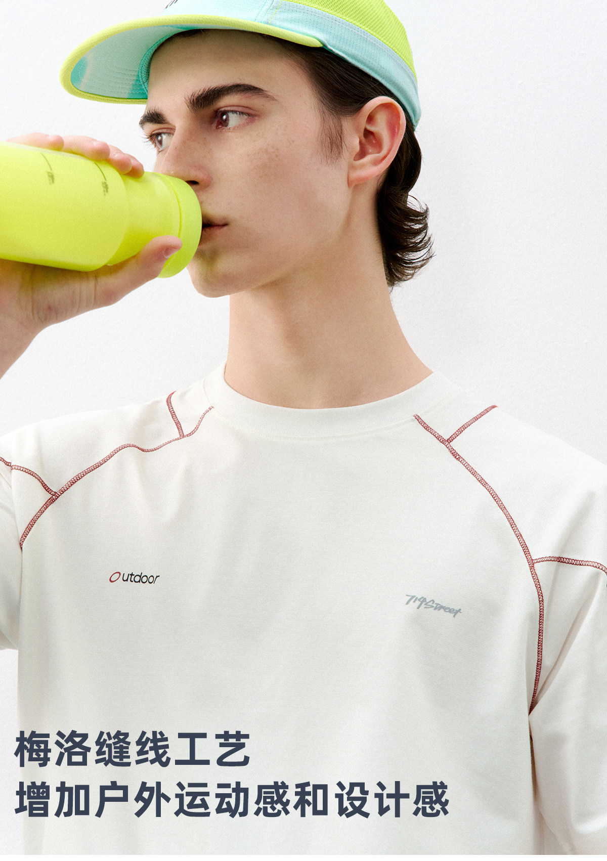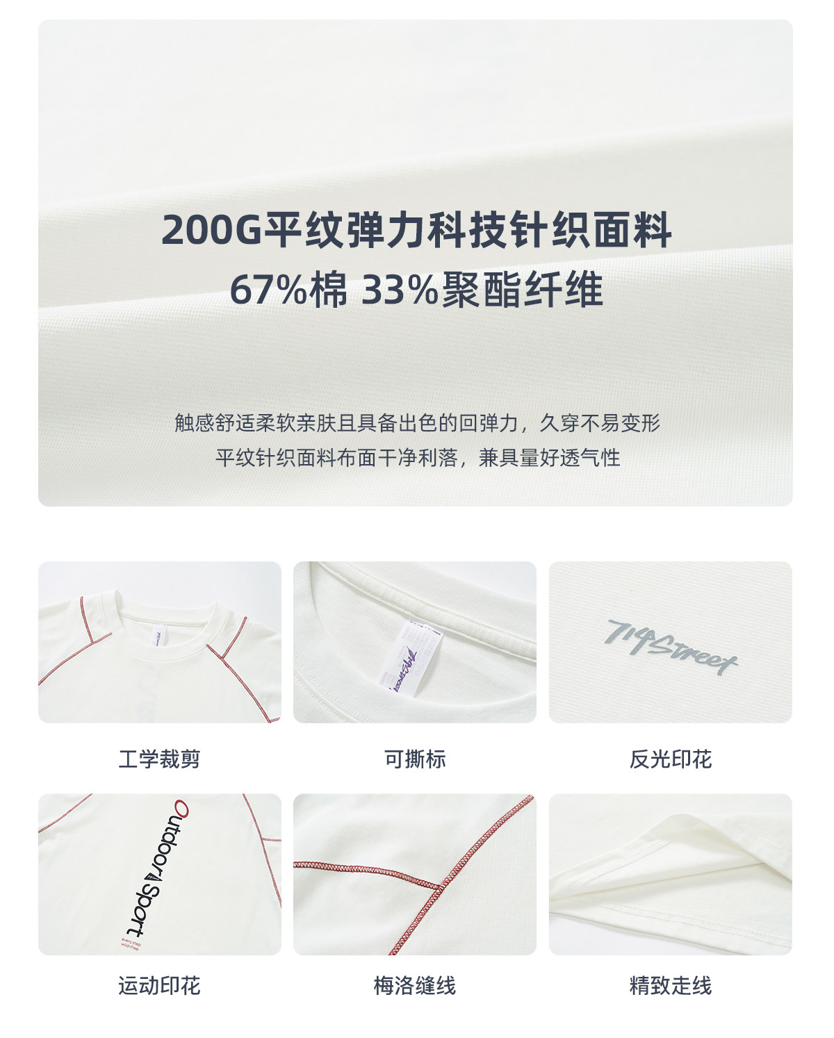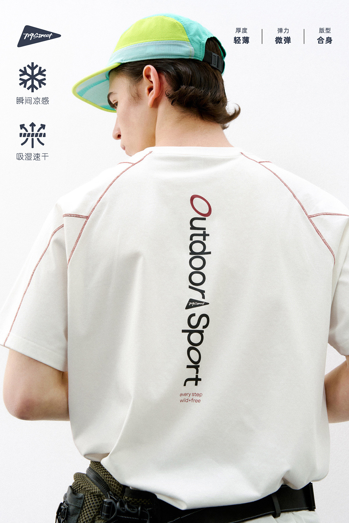 714street夏季凉感速干衣撞色明线休闲运动短袖男白色情侣印花T恤