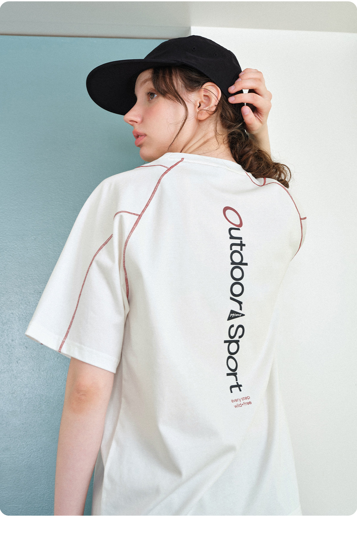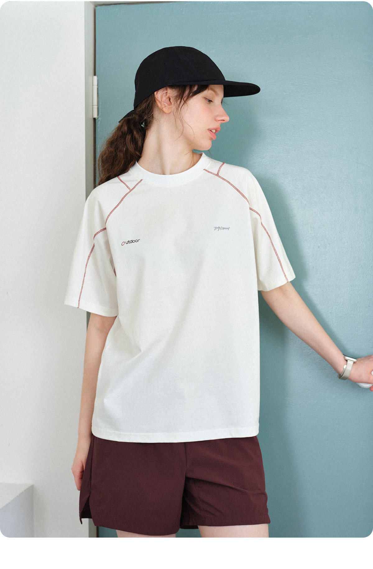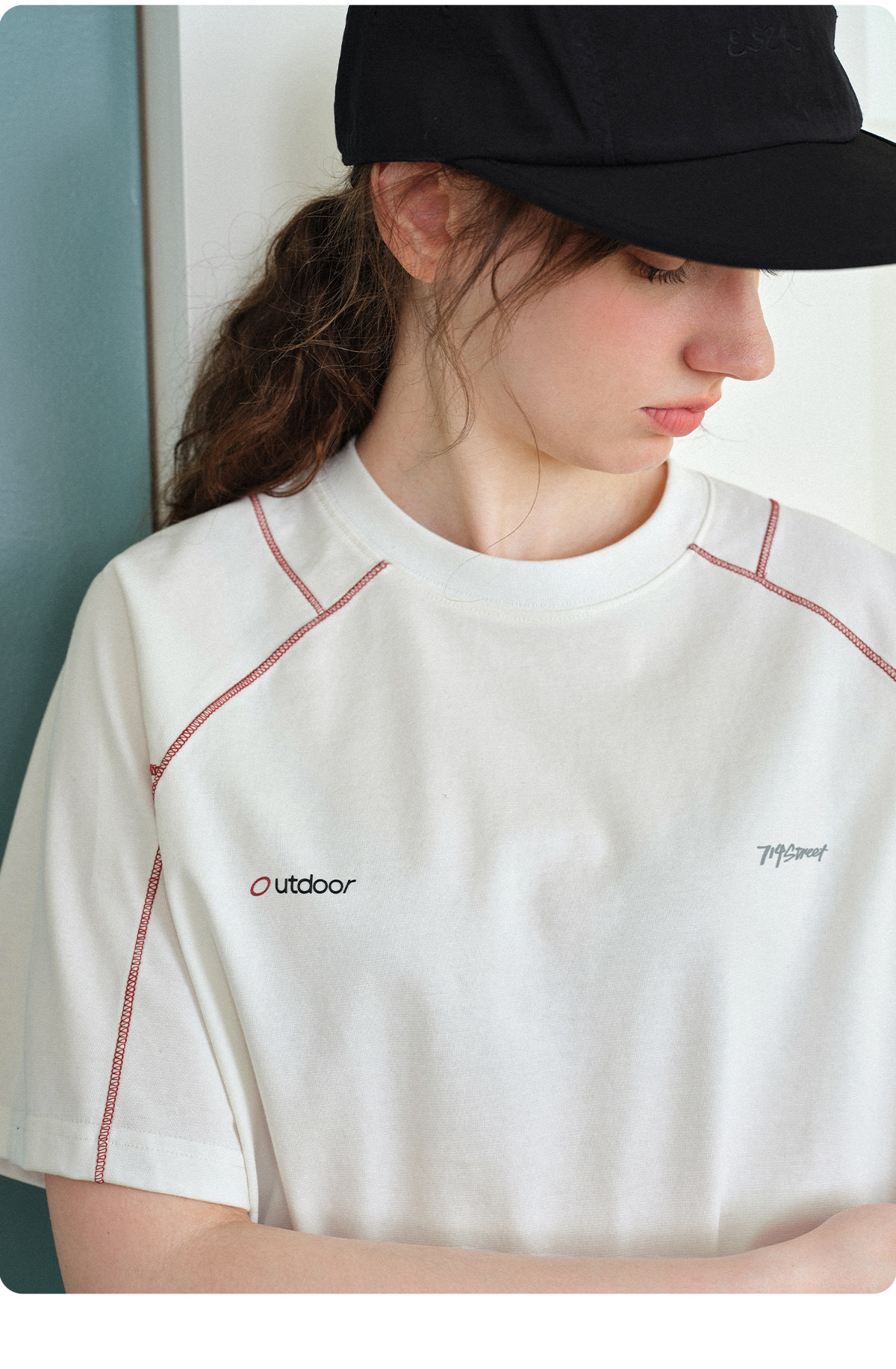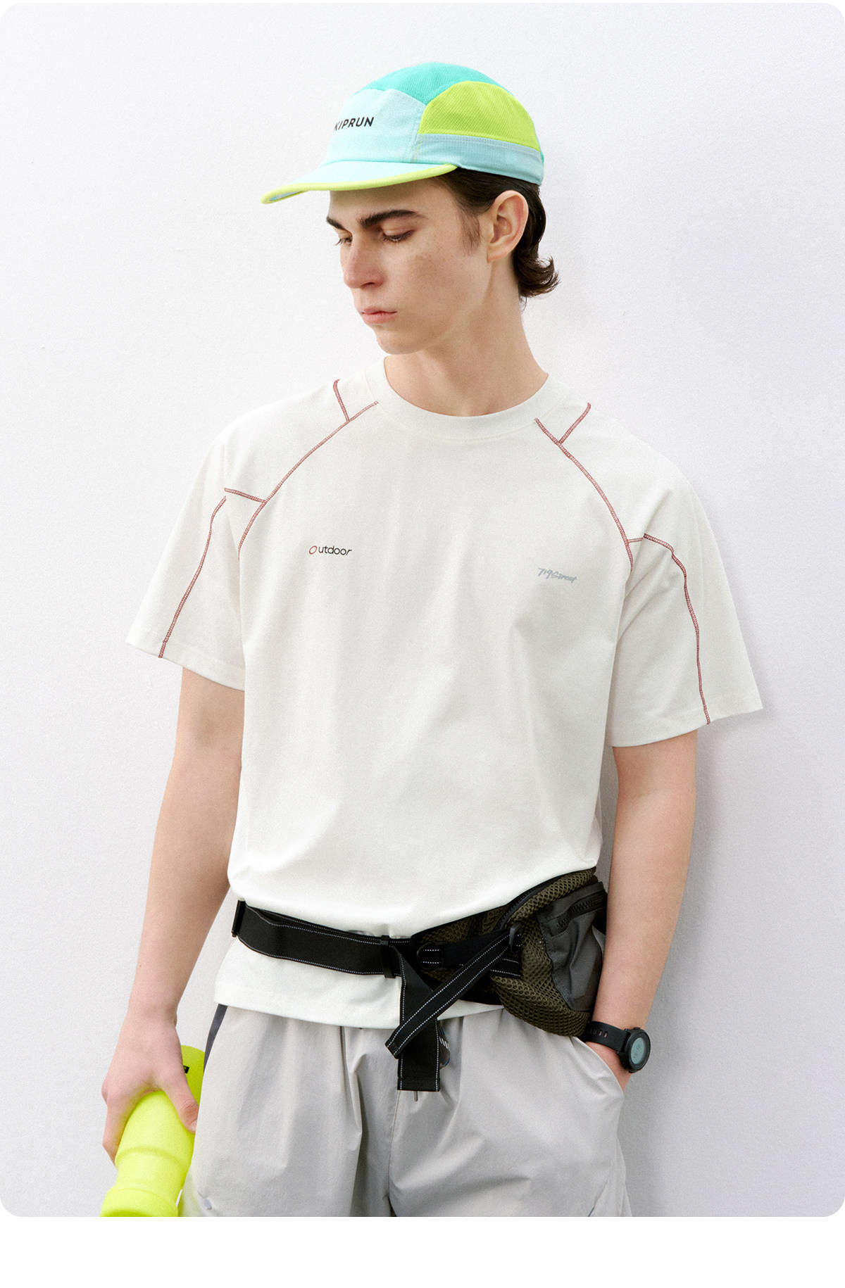 714street夏季凉感速干衣撞色明线休闲运动短袖男白色情侣印花T恤