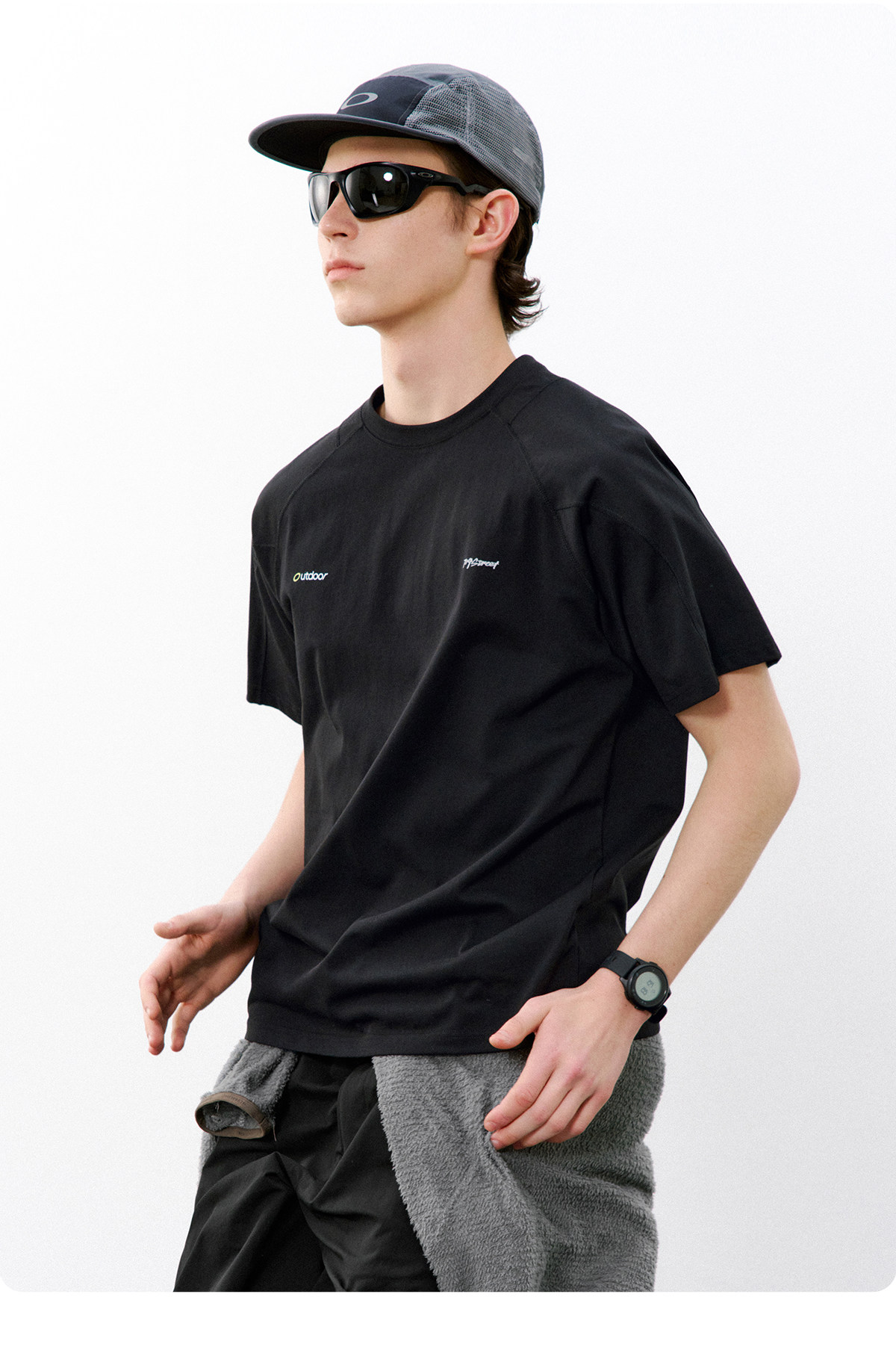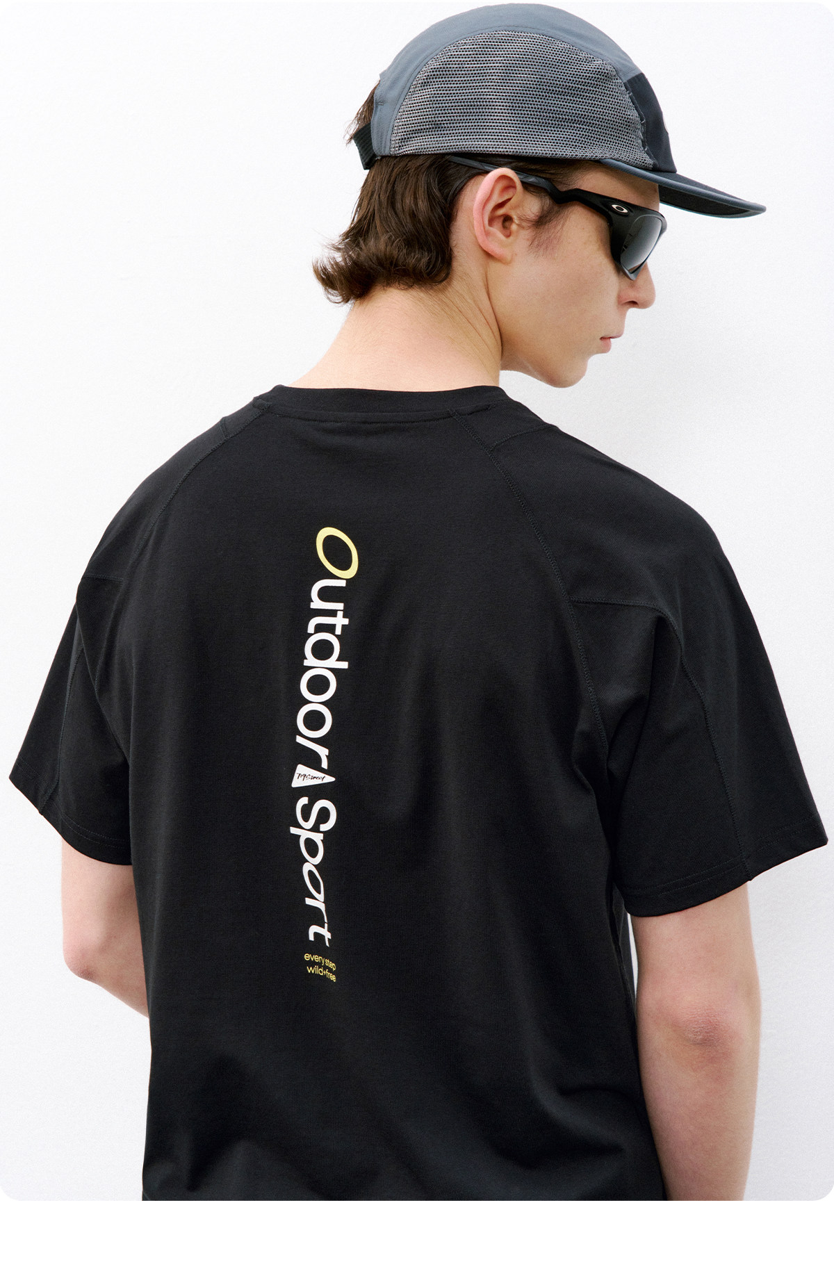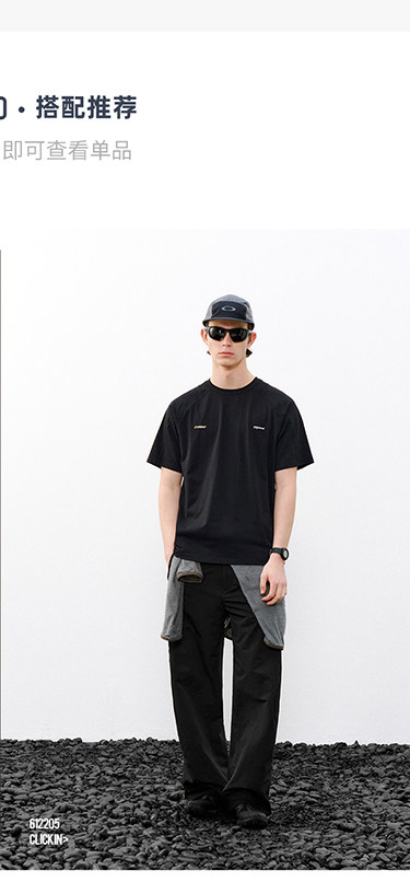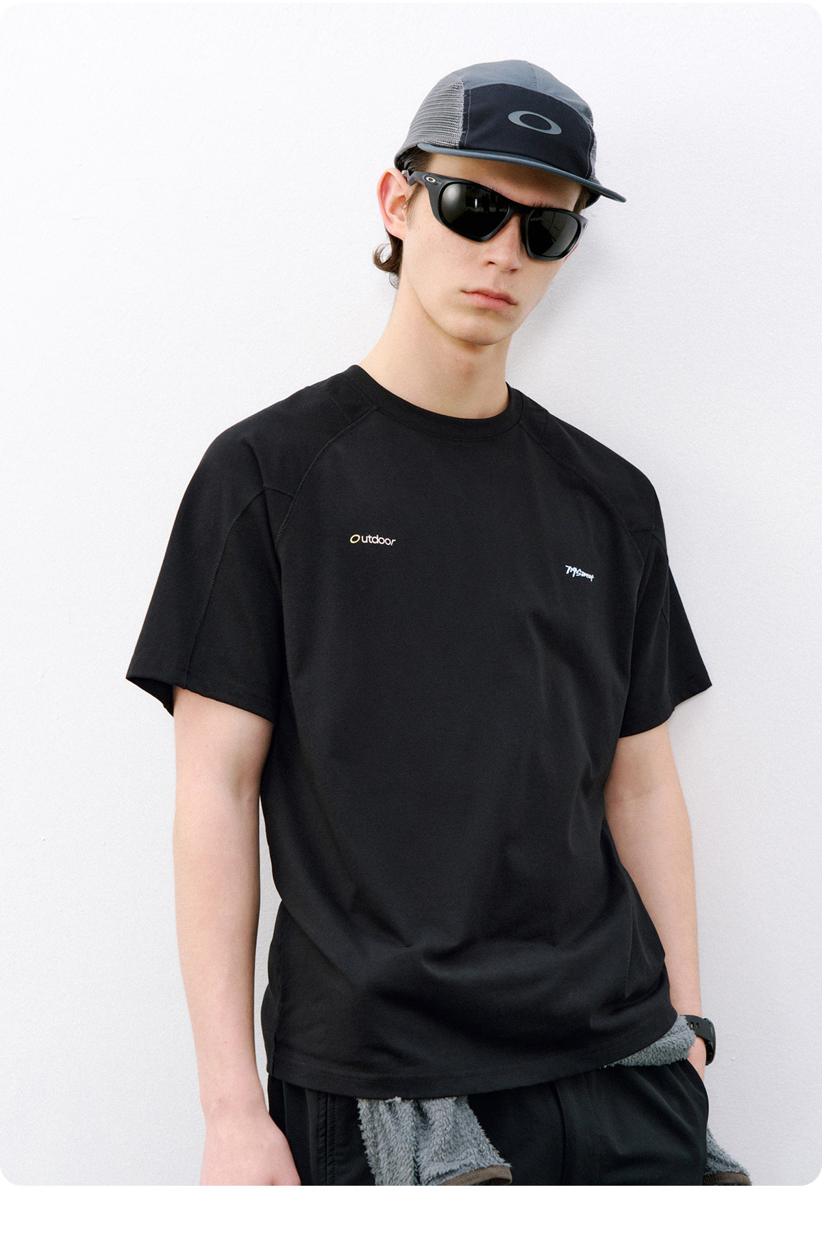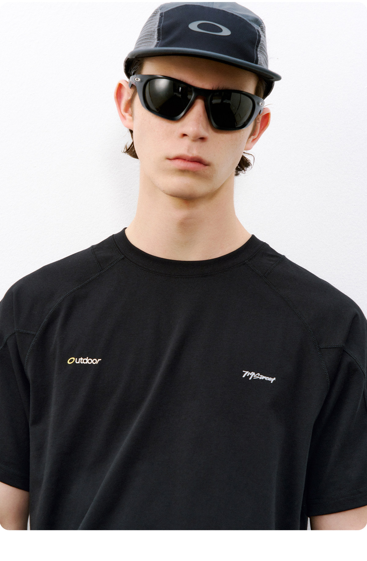 714street夏季凉感速干衣撞色明线休闲运动短袖男白色情侣印花T恤