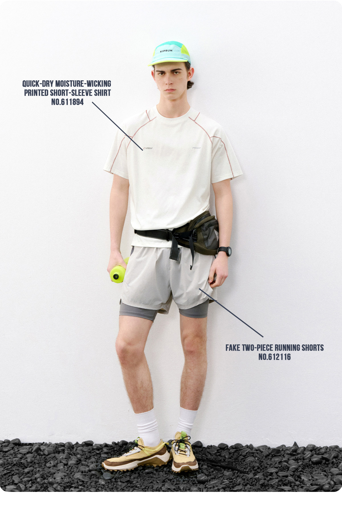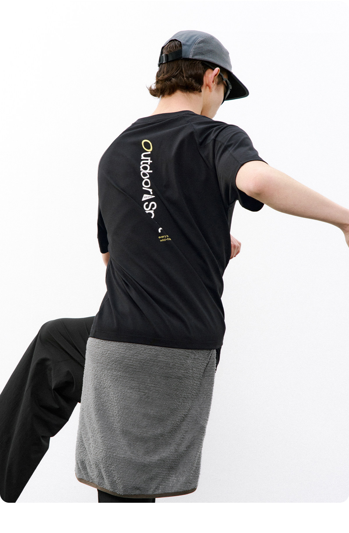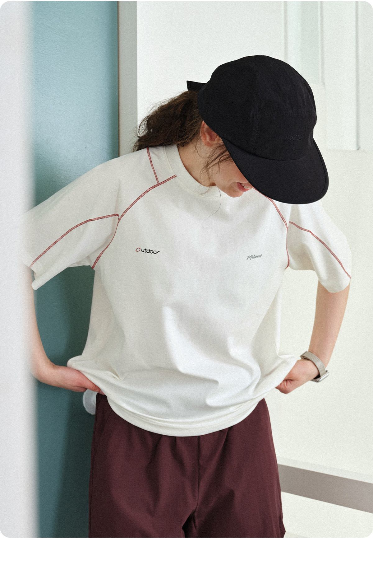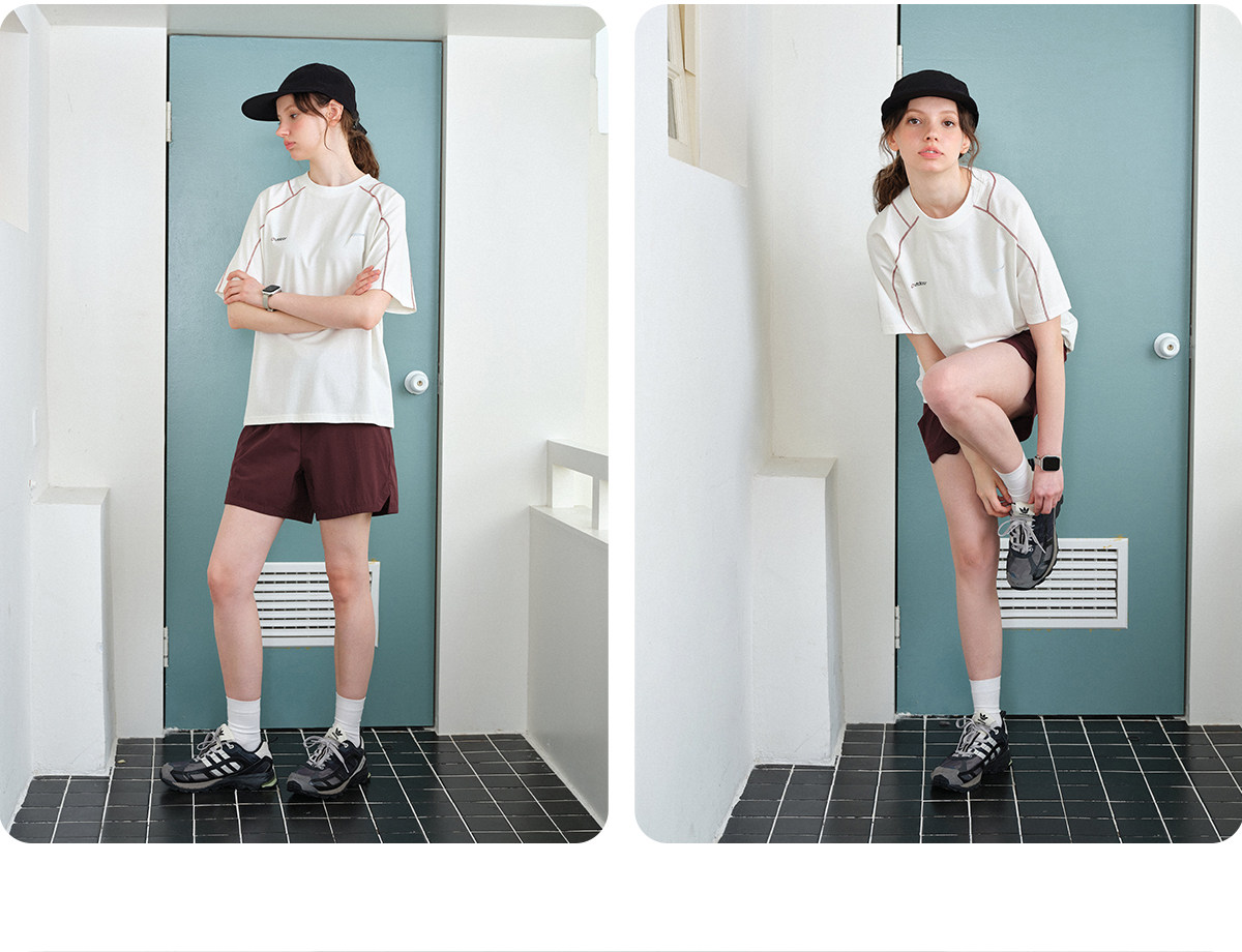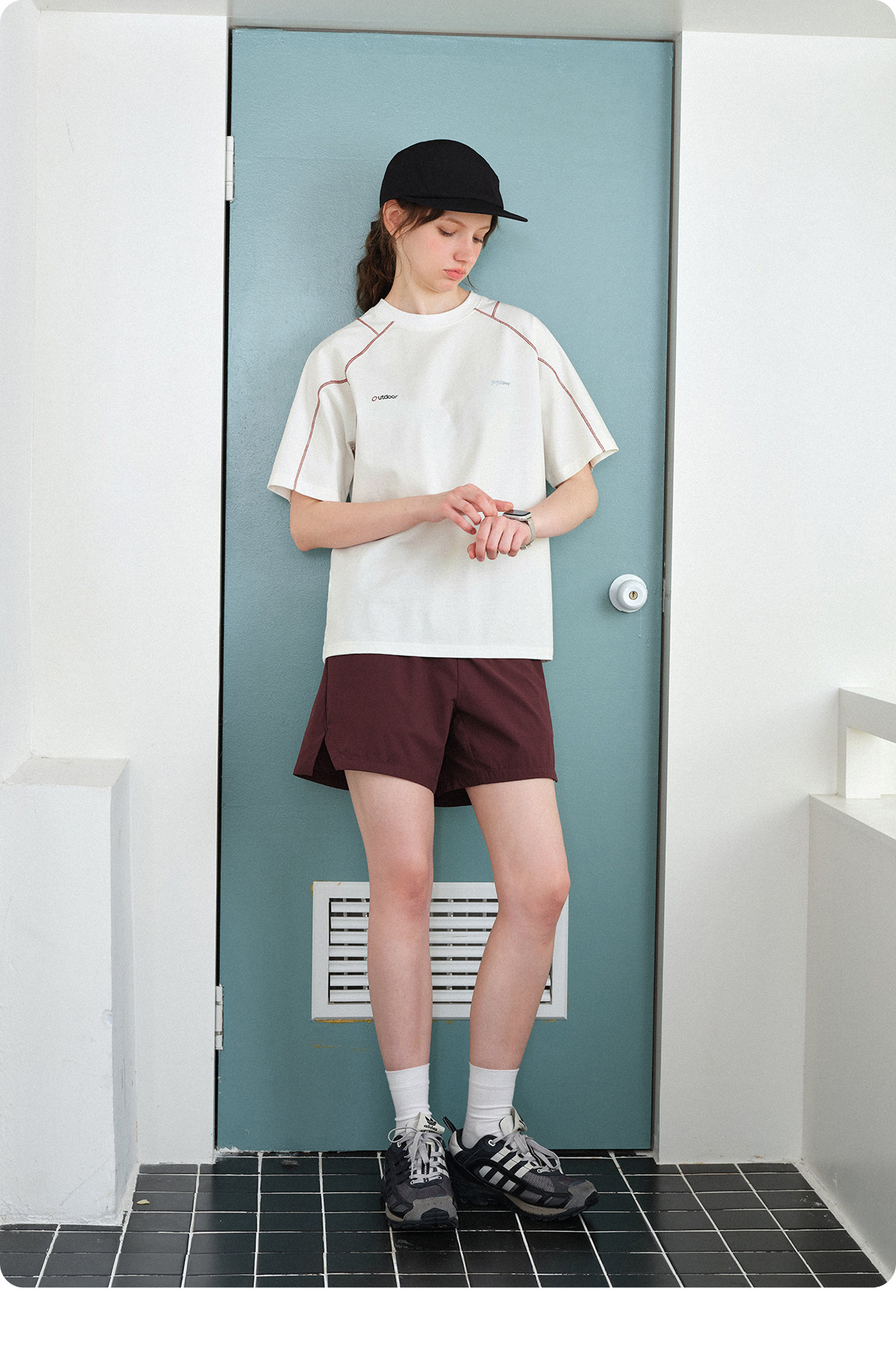 714street夏季凉感速干衣撞色明线休闲运动短袖男白色情侣印花T恤