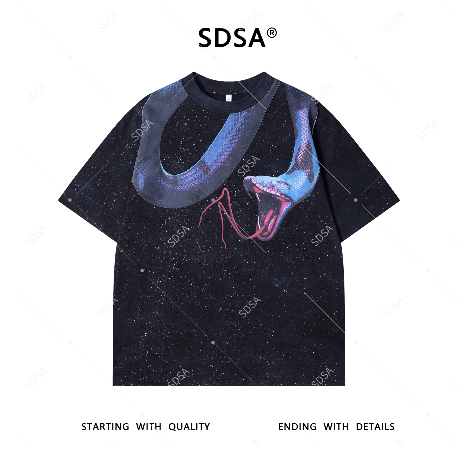 T4187夏季高级感新款男士美式满天星缠肩蟒蛇印花圆领短袖T恤时尚潮