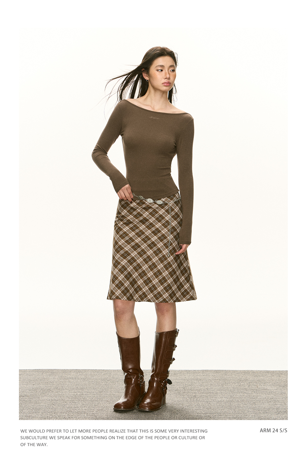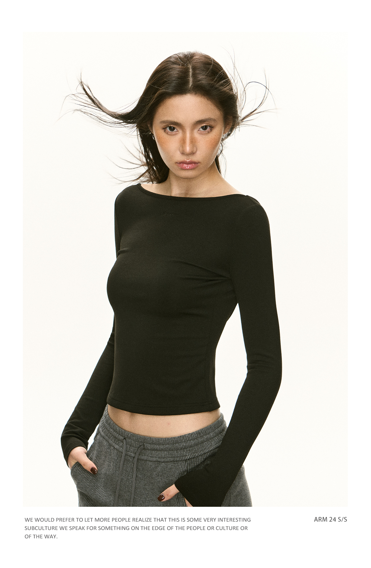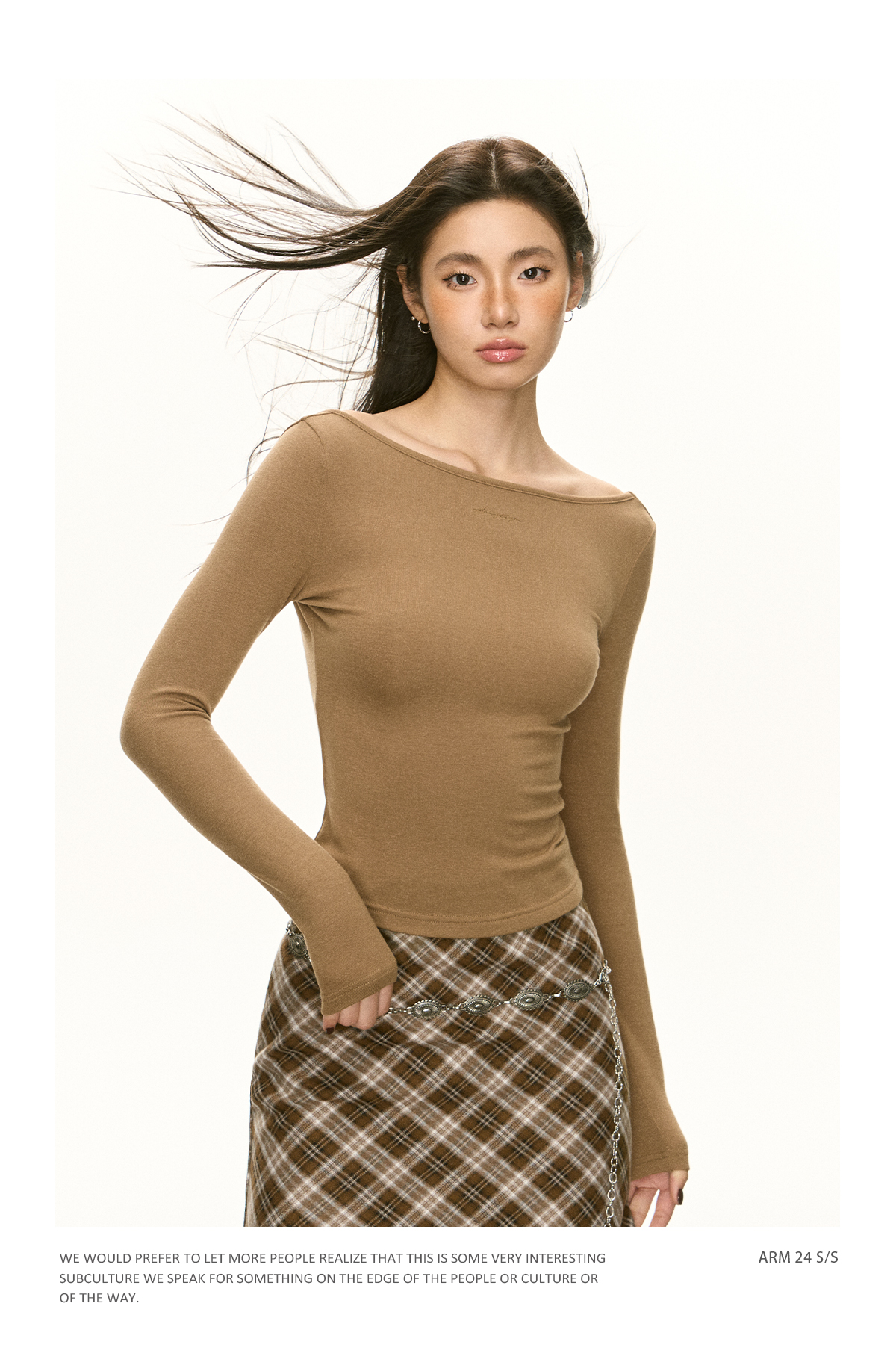 Ariseism 美式辣妹设计感一字肩长袖T恤女春季新款内搭修身上衣