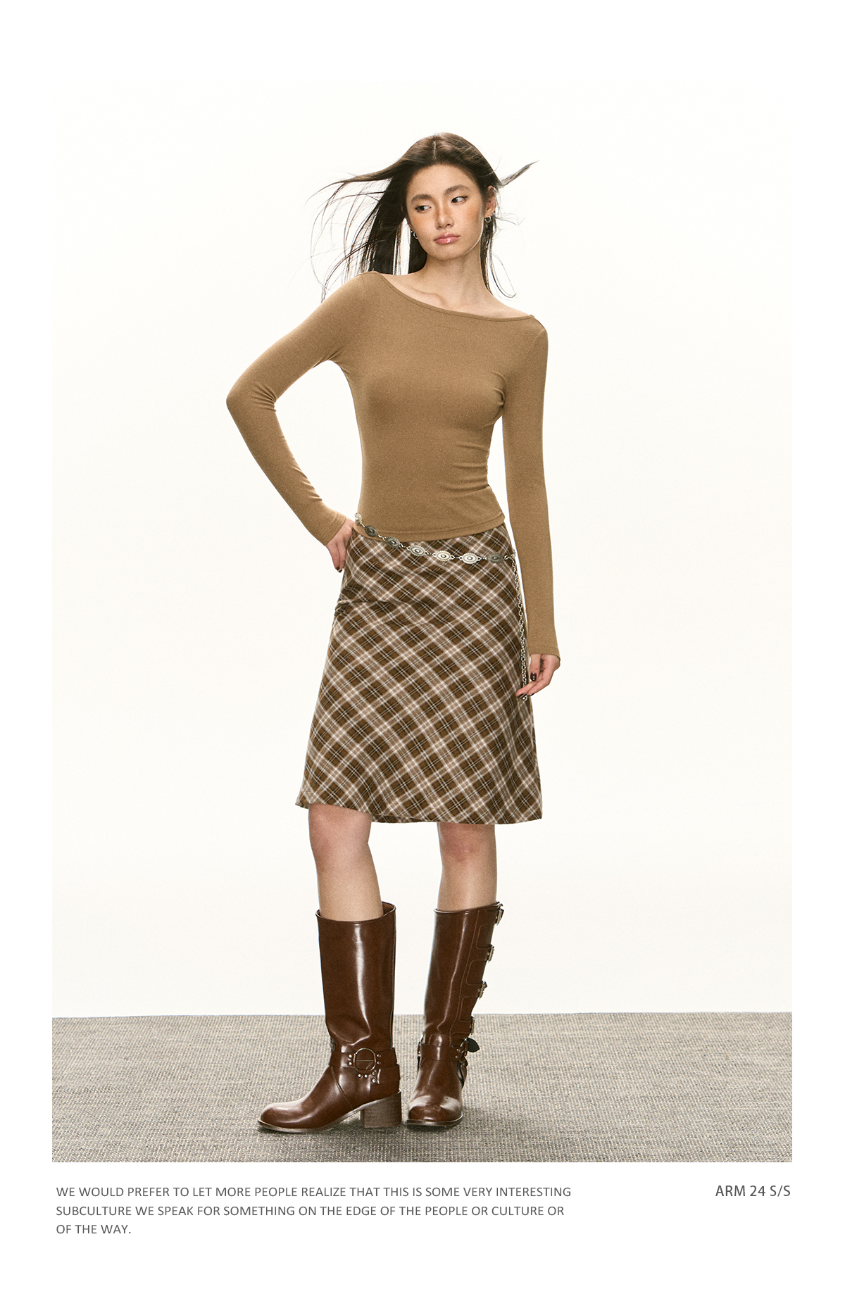Ariseism 美式复古纯色长袖t恤女2025春秋新款修身上衣内搭打底衫