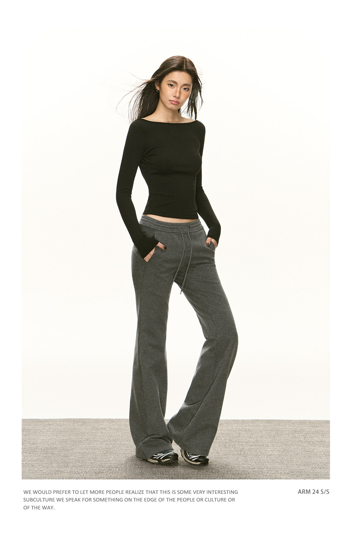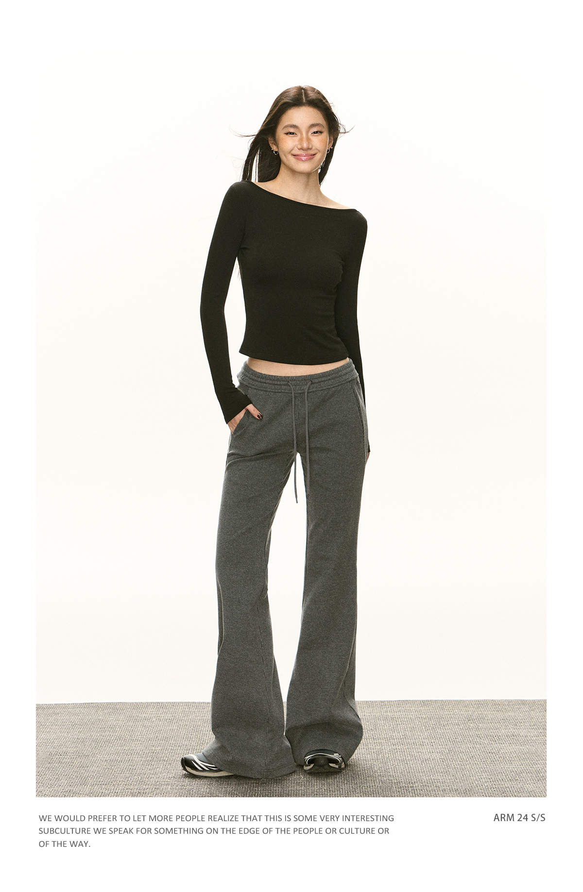Ariseism 美式复古黑色抽绳休闲裤女春季新款长裤子