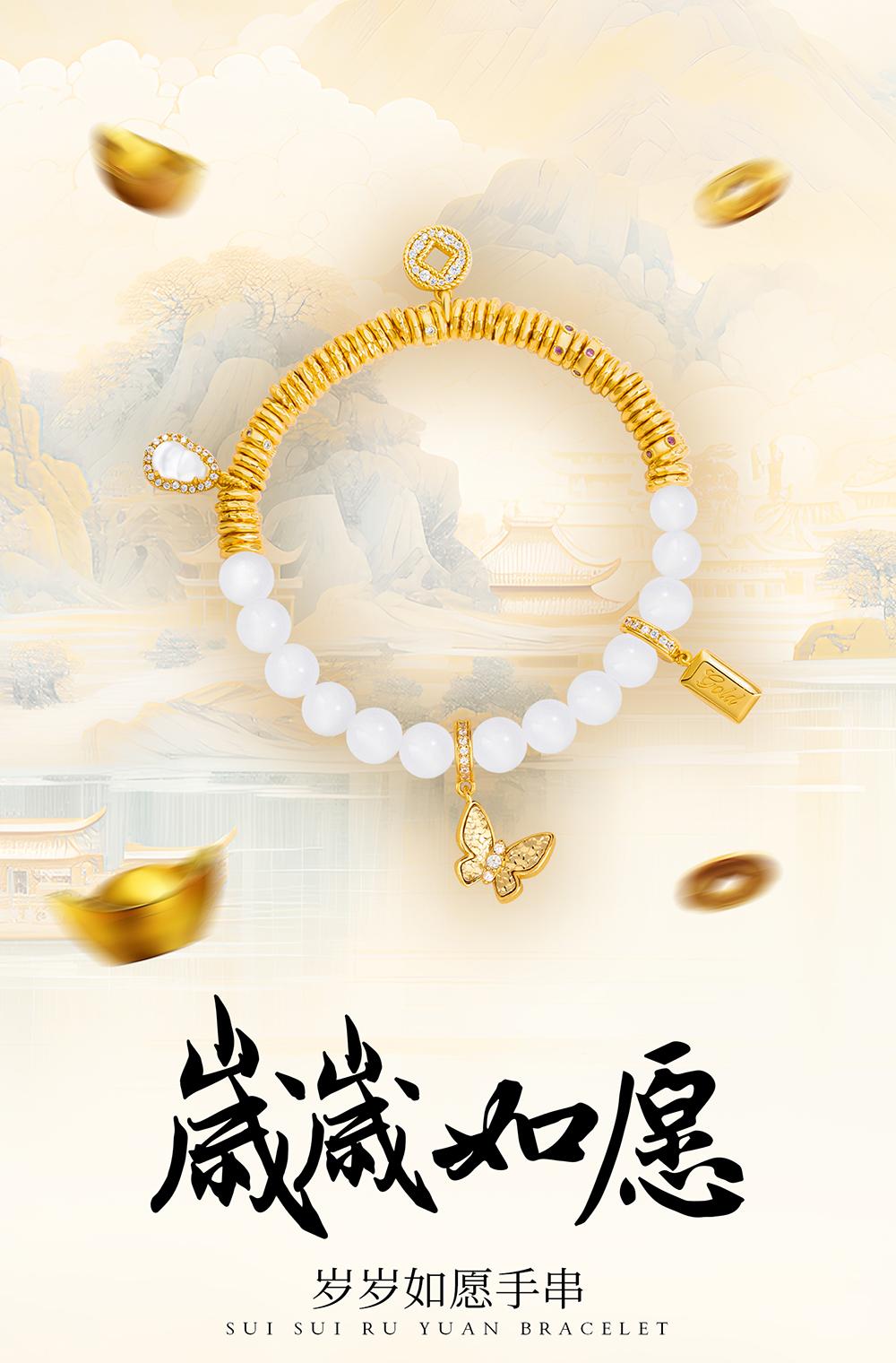 摩邦珠宝 铜合金合成锆石手链 多宝珠珠手链女款