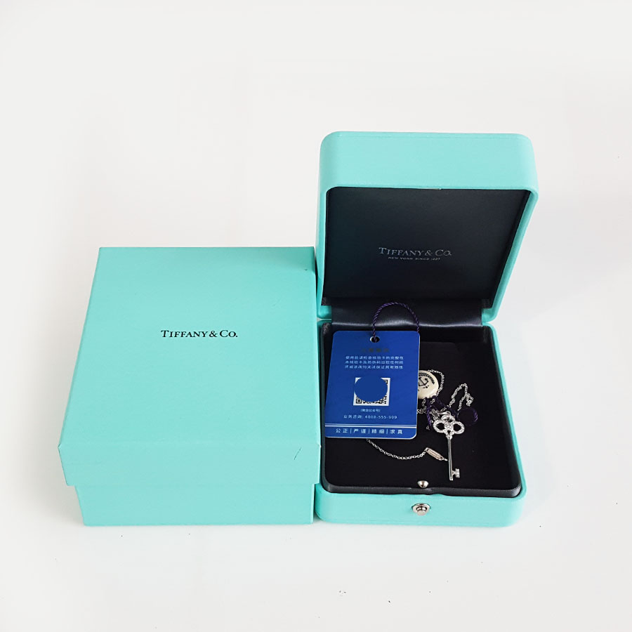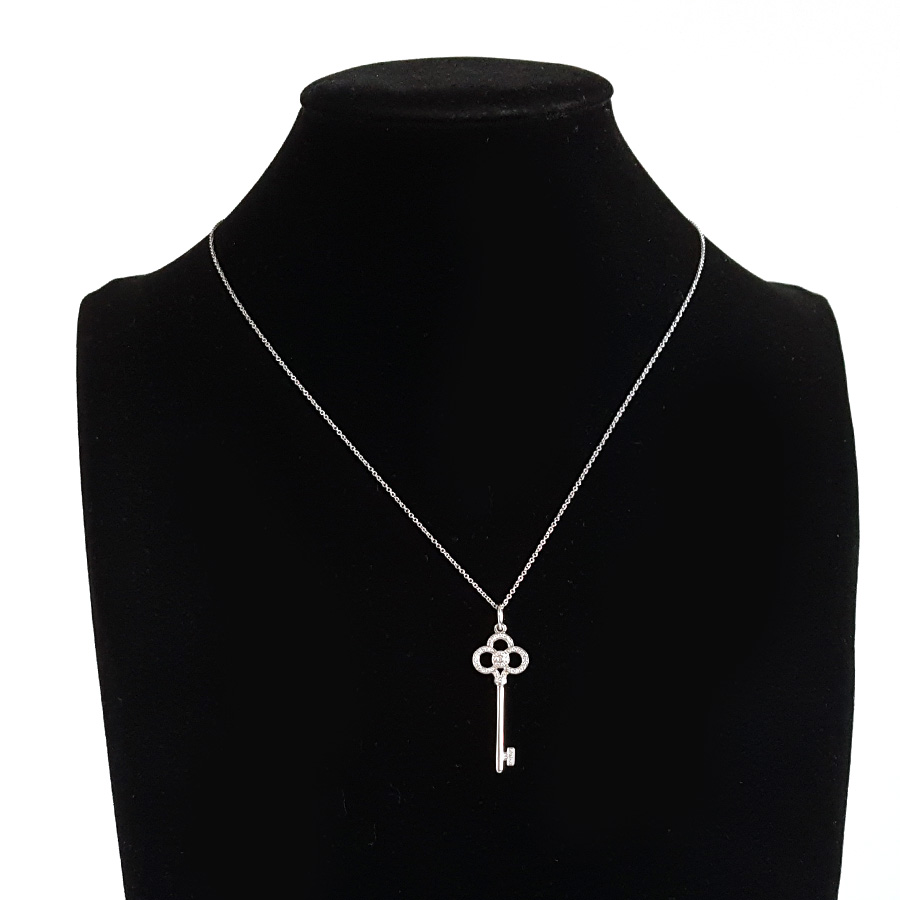 【95新】Tiffany & Co.蒂芙尼Keys系列18K白金镶钻皇冠钥匙项链 链长约46cm女士130326NJS08