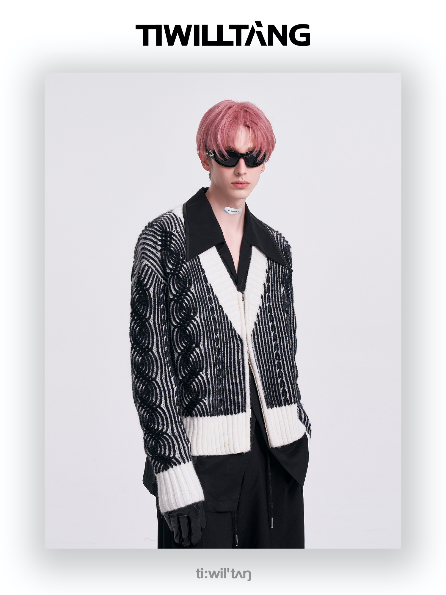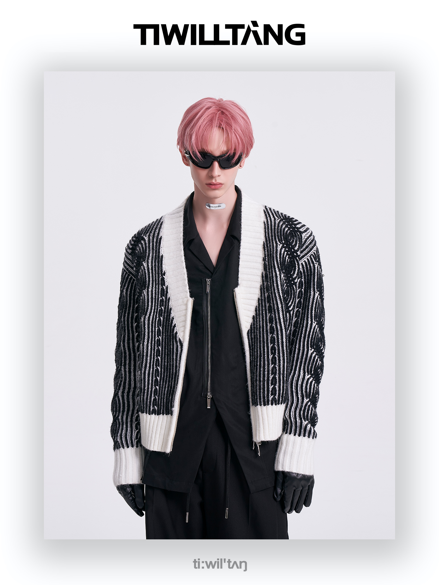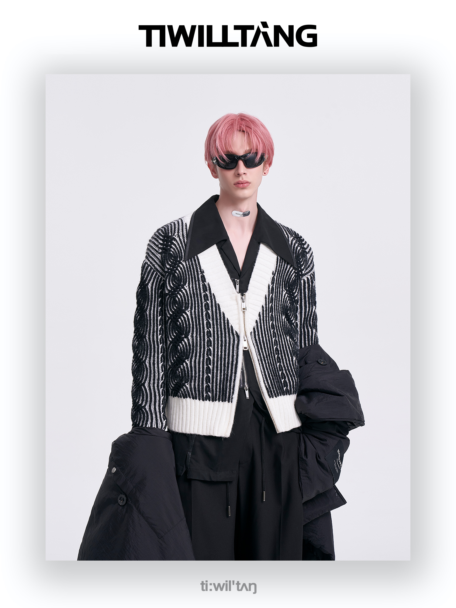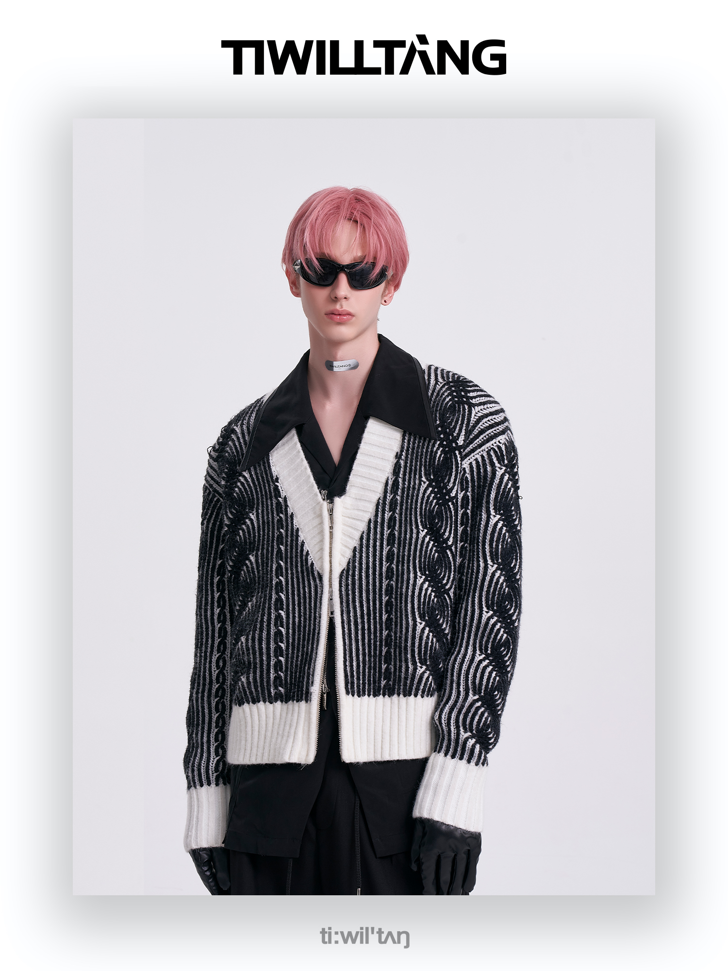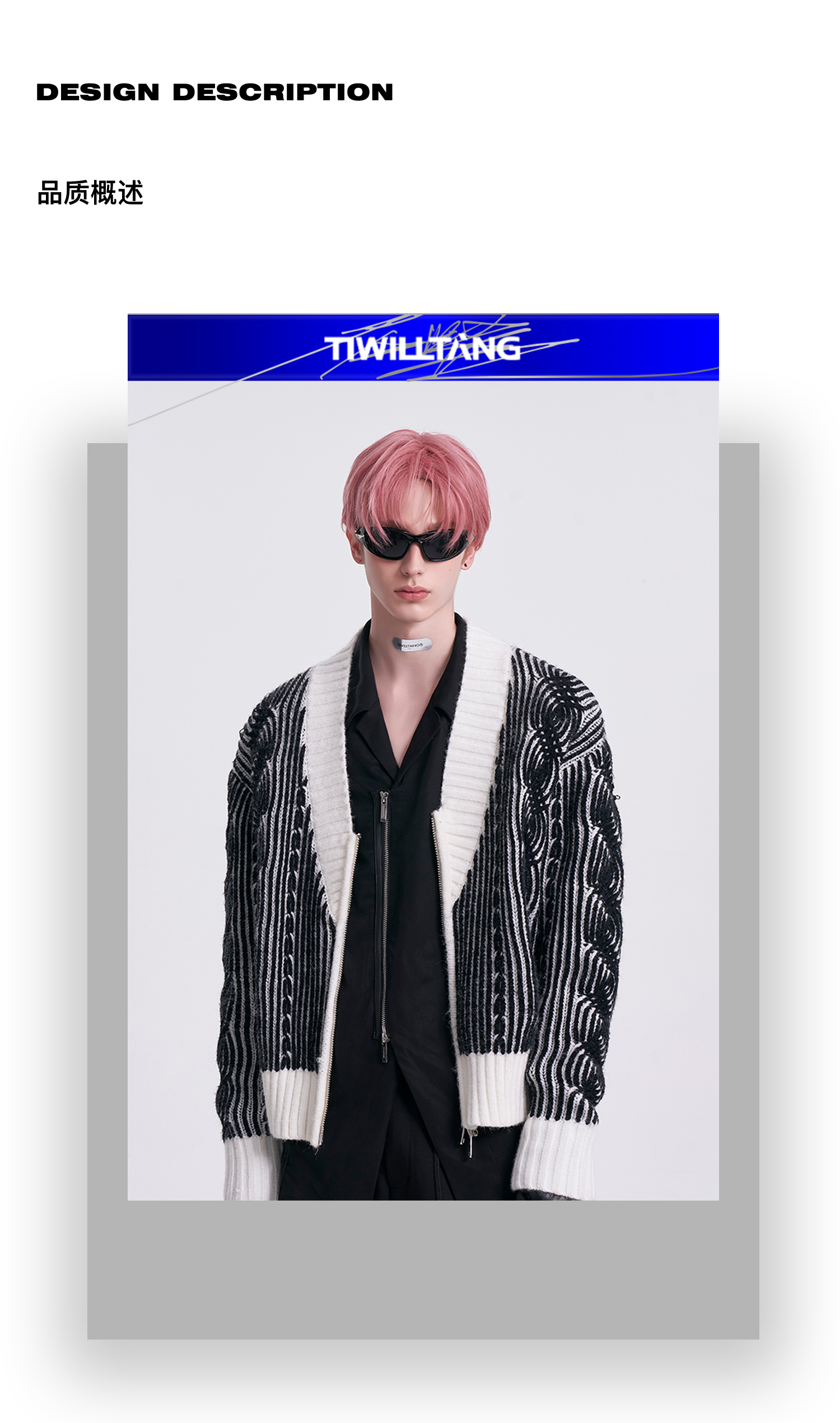启世录TIWILLTANG“灵峦境霁”坑条绞花双开拉链针织毛衣