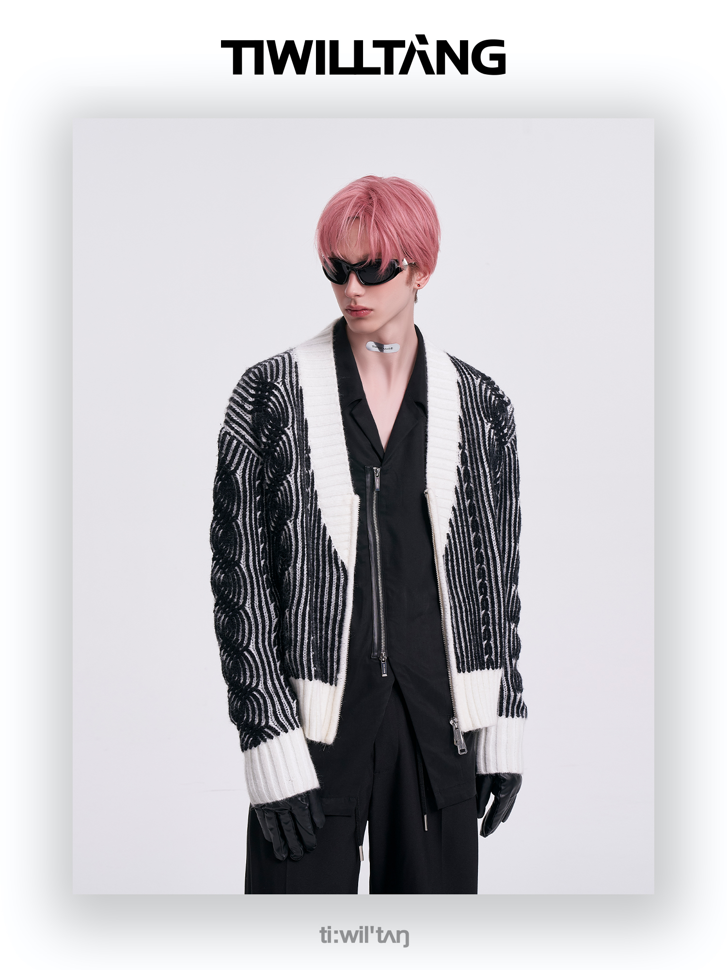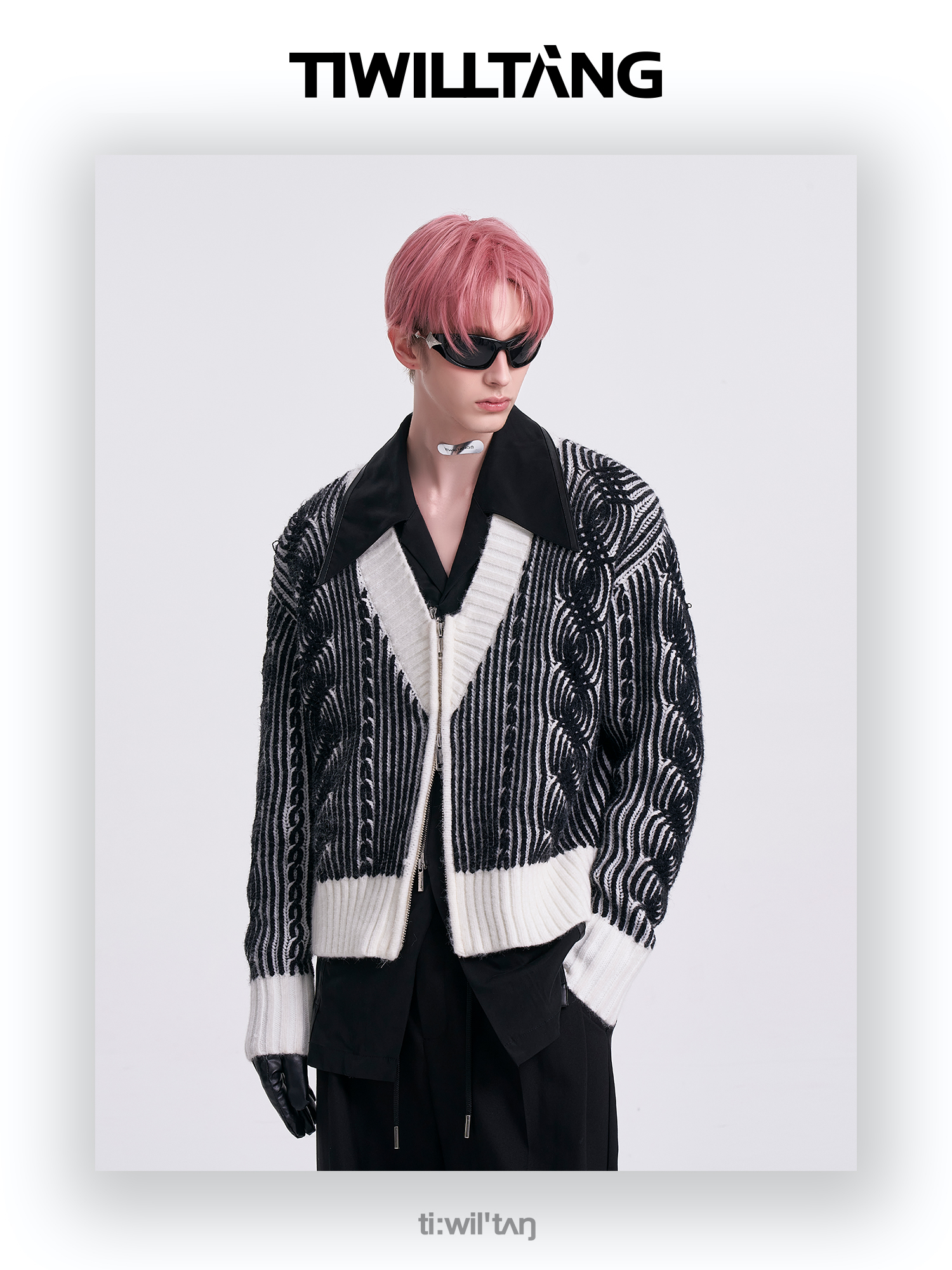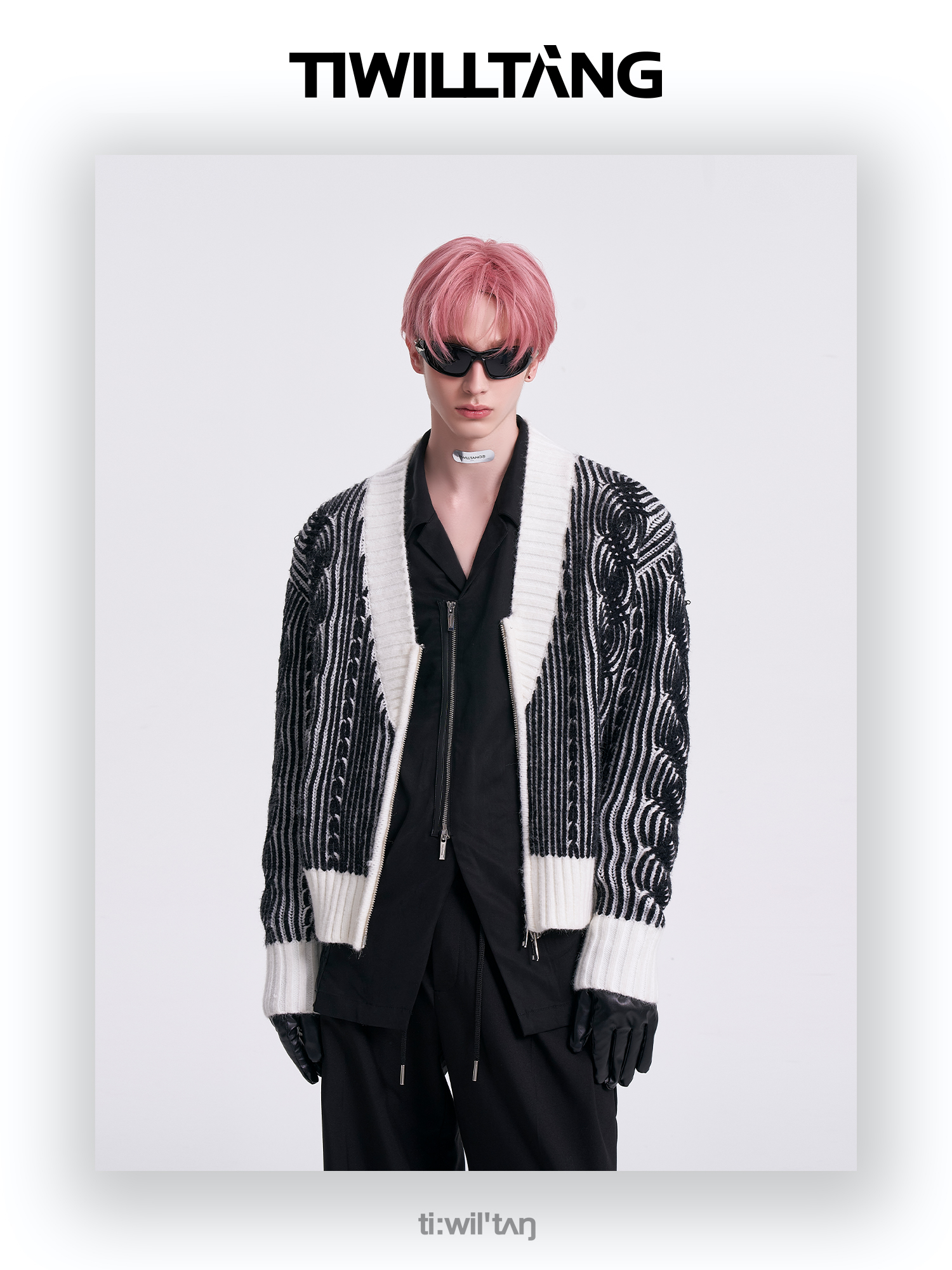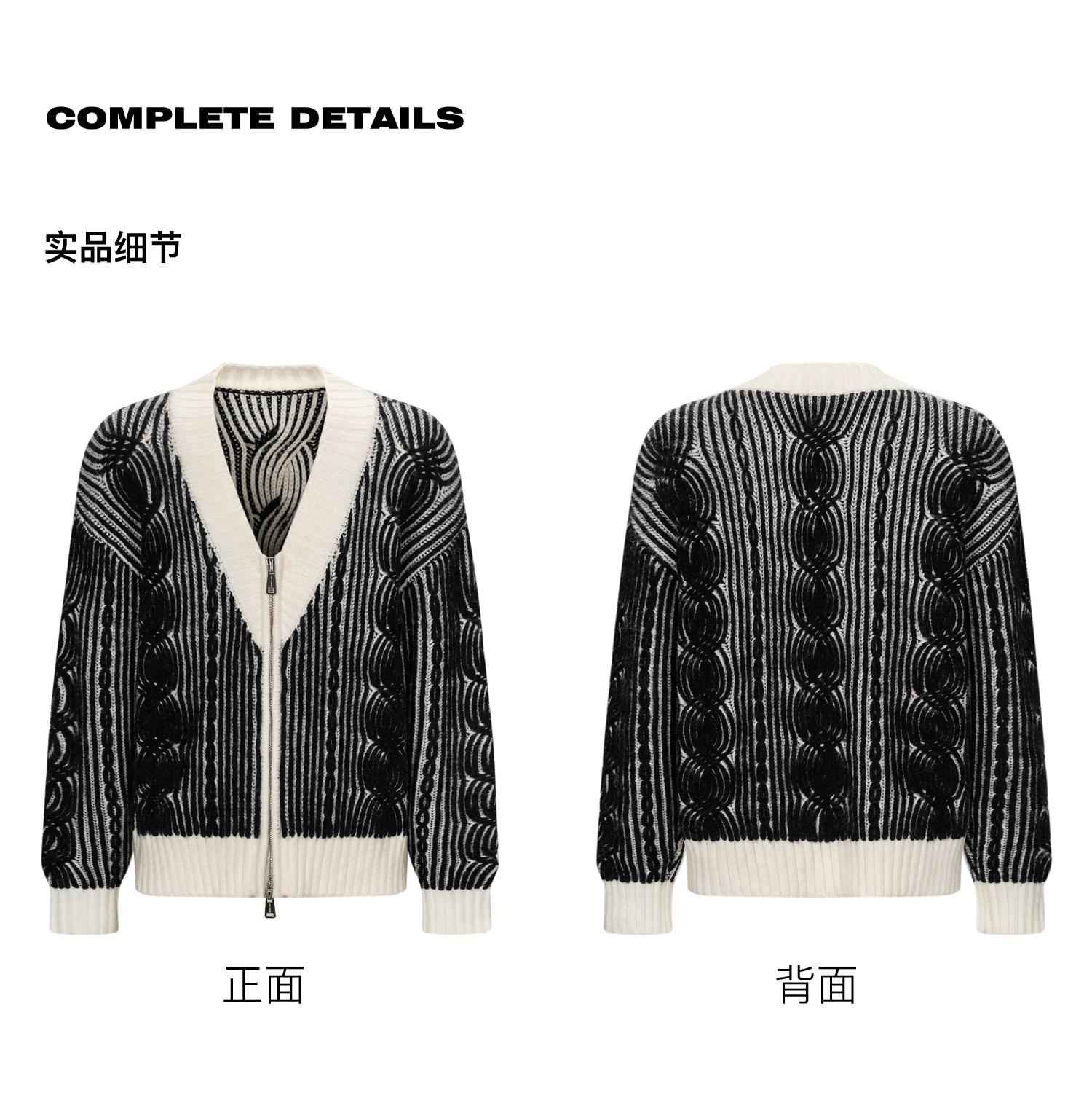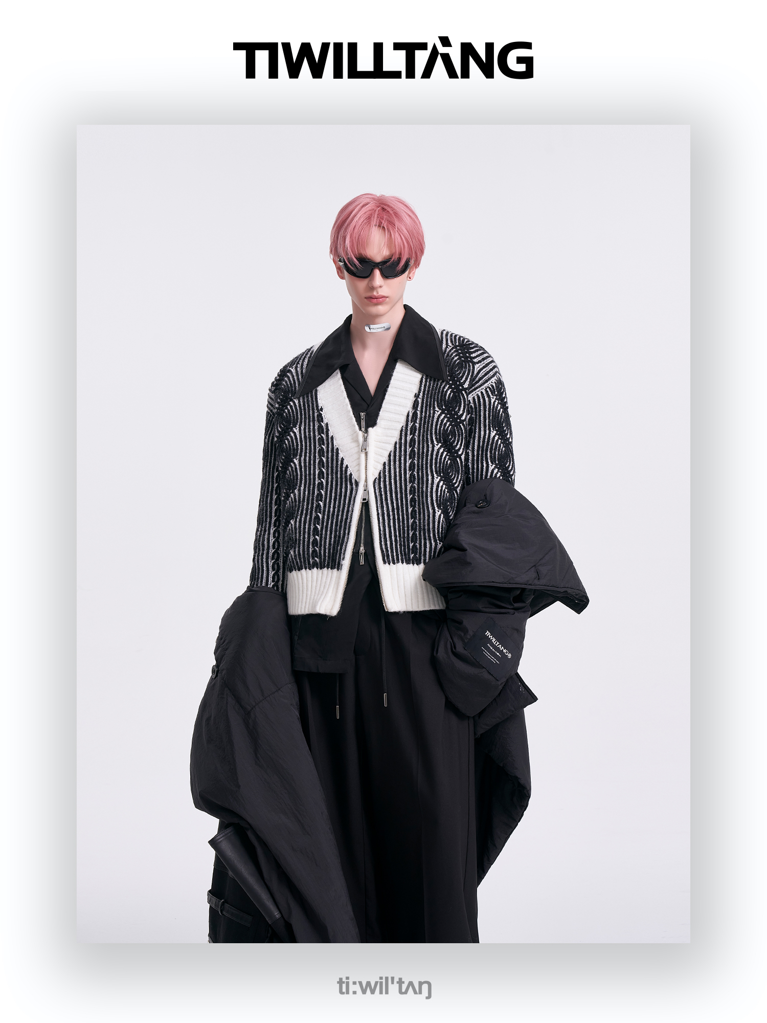 启世录TIWILLTANG“灵峦境霁”坑条绞花双开拉链针织毛衣