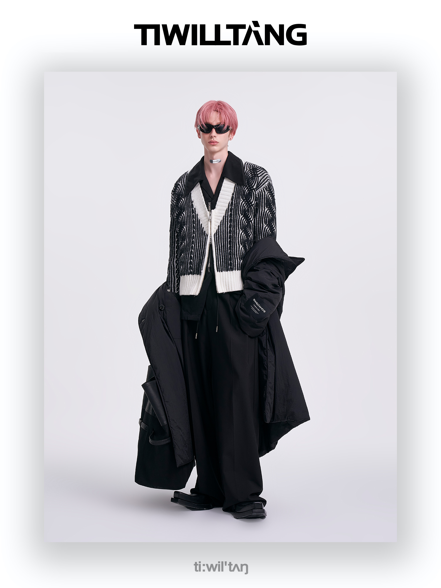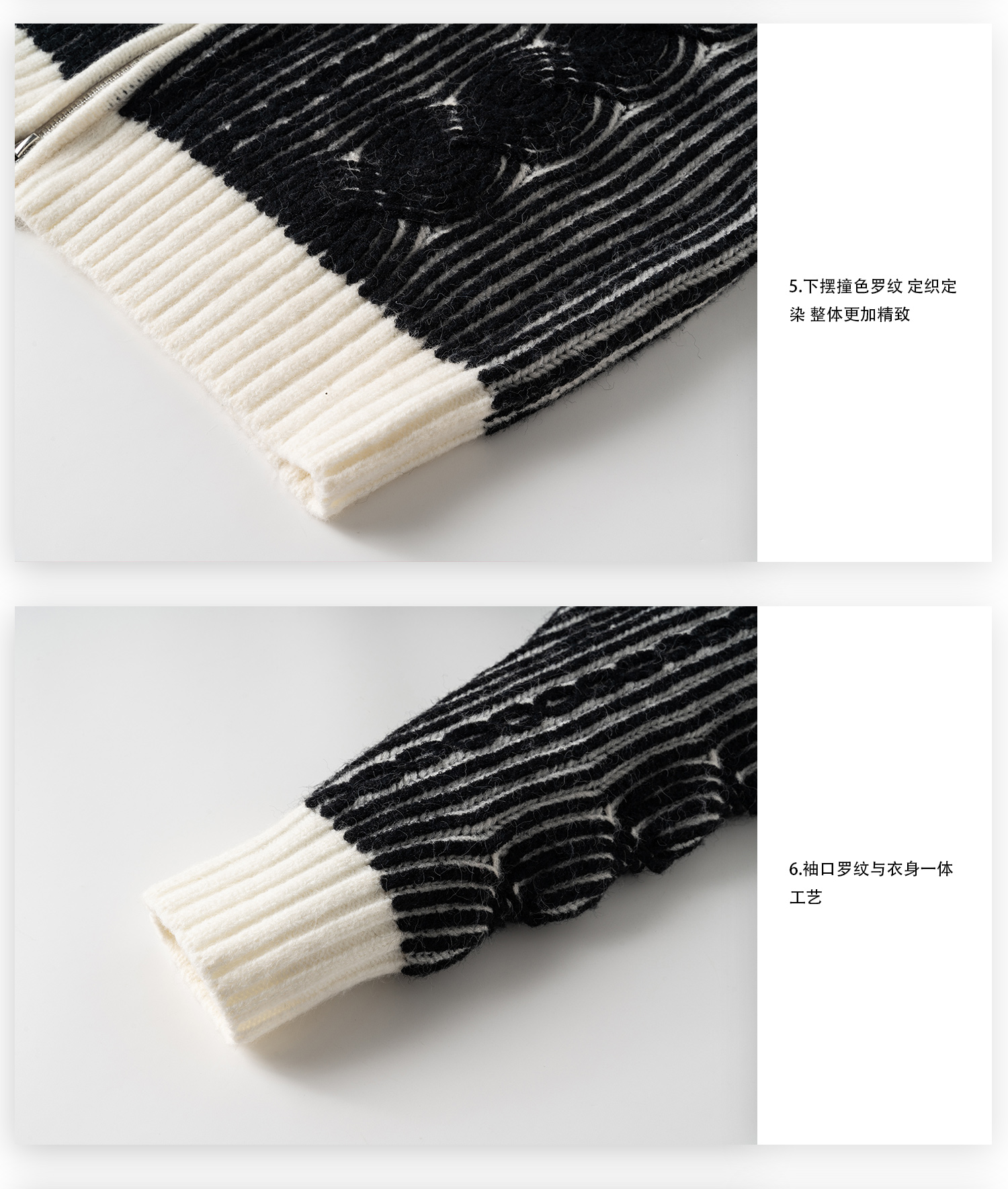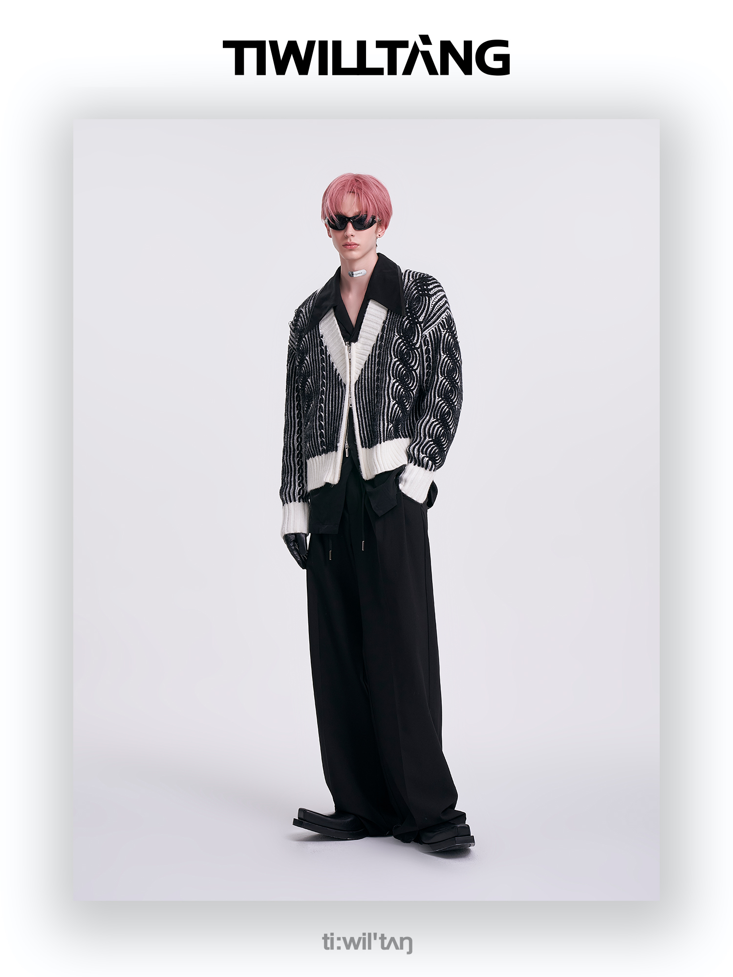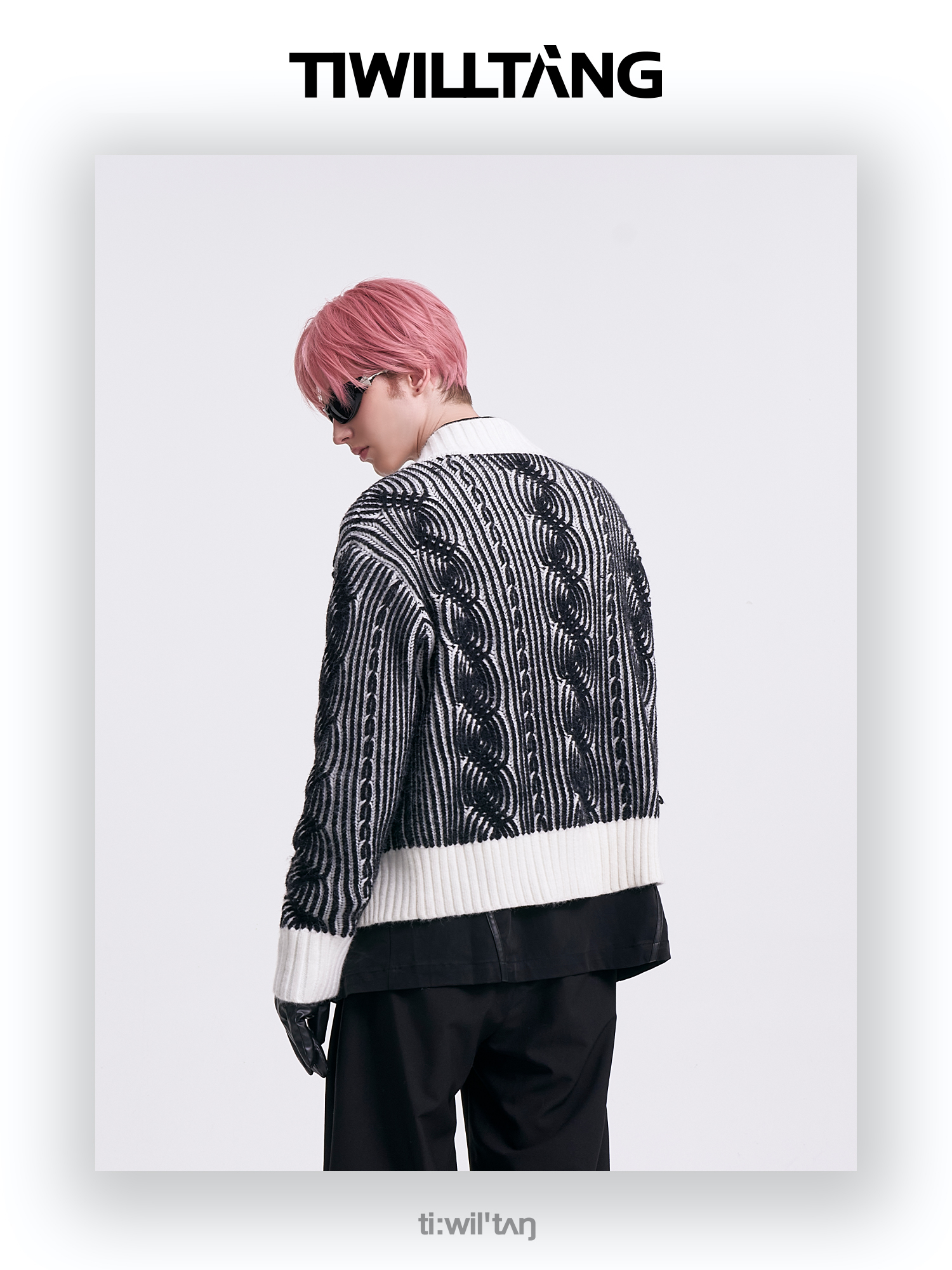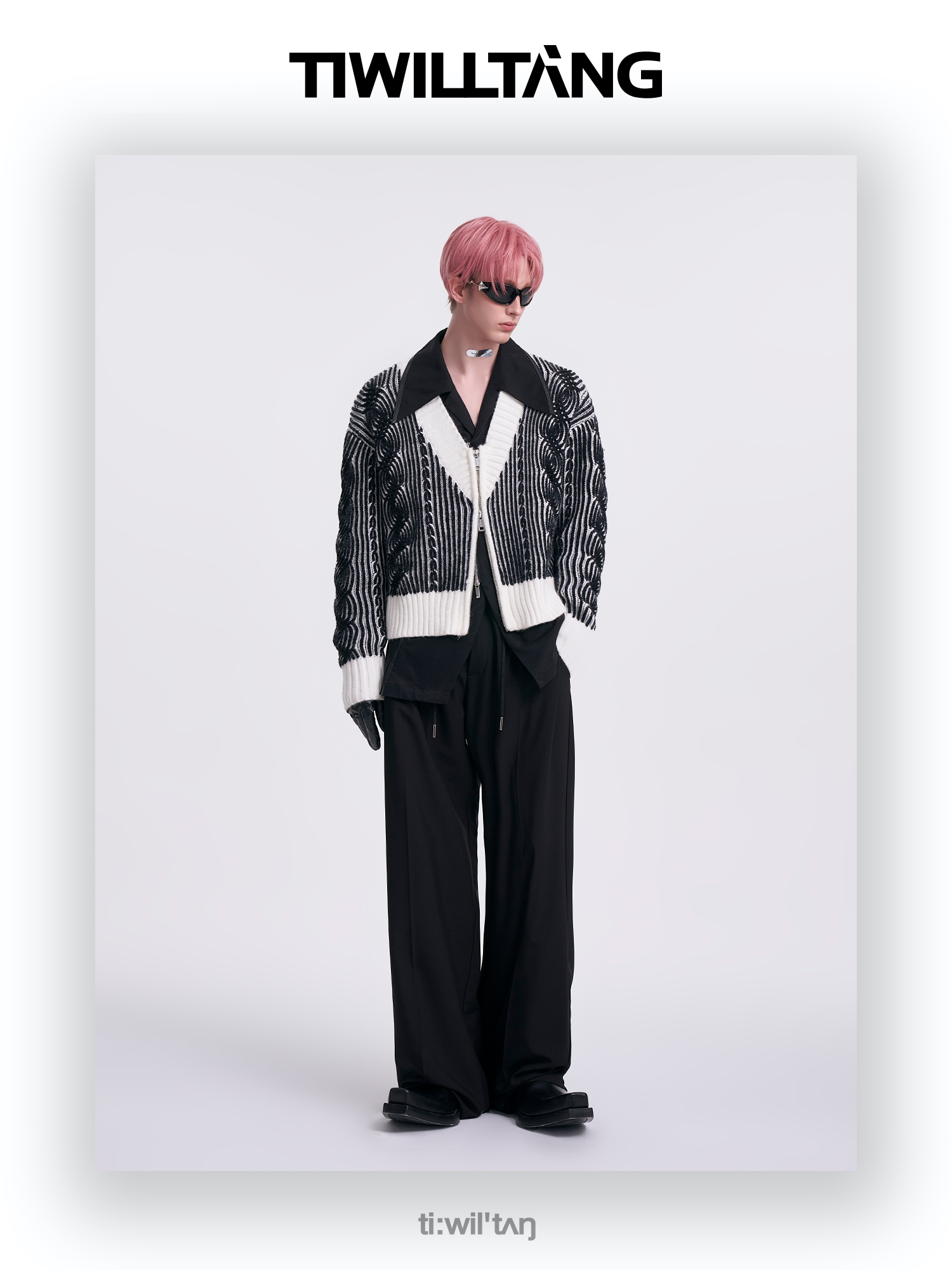 启世录TIWILLTANG“灵峦境霁”坑条绞花双开拉链针织毛衣