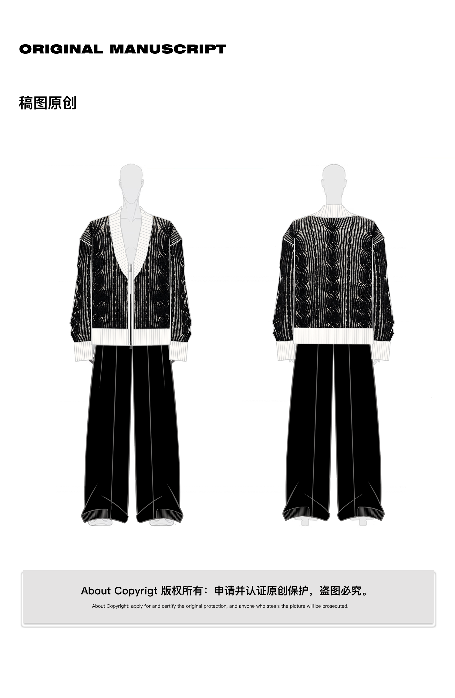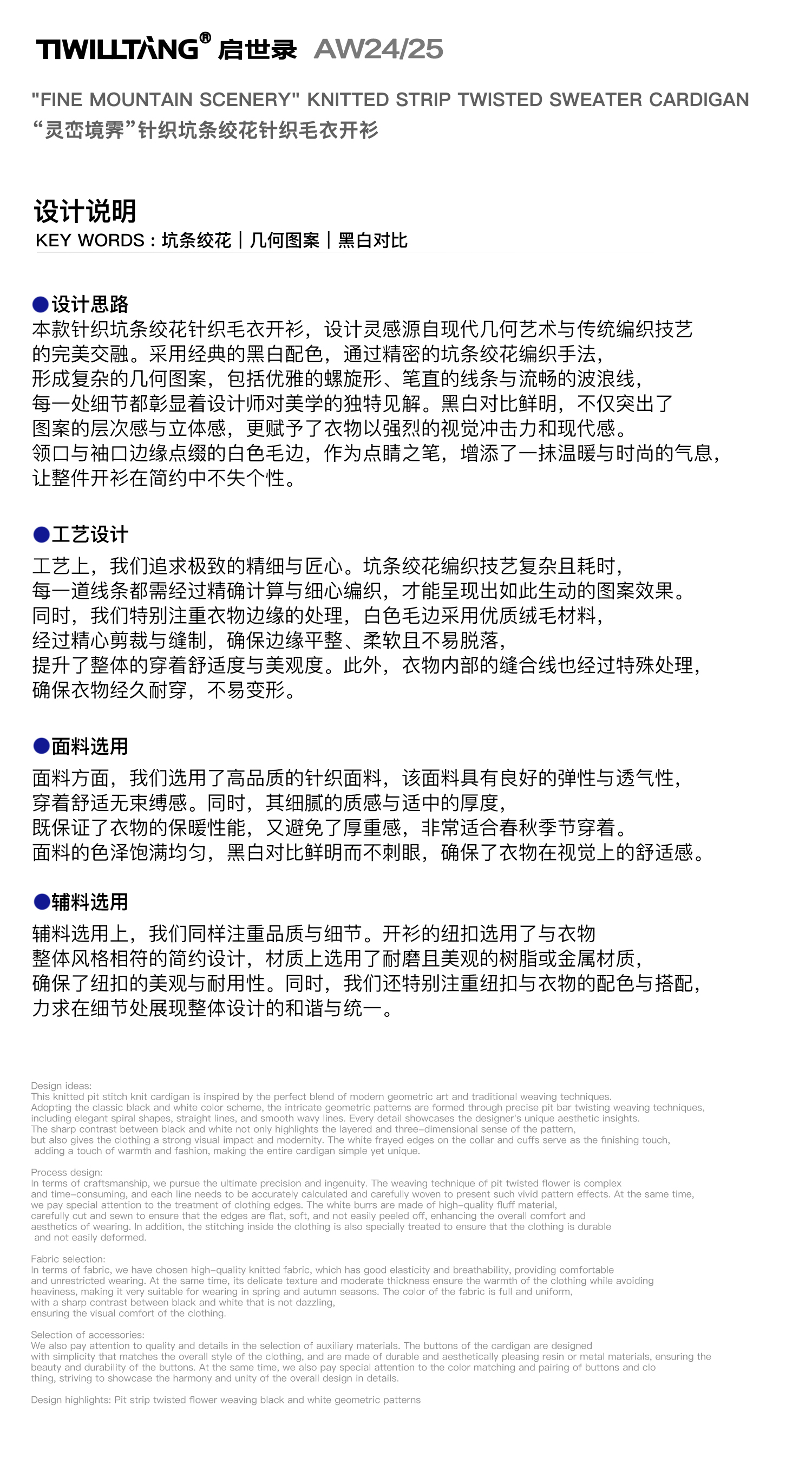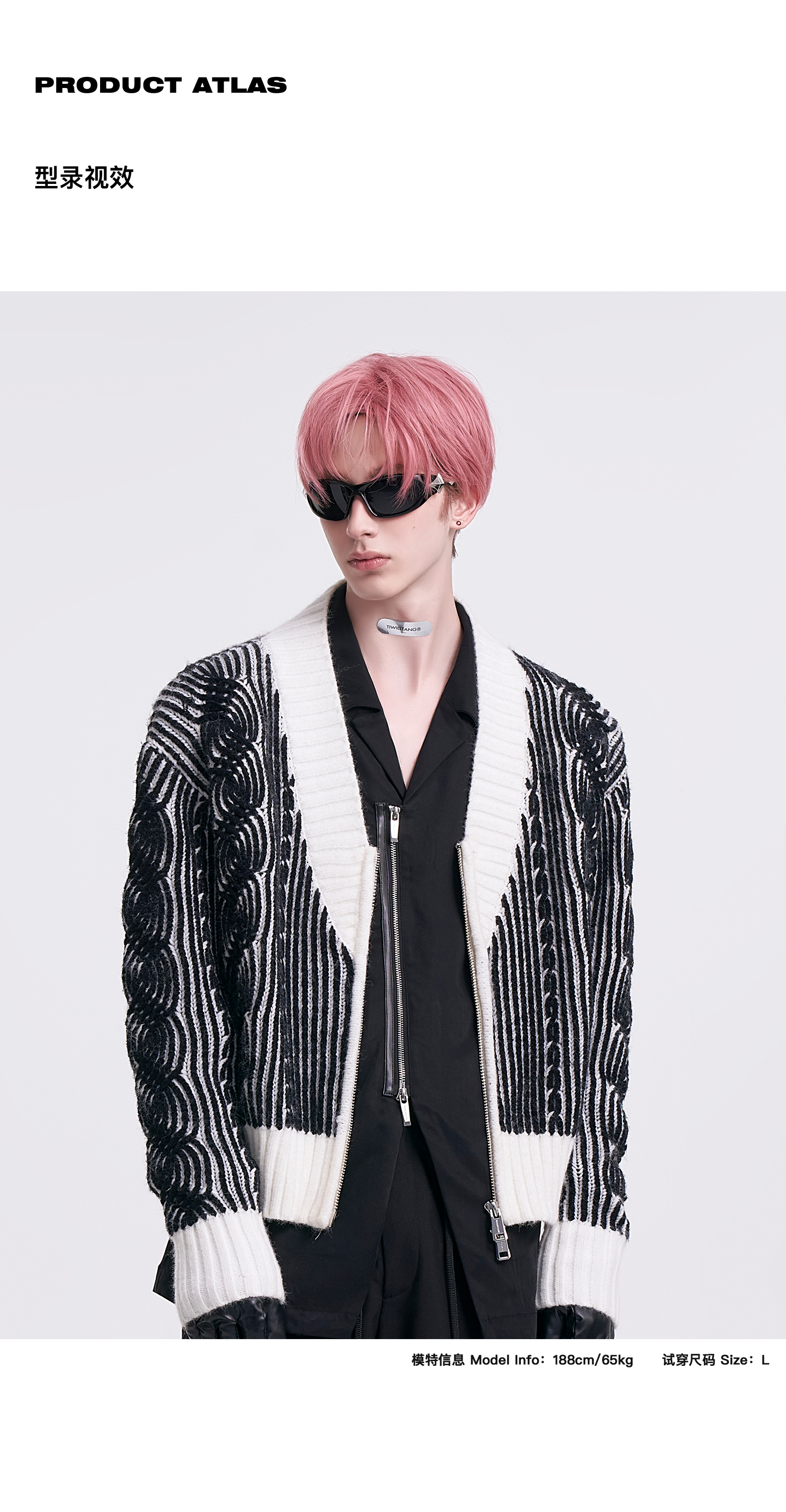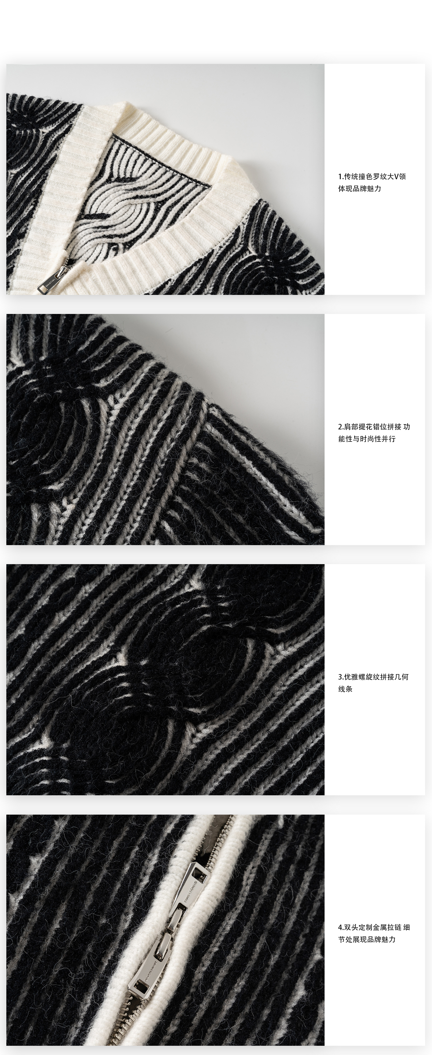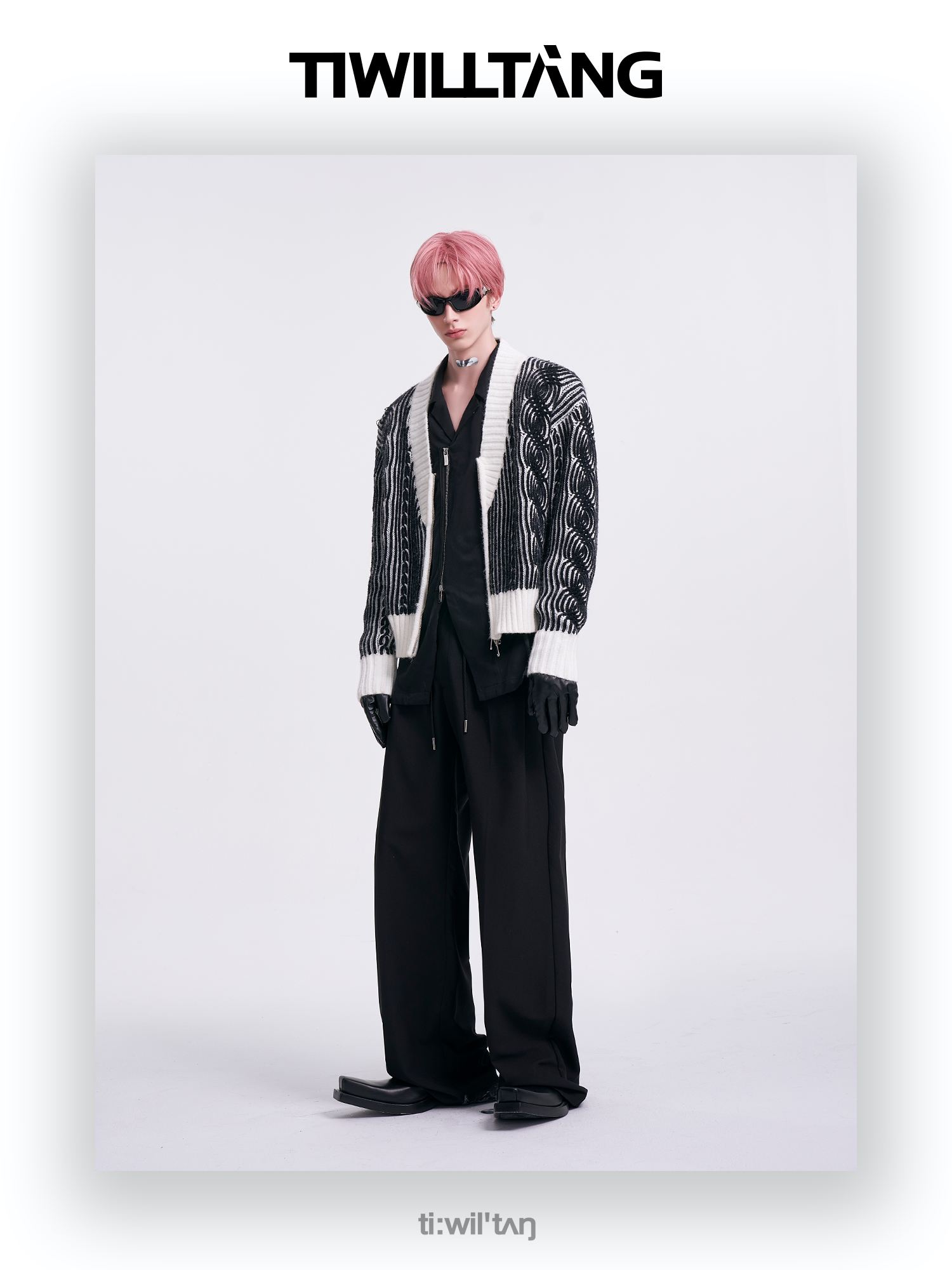 启世录TIWILLTANG“灵峦境霁”坑条绞花双开拉链针织毛衣