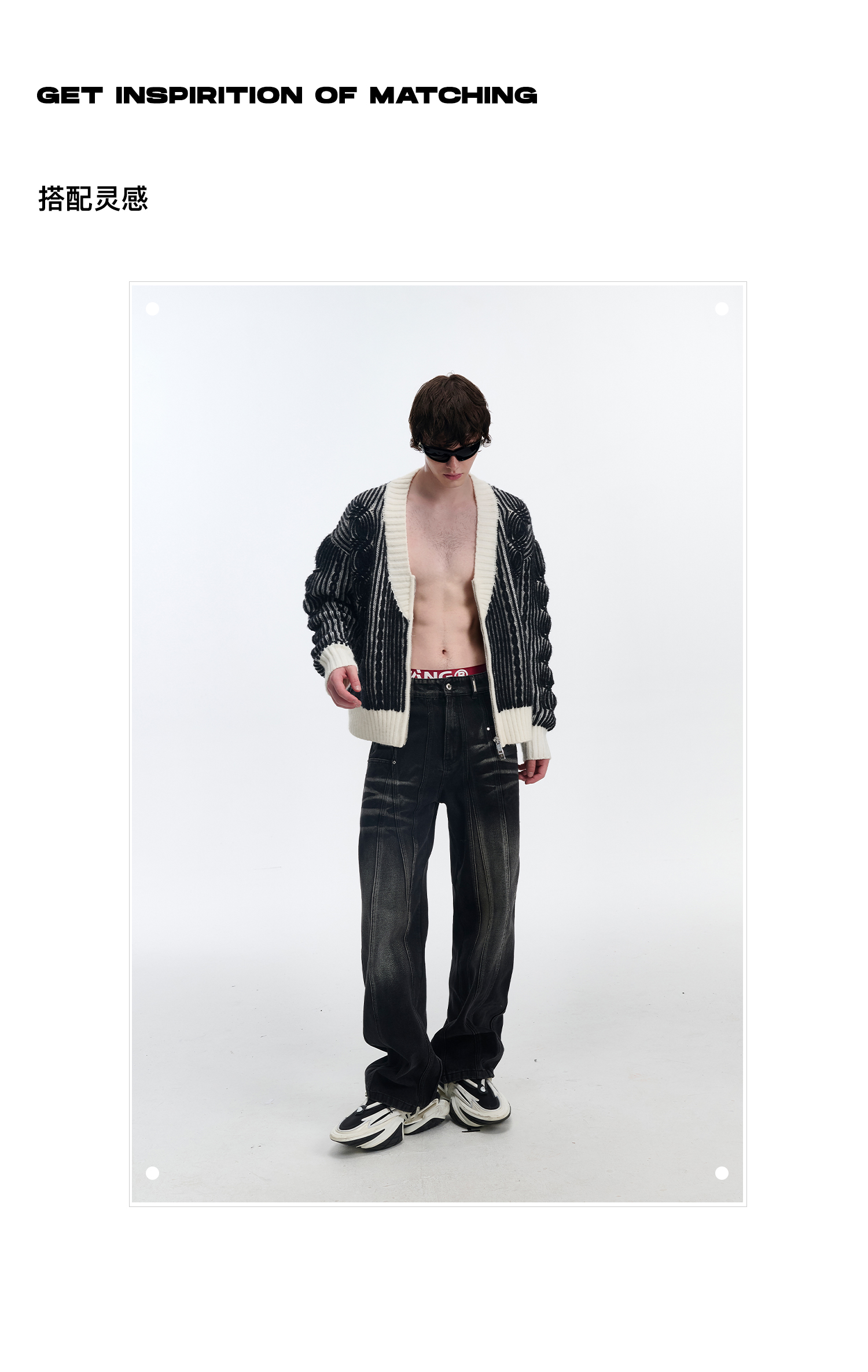 TIWILLTANG启世录“尘埃禁锢”猫须渐变拼接全棉水洗压皱牛仔裤