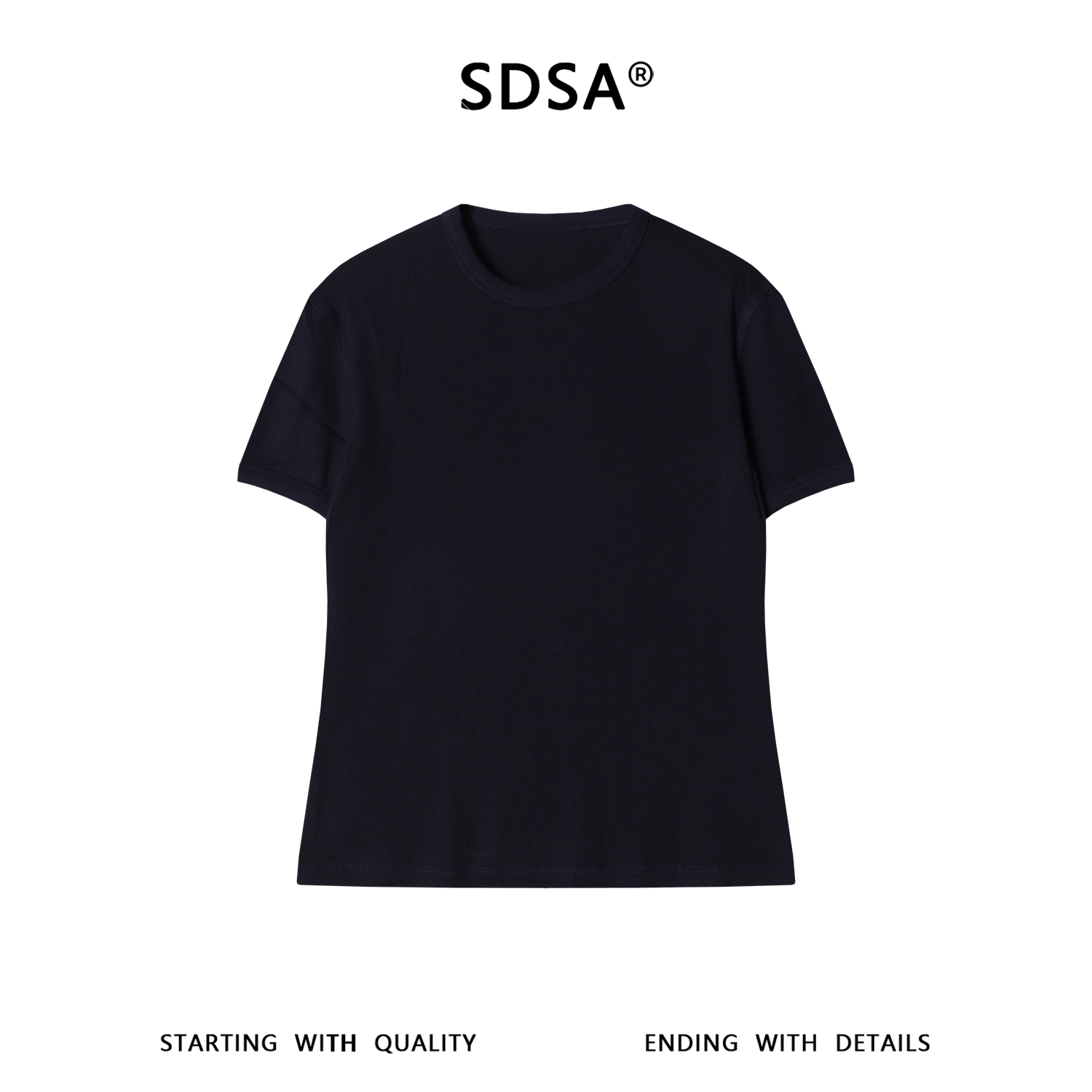 SDSA男装2026新款高贵轻奢潮牌纯色圆领螺纹合身短袖T恤时尚简约
