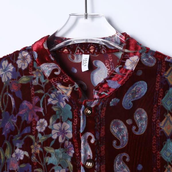 SDSA男士秋冬新款痞帅男装潮牌植绒植绒花卉立领长袖衬衫百搭休闲