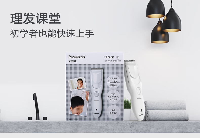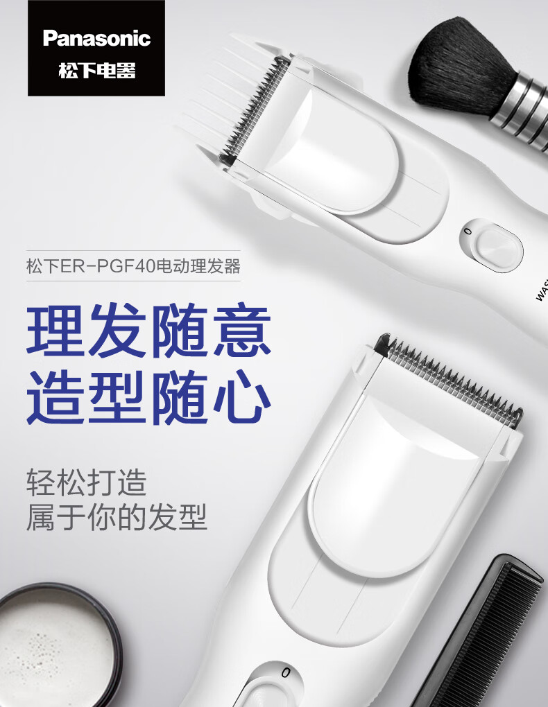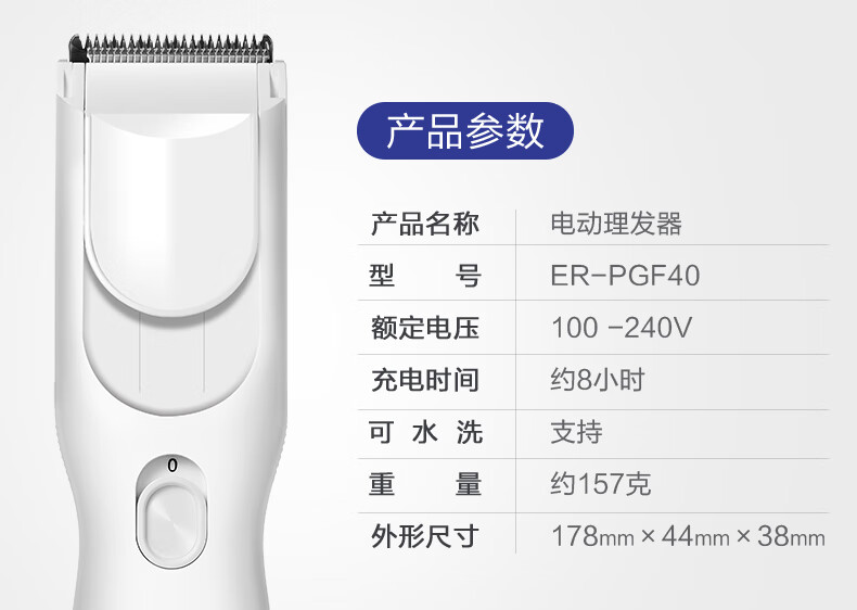 松下(Panasonic) 电推子理发器成人剃发器充电式理发器电动剃头器PGF40 ER-PGF40W405 白色