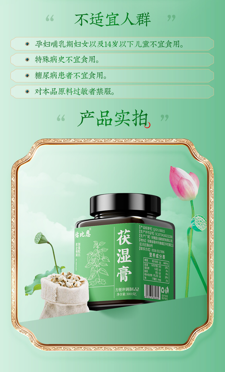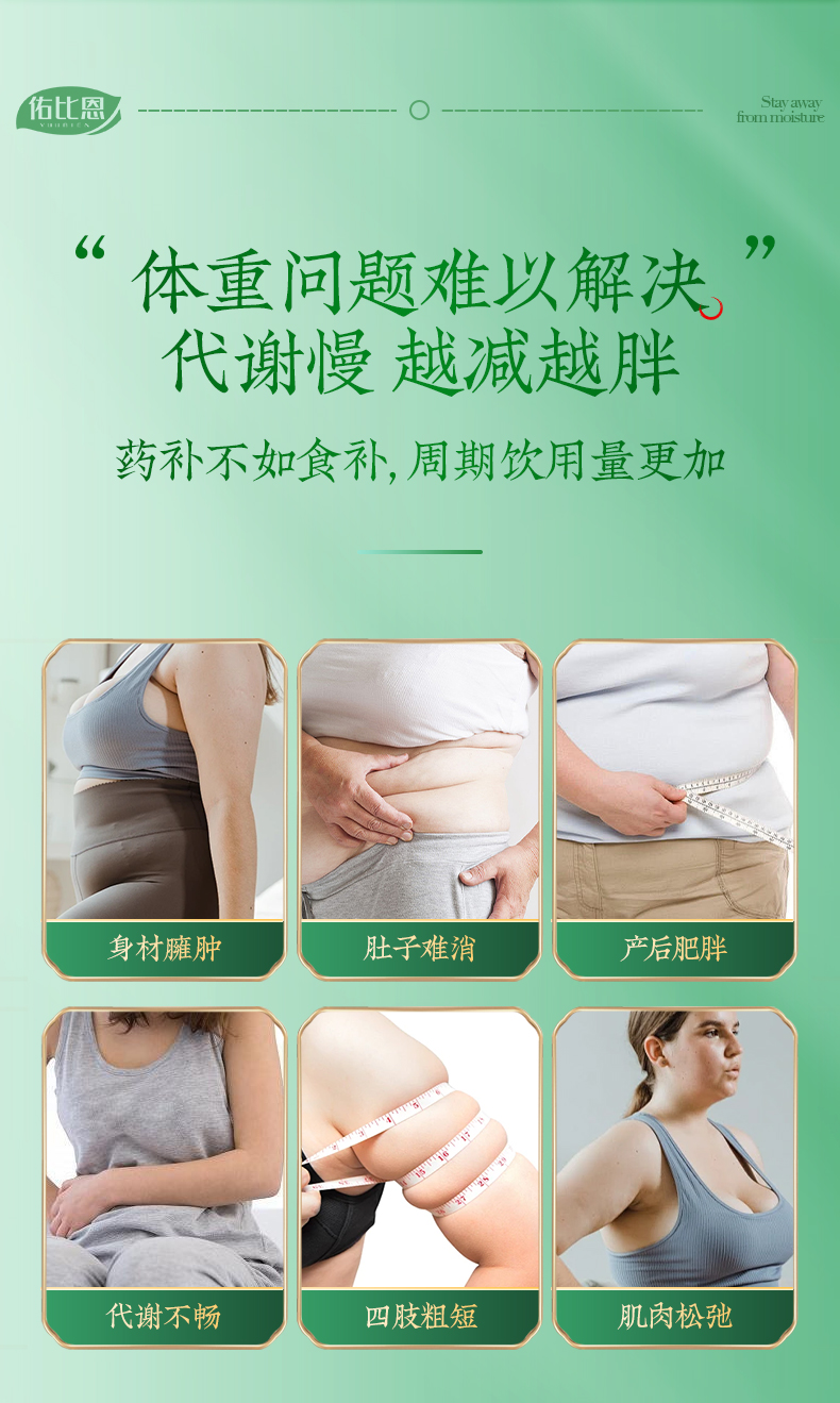 佑比恩茯湿膏可以帮助人们减轻体重,尤其是对于腹部性肥胖的人群来说,有着比较明显的功效,因为里面特别添加了薏苡仁,红豆,茯苓,山药,莲子,甘草,芡实。通过使用本品可以加速人体的代谢,同时能够清除身体里面多余的湿气和寒气,就能够让肌肤变得紧致,并且能够加速脂肪的燃烧和消耗。