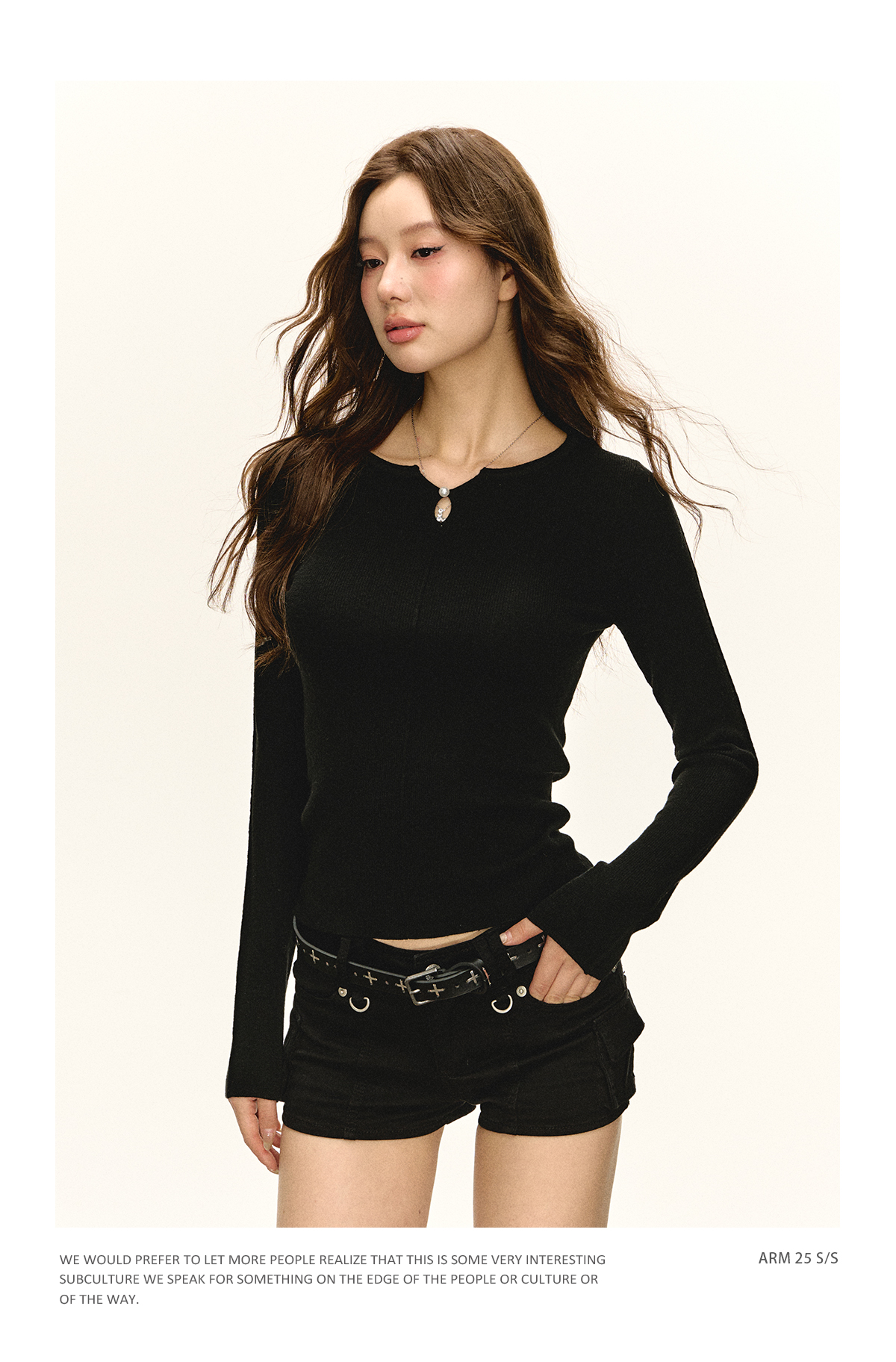 Ariseism 美式复古设计感毛针织衫女秋季新款辣妹修身上衣
