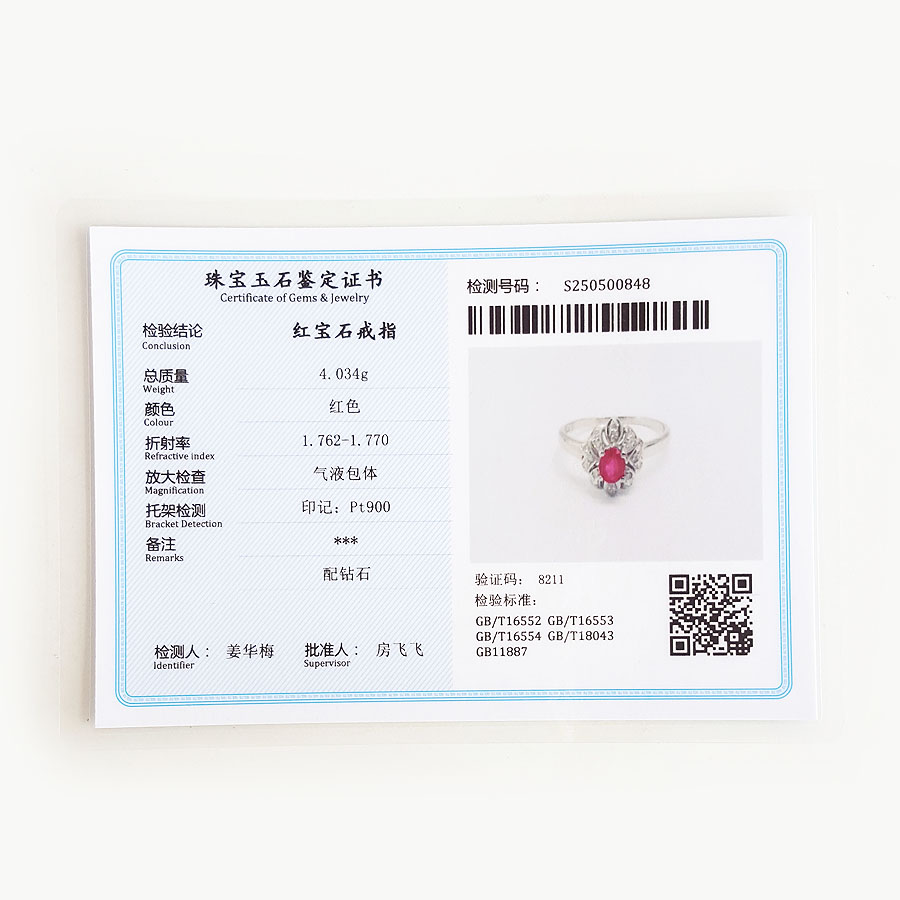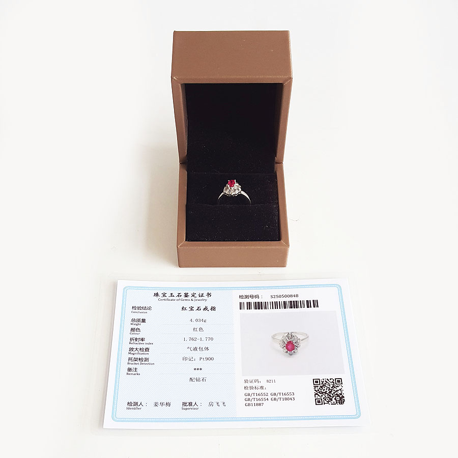 名称 | PT900铂金镶钻镶天然近50分红宝石(热情、忠诚)戒指 |