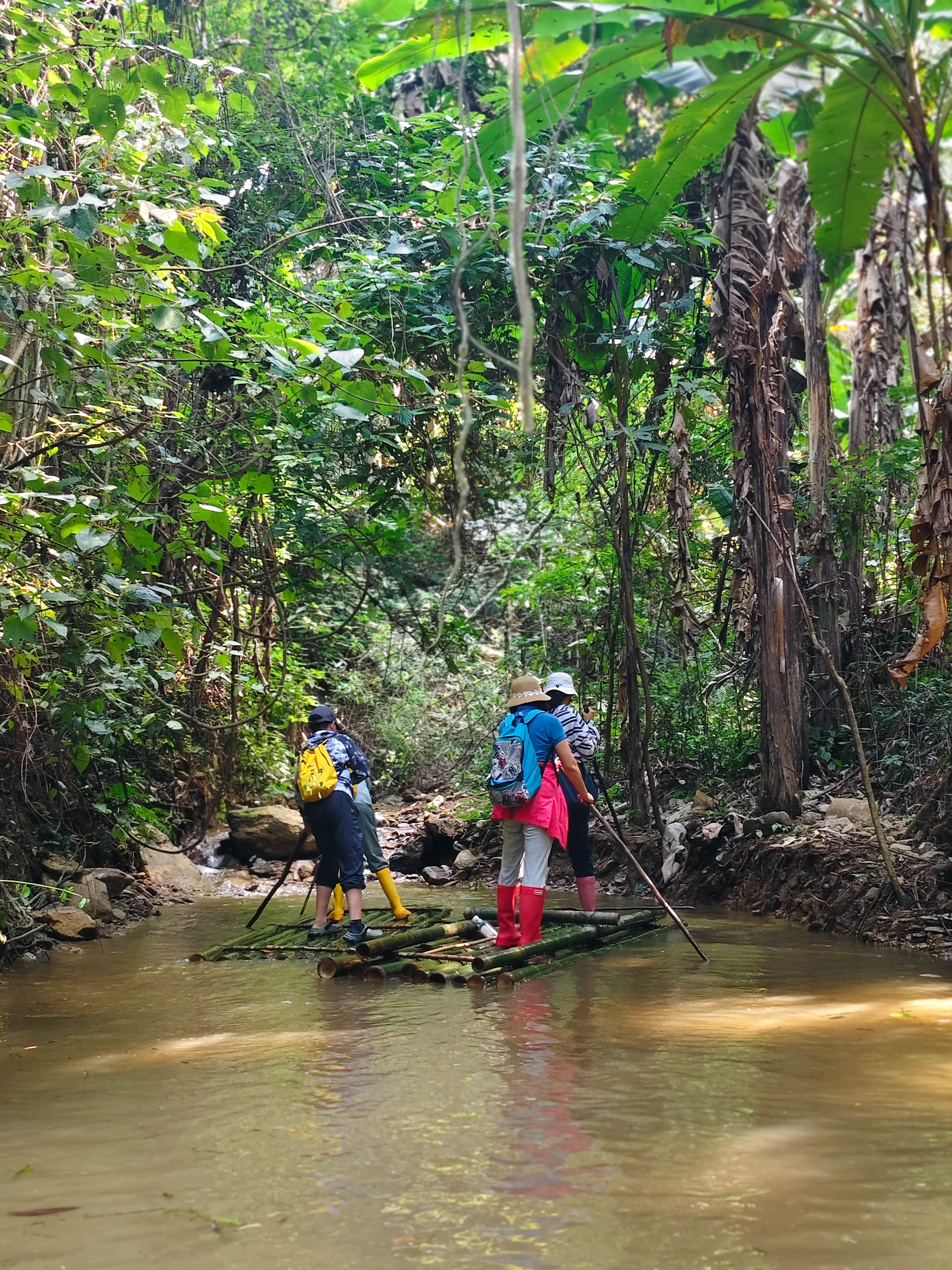 景哈乡哈尼族帕瓦老寨雨林徒步(傣族园附近)距景洪市区45公里,车程约一小时。线路全长5公里,水路占比70%。行程早上8-9点景洪市区酒店接,活动全程5小时左右!