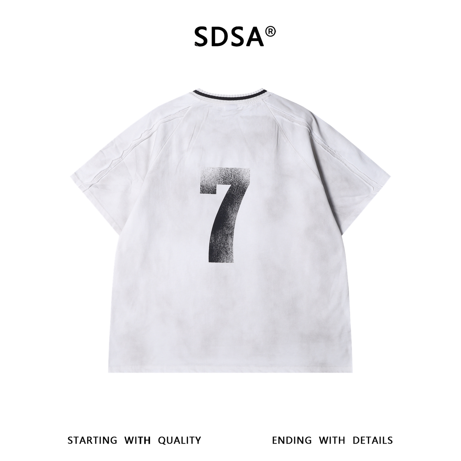 SDSA男装2026新款轻奢美式简约喷染数字印花拼接圆领短袖T恤百搭