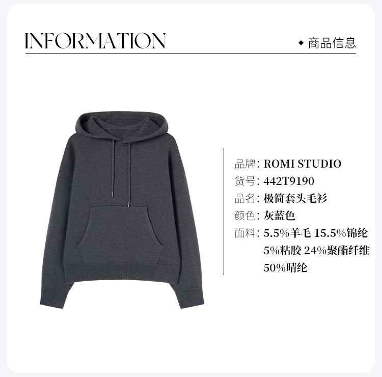 ROMI STUDIO“ChillVibe” 绵羊毛混纺高克重宽松连帽卫衣 442T9190