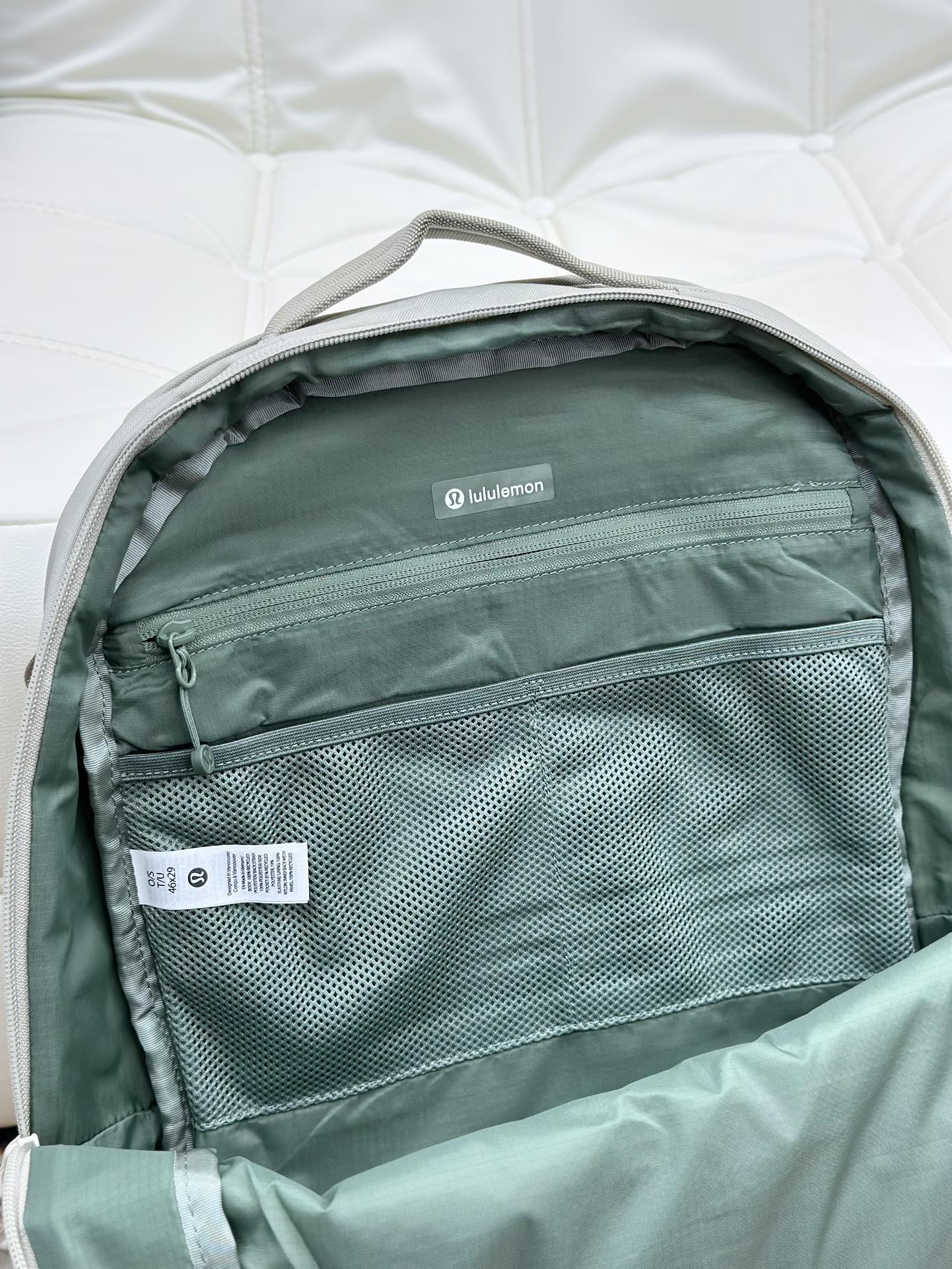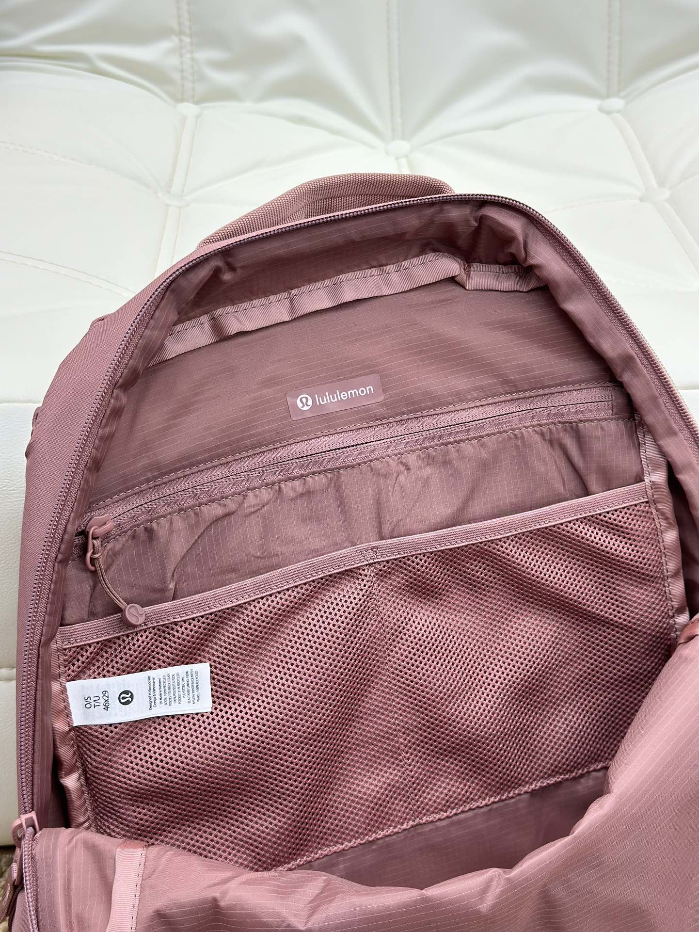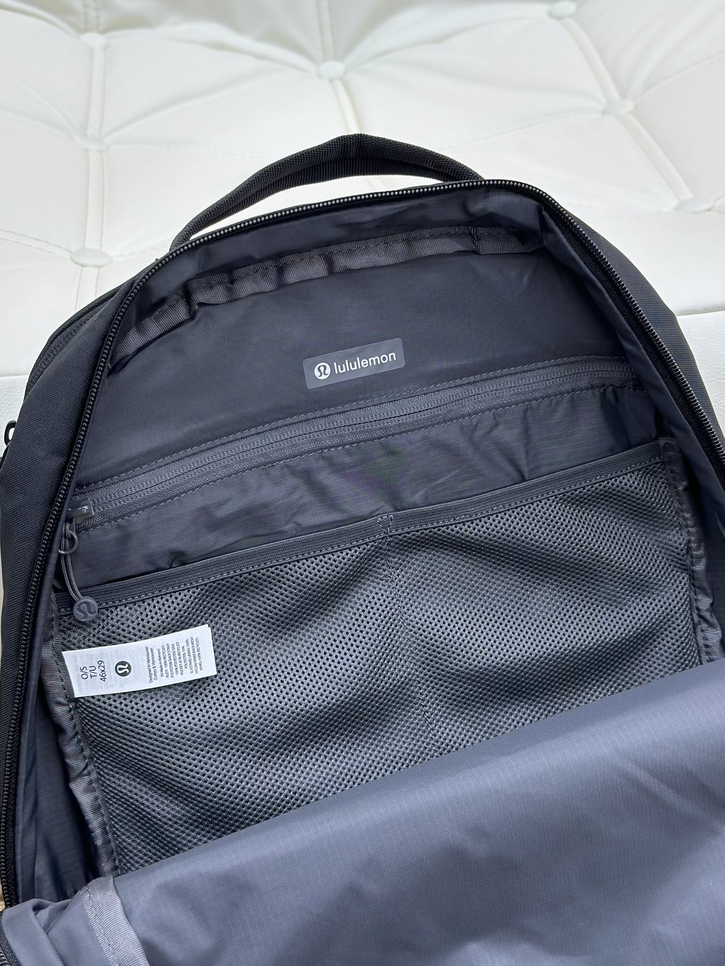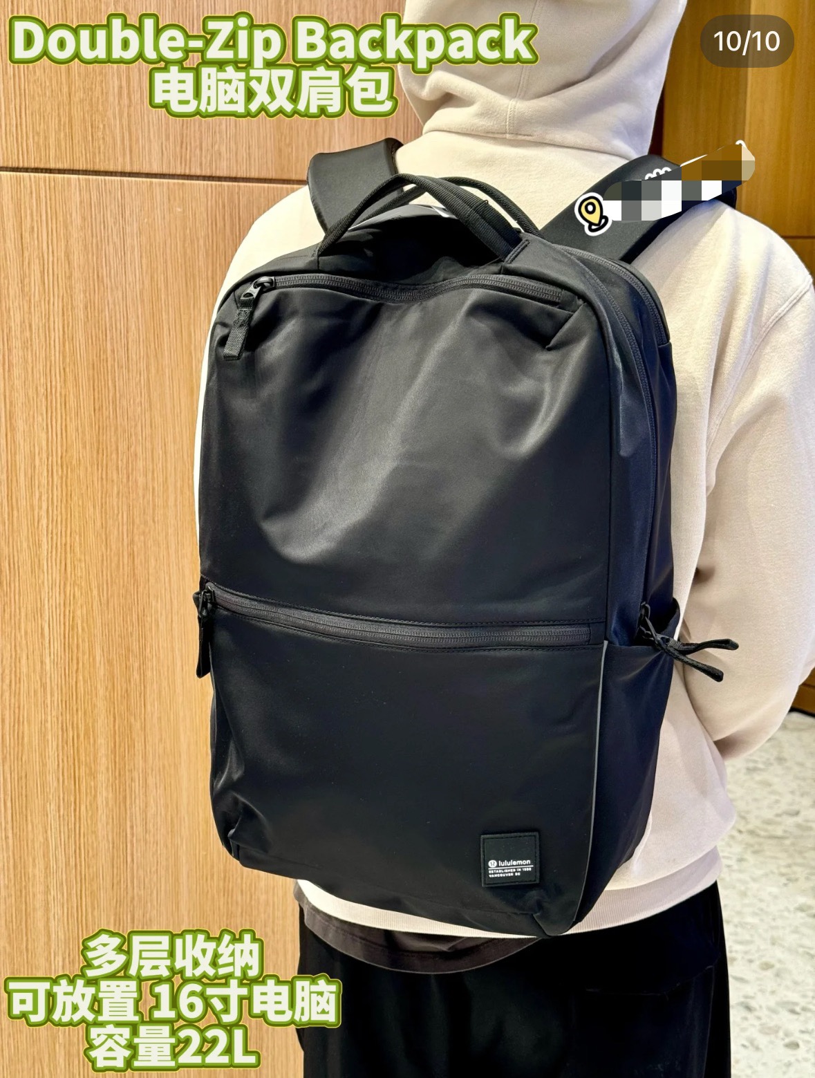lulu新款Double-Zip 双肩包 Lulu -Zip 双拉链背包22L 收拾行囊,整装上路,这款背包可满足你繁忙日程中的收纳所需 精心设计多种口袋,方便取放笔记本电脑和水瓶,顶部双提手设计,主隔层开合更加便利外侧拉链口袋 内侧口袋,存放必需品 杆套设计,可固定于行李箱拉杆 尺寸:29*15*46 容量:22L