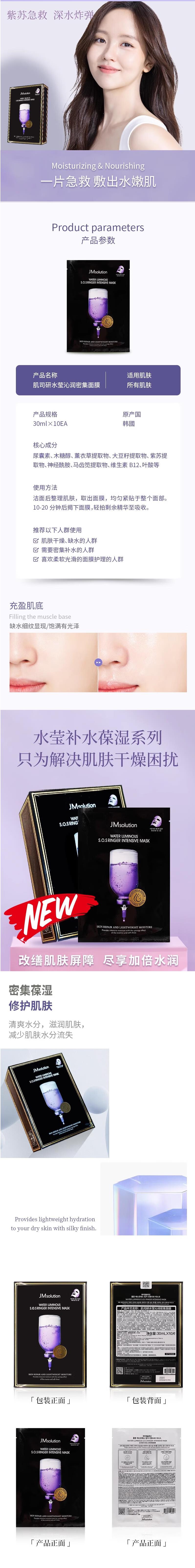 JM肌司研水莹沁润密集面膜10片装