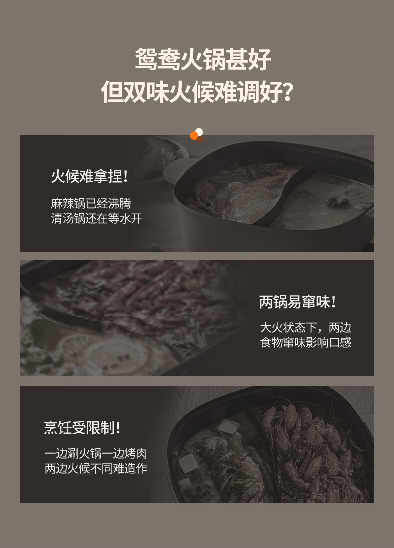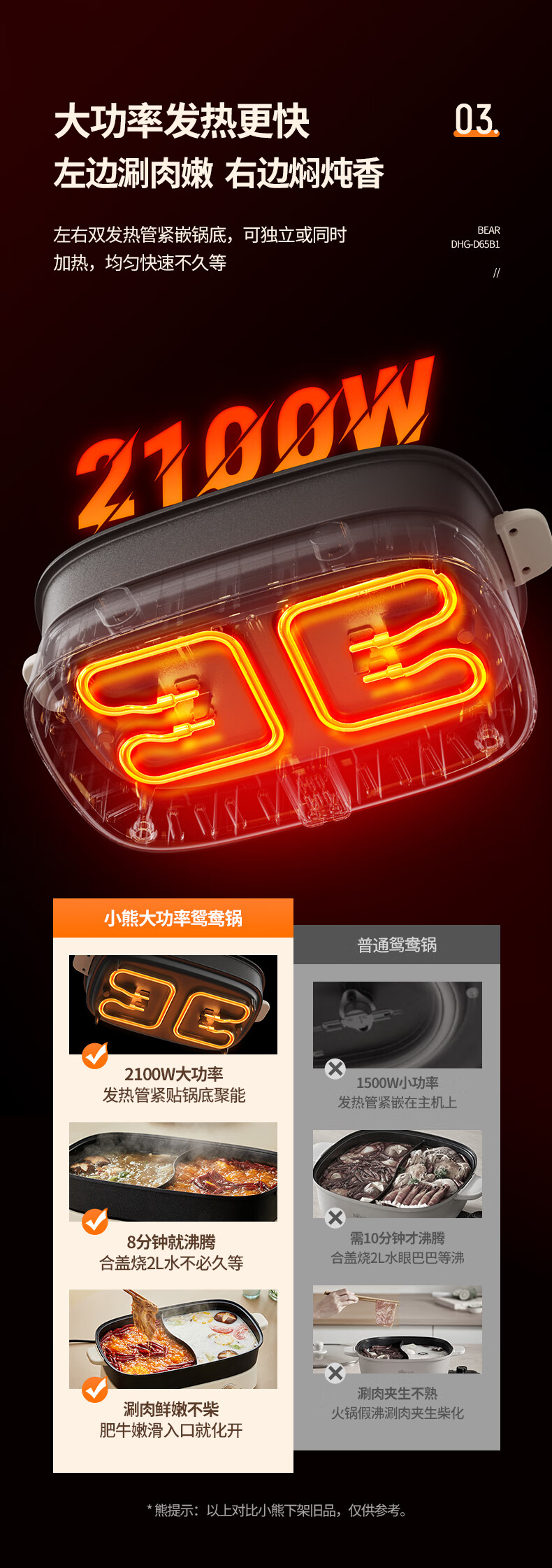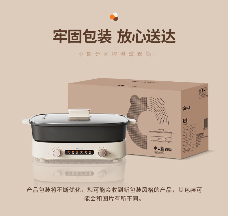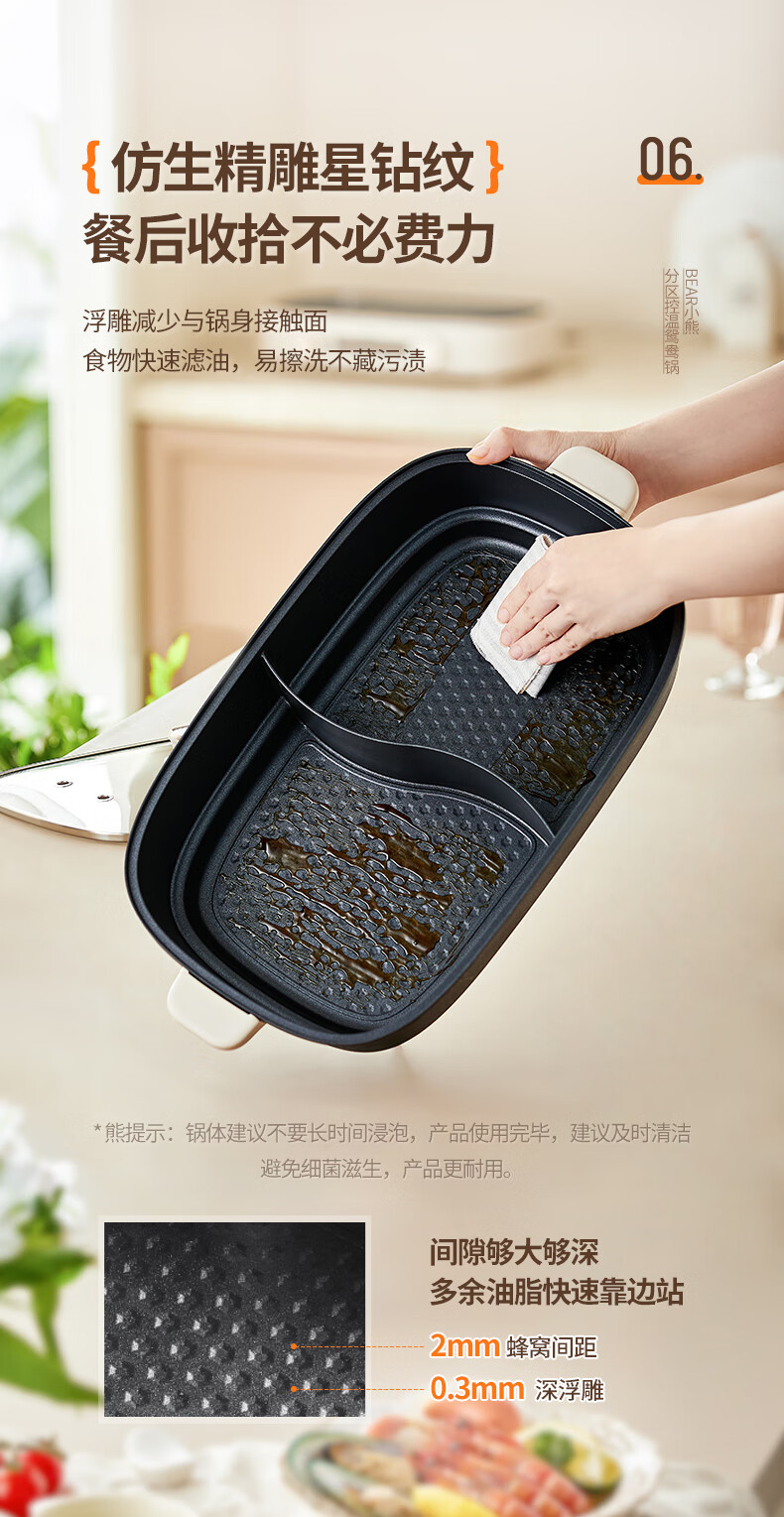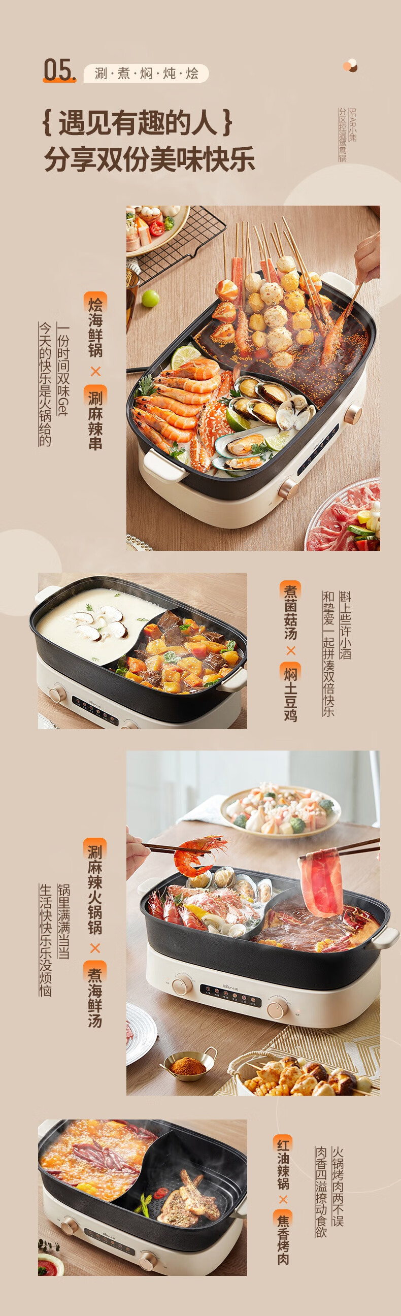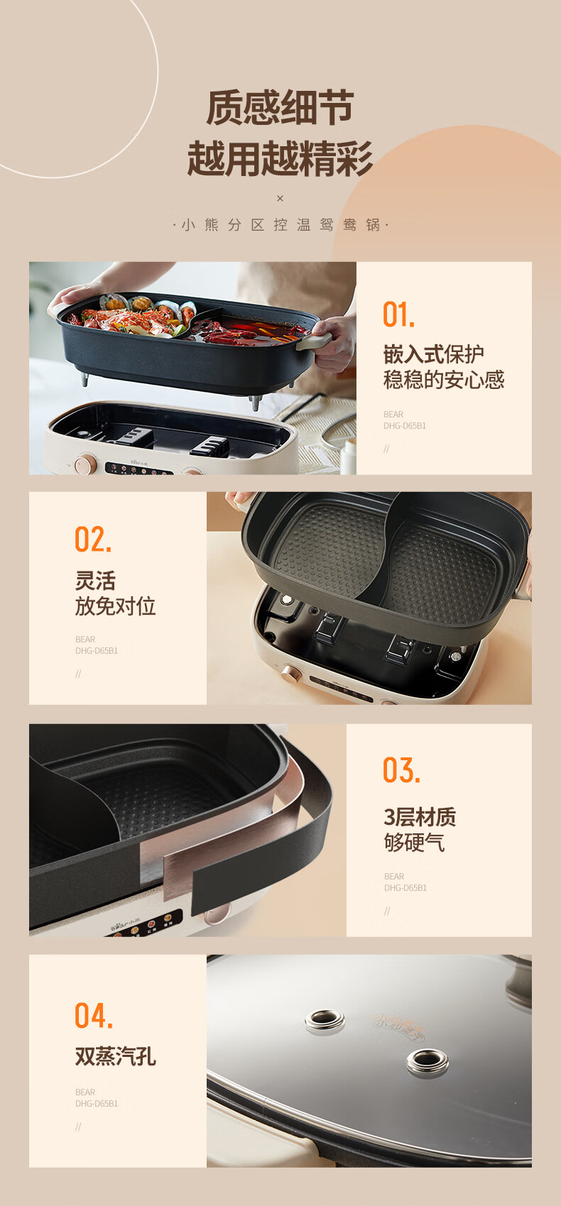 小熊(Bear)电火锅 双旋钮鸳鸯锅独立控温 多功能锅 6.5L大容量分体式家用电煮锅火锅锅多用途锅 DHG-D65B1