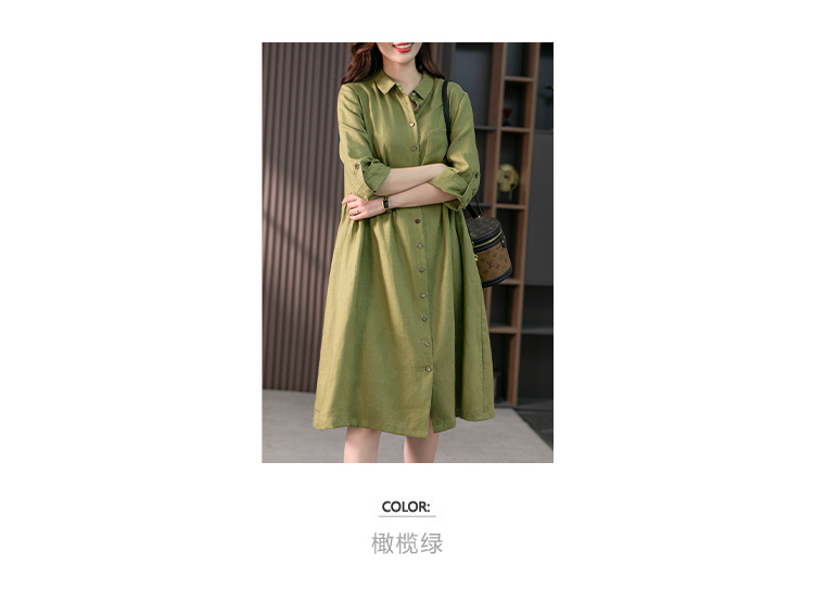 87034原形优雅法式亚麻衬衫裙女设计感小众2024春夏新款通勤显瘦连衣裙