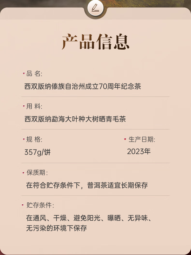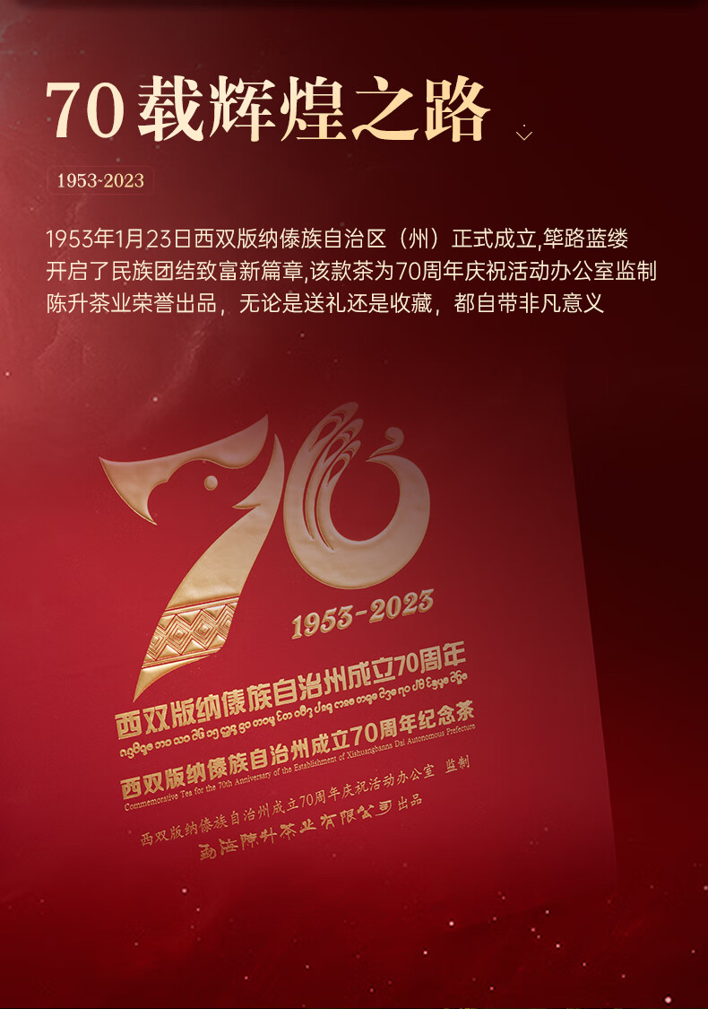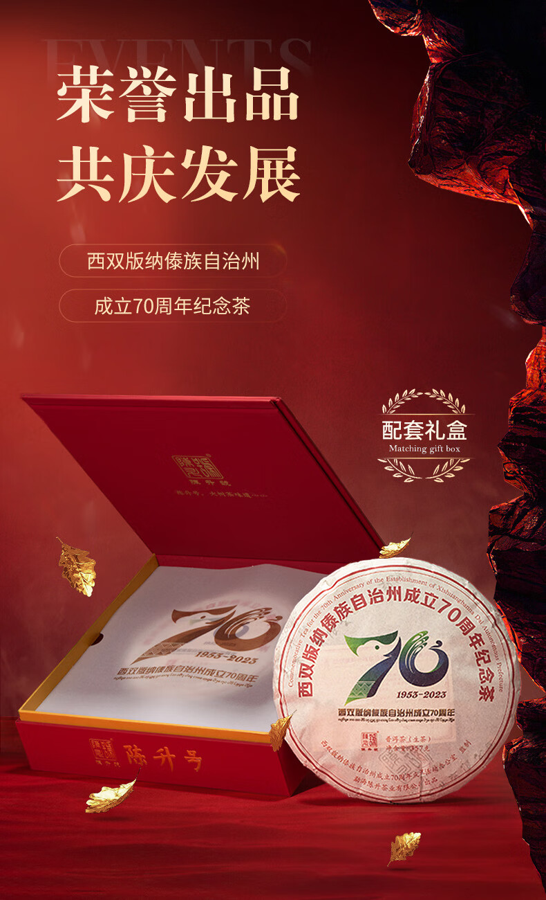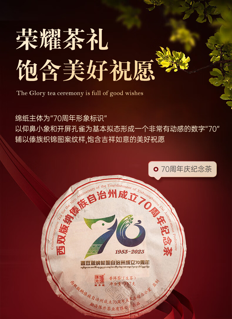 陈升号2023年西双版纳傣族自治州成立70周年纪念茶357g(生茶)