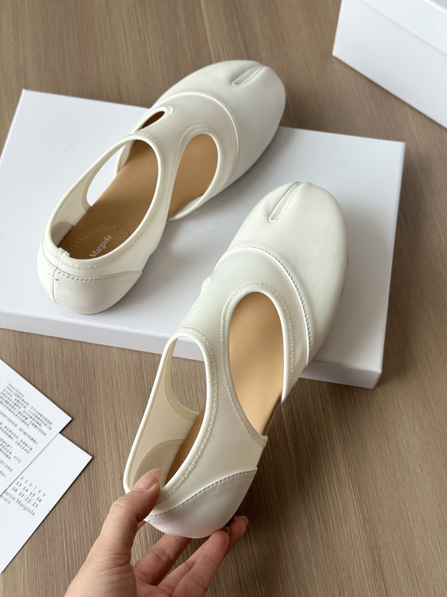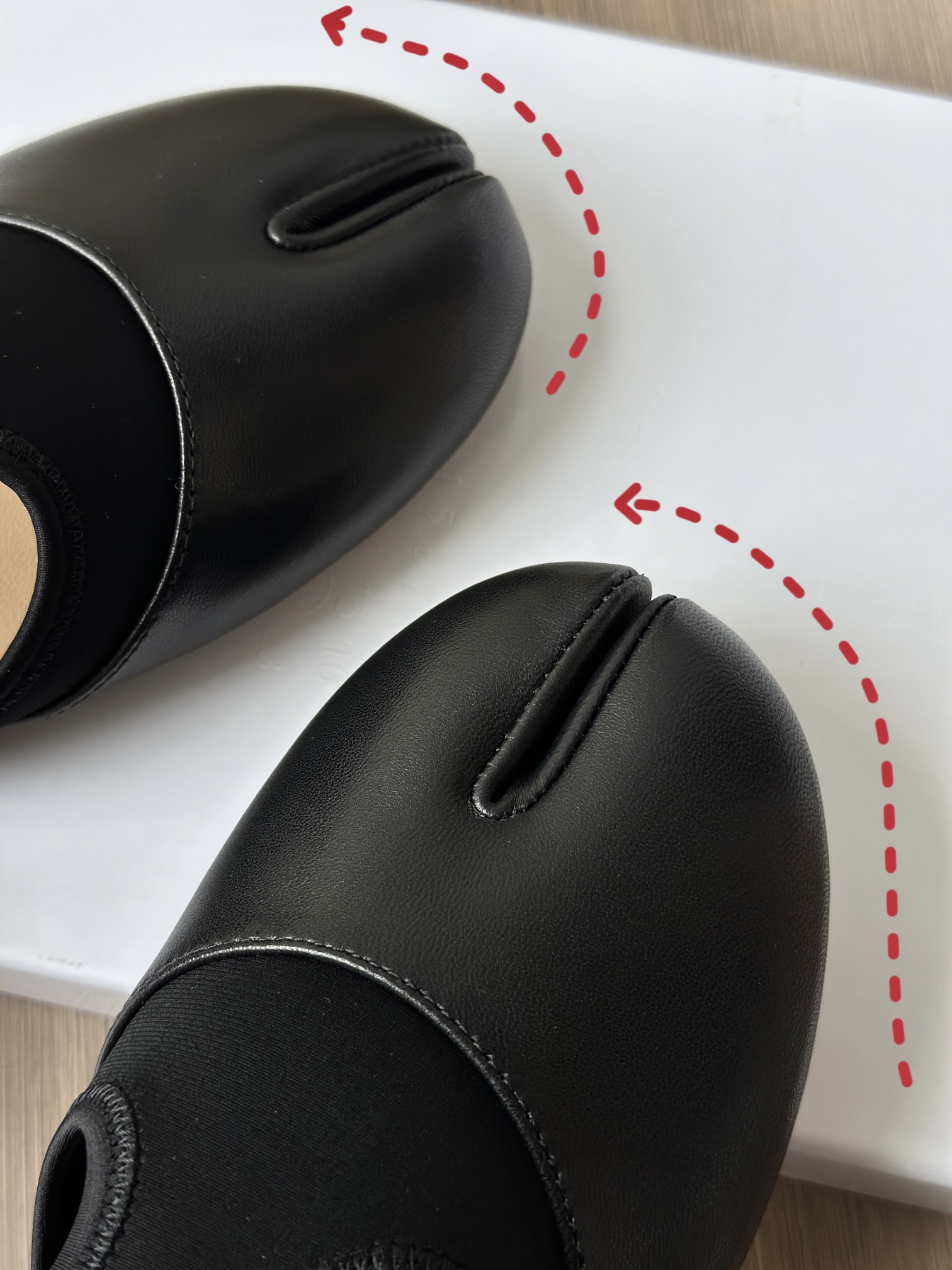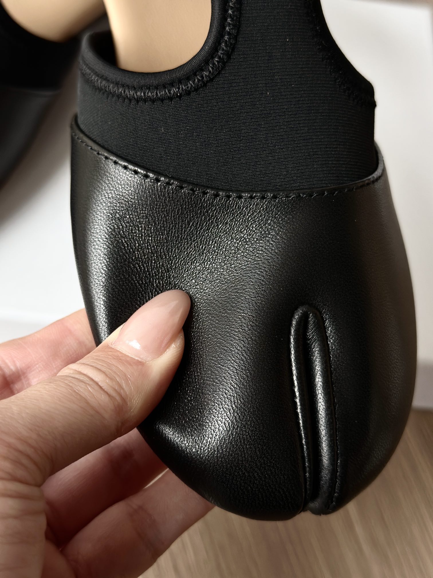 你们如果看到市面上出这双鞋子的可以细细对比一下,这种分趾鞋的鞋子最考究的就是鞋型,鞋型一定要有线条,有弧度,这种鞋子,不止皮料,鞋型特别重要