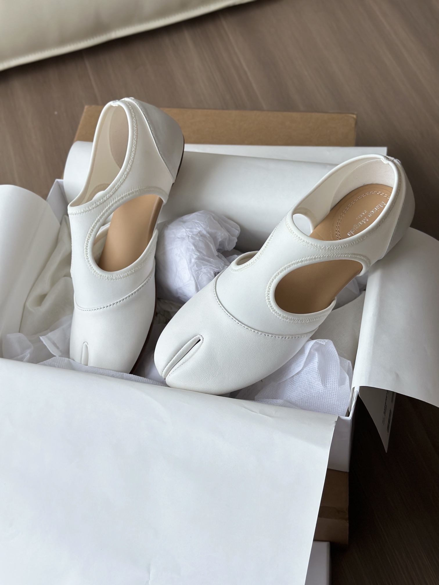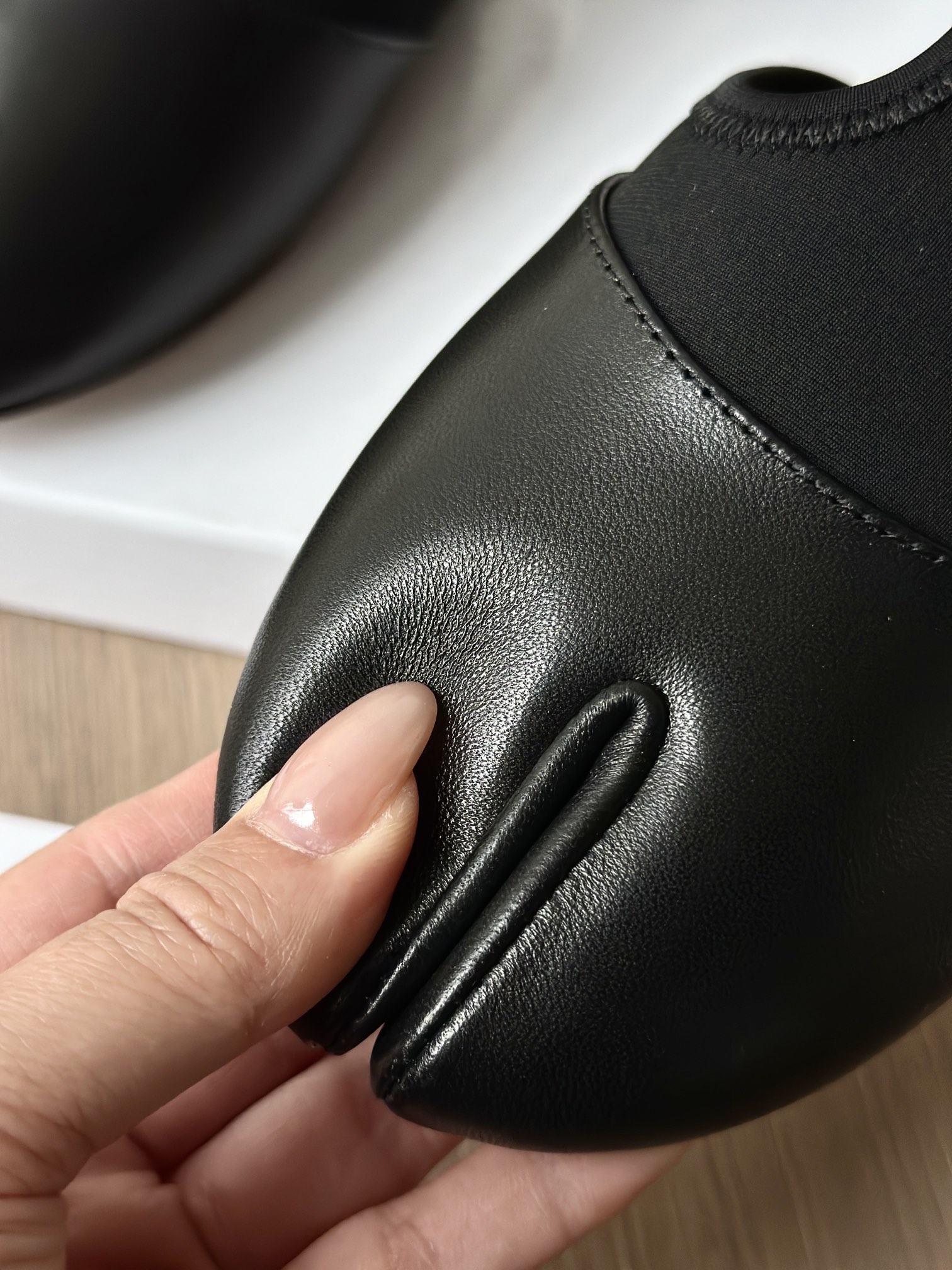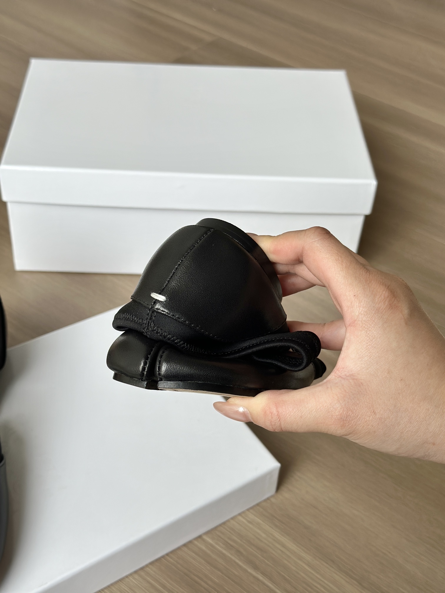 你们如果看到市面上出这双鞋子的可以细细对比一下,这种分趾鞋的鞋子最考究的就是鞋型,鞋型一定要有线条,有弧度,这种鞋子,不止皮料,鞋型特别重要