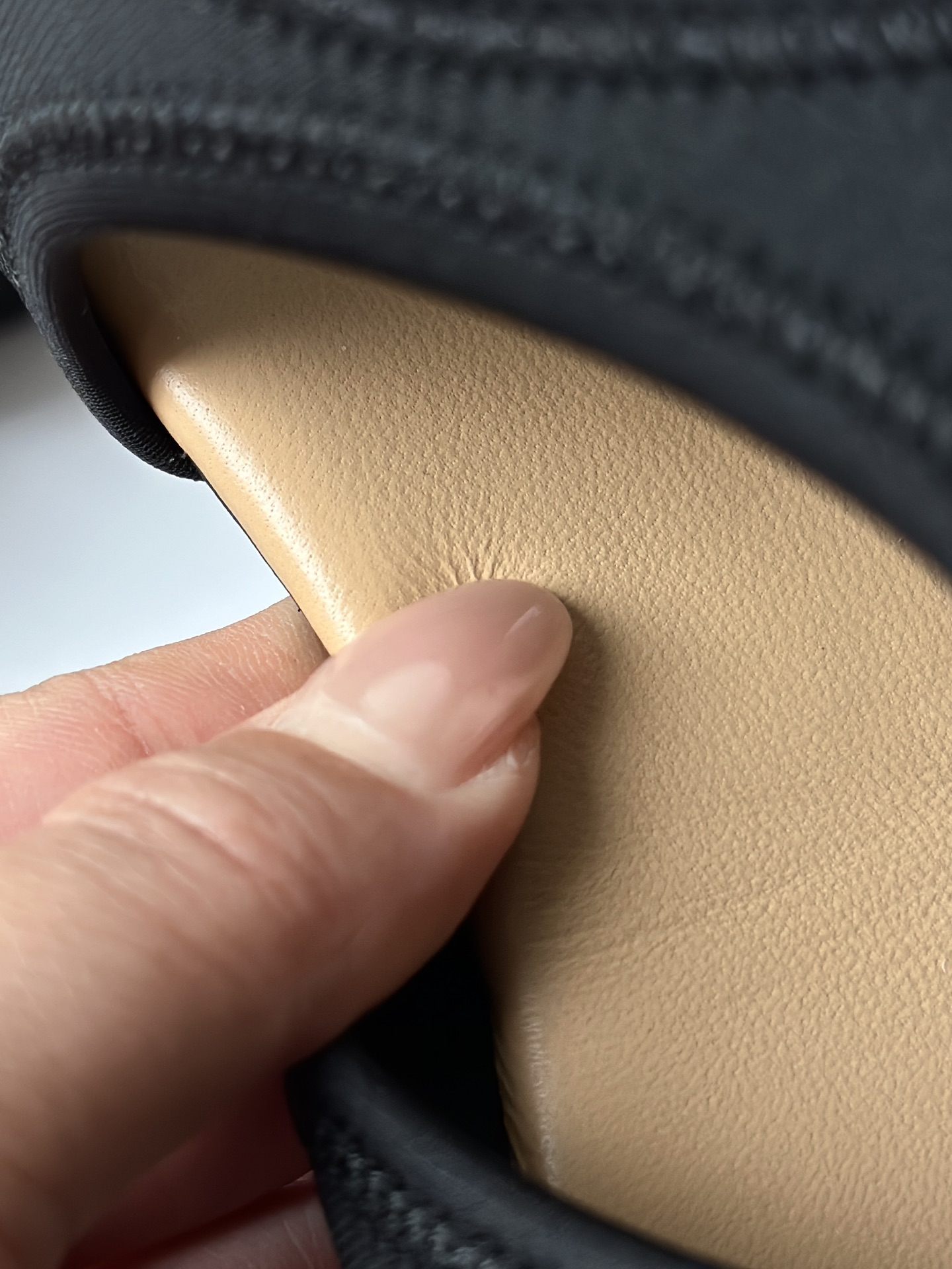 进口绵羊皮鞋面,记住是这个质感❗️ 肉眼可见的软!! 市面你很难看到同价格有这种品质的东西! 羊皮非常软且很细腻!将奢华感演绎的恰到好处