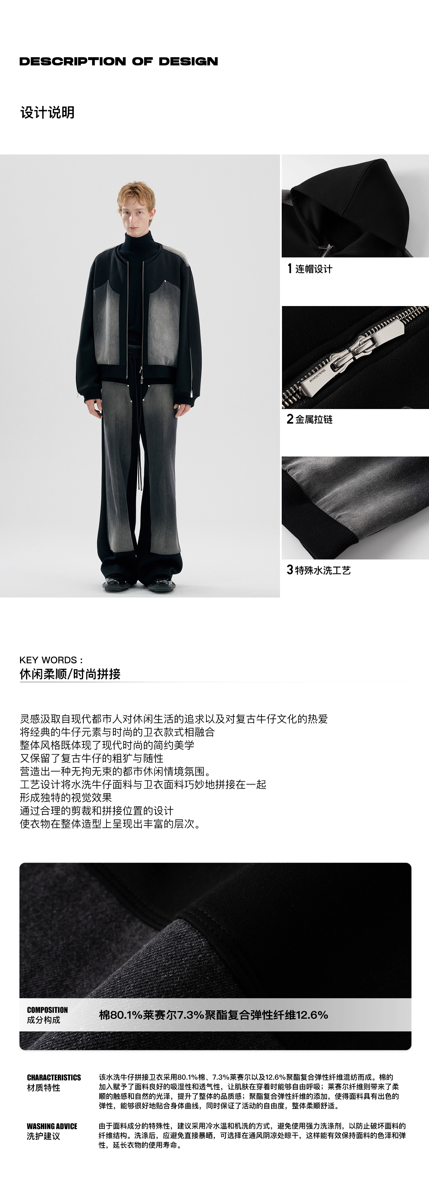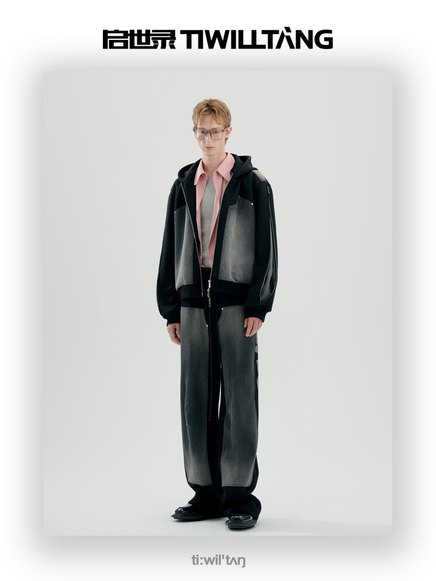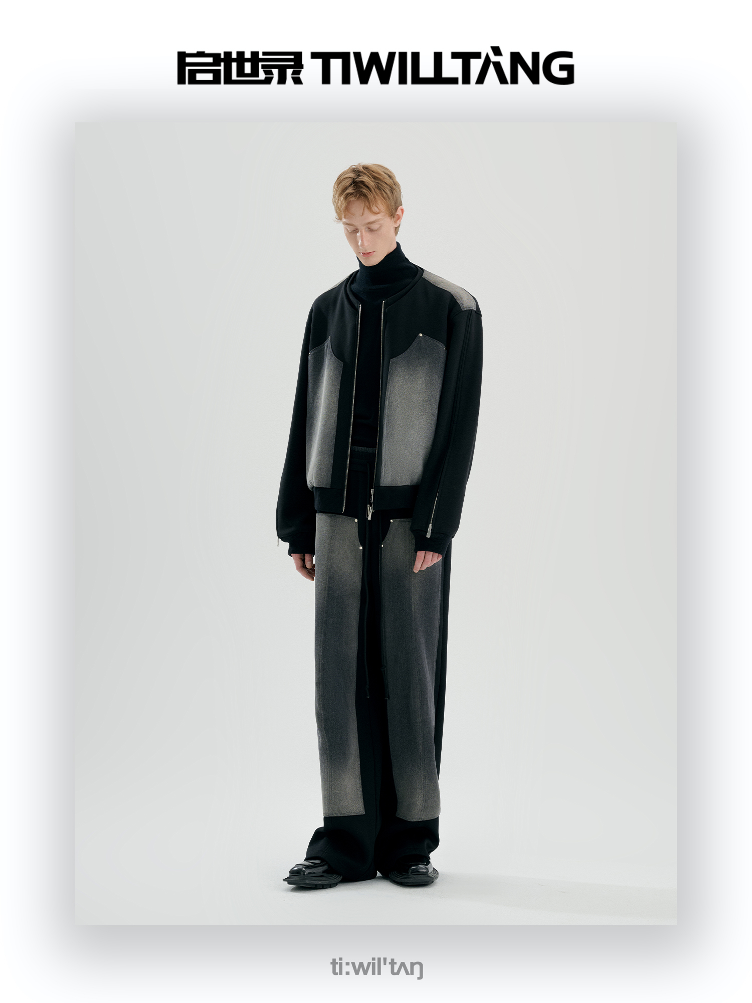 启世录TIWILLTANG“暮玥洇钰”水洗牛仔拼接卫衣套装