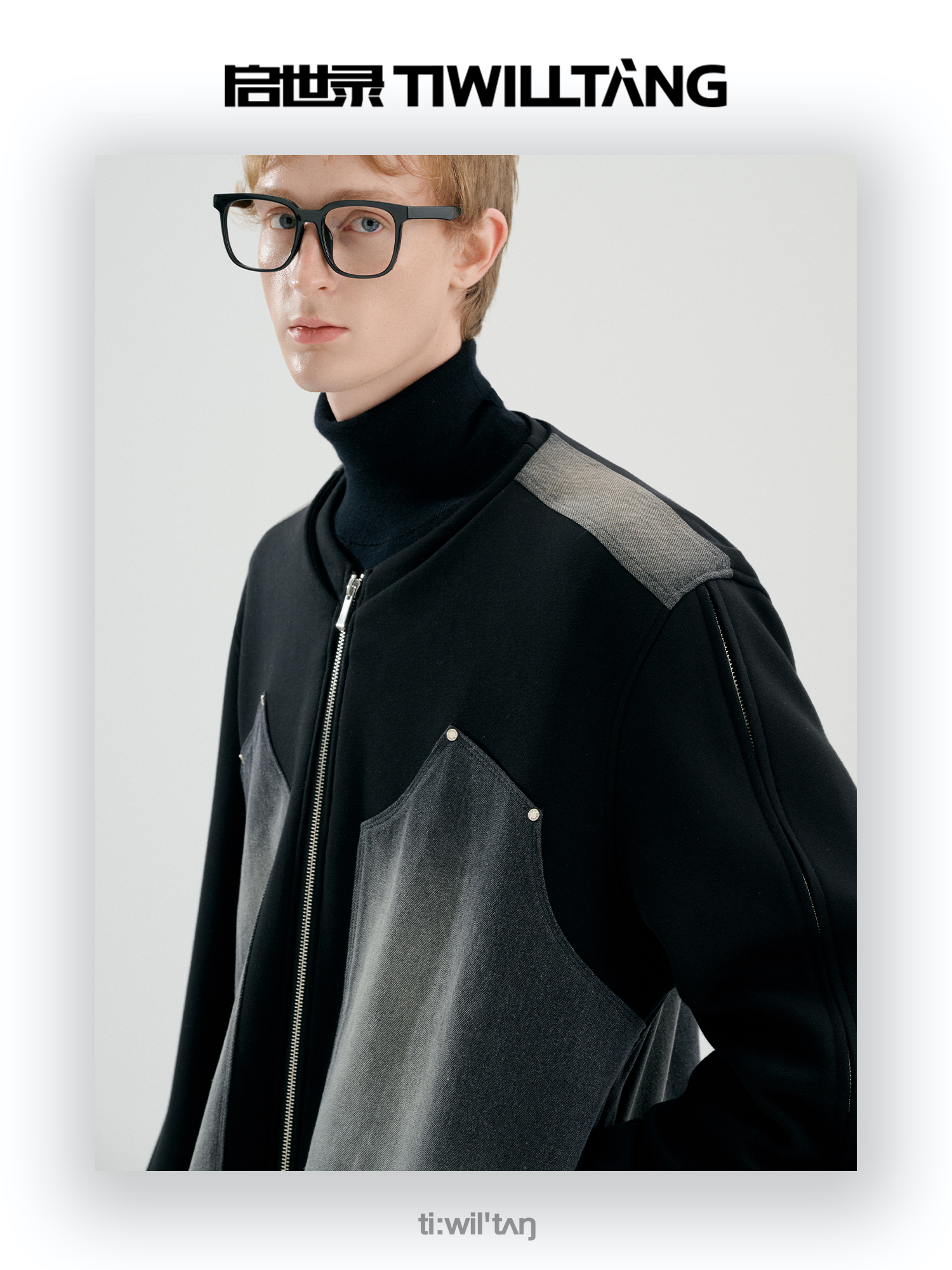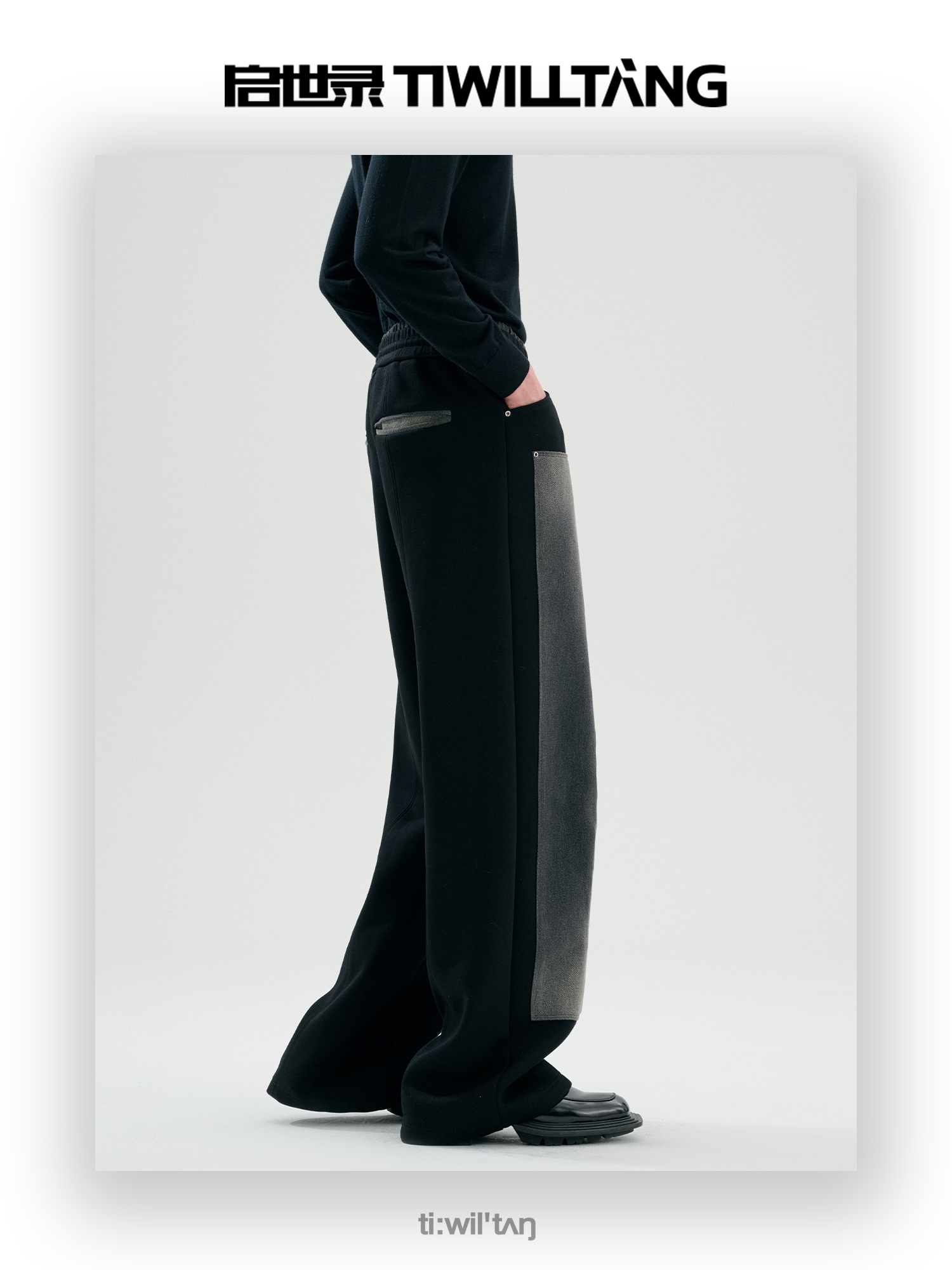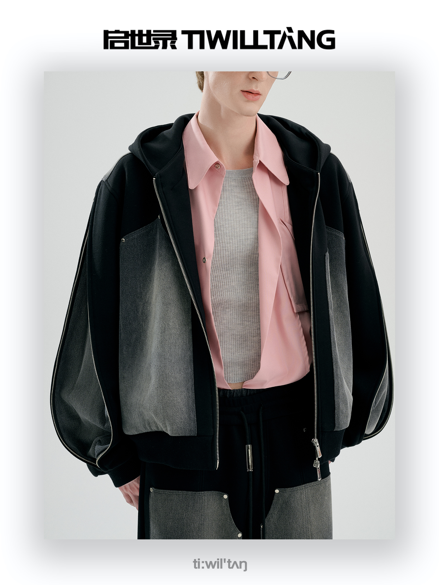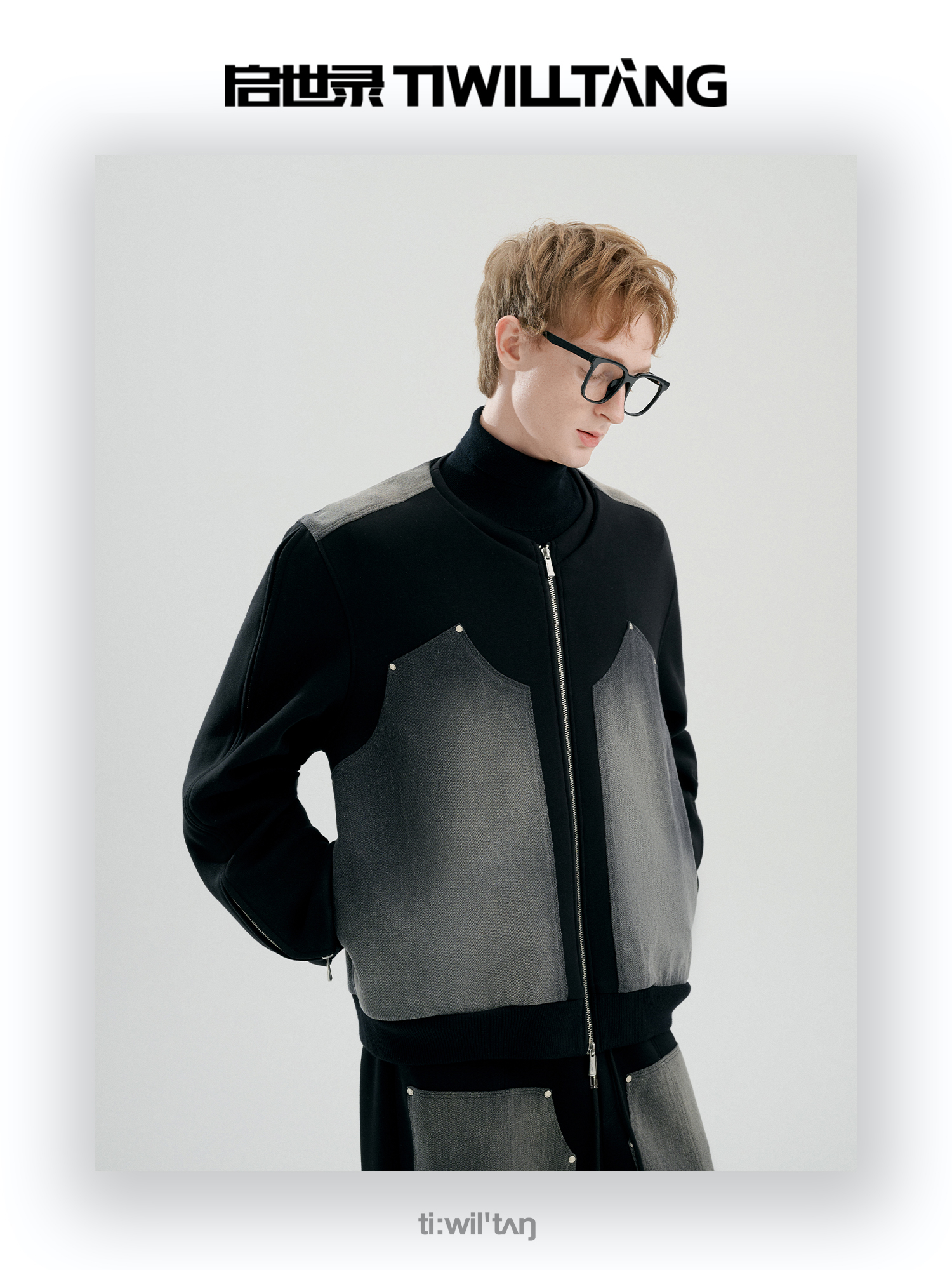 启世录TIWILLTANG“暮玥洇钰”水洗牛仔拼接卫衣套装