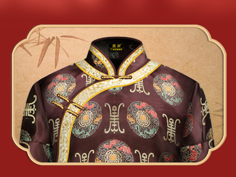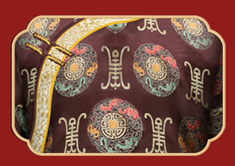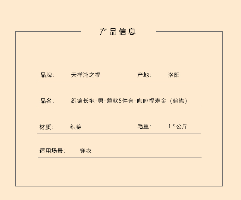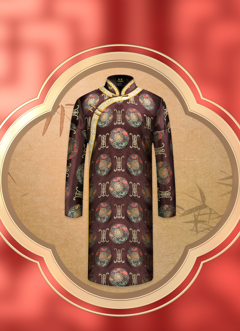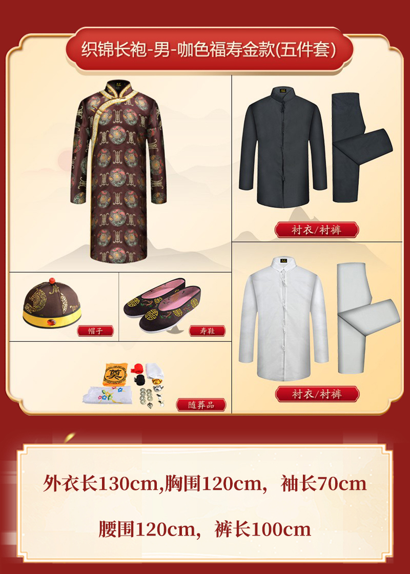 男士织锦长袍咖啡福寿金(偏襟)薄款5件套寿衣寿服套装
