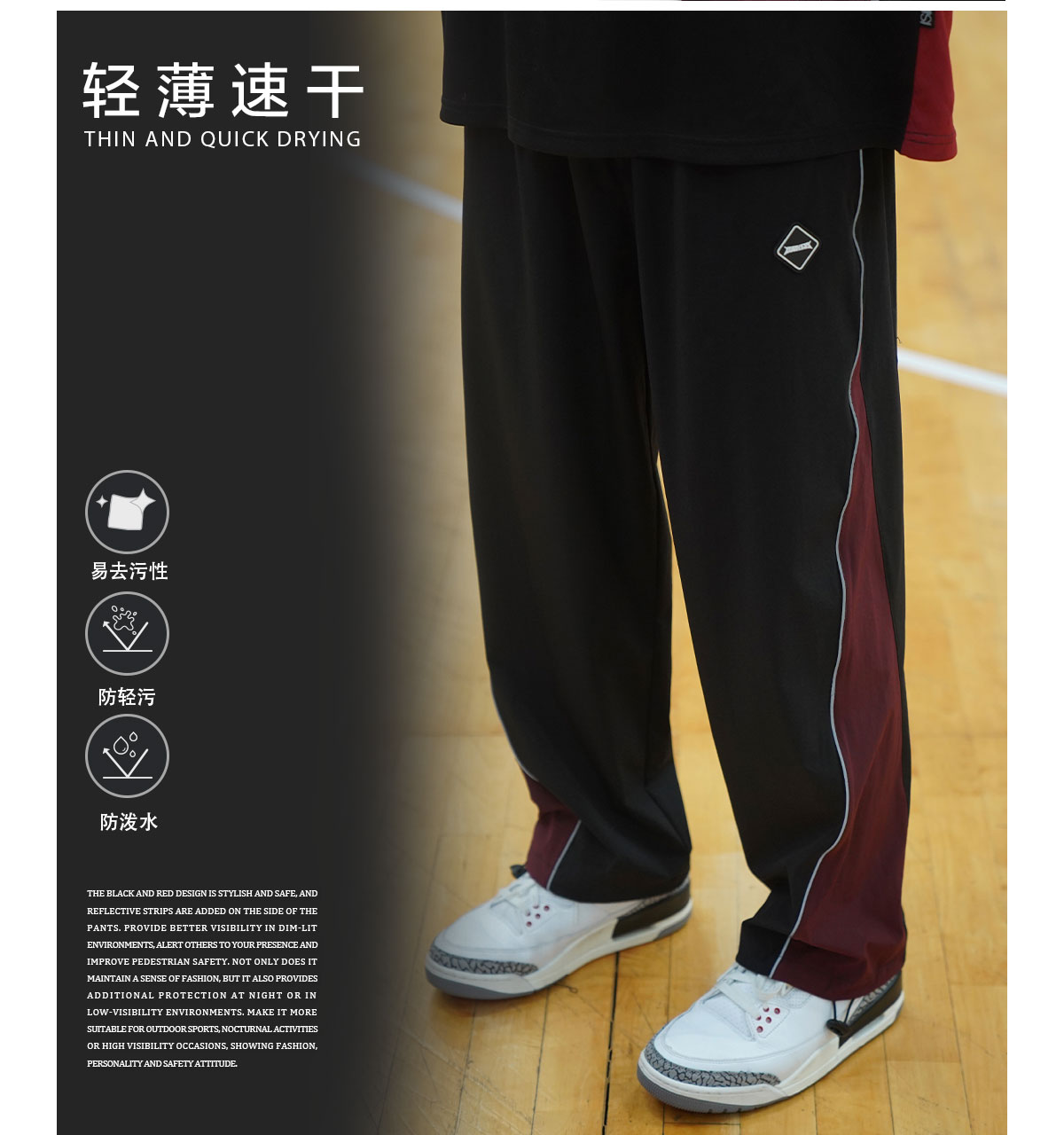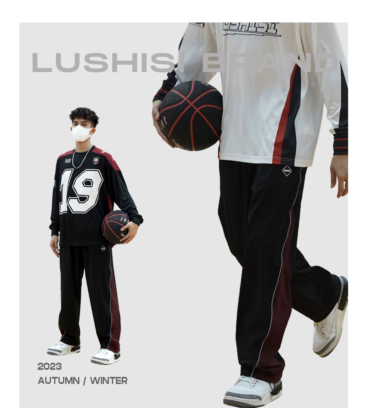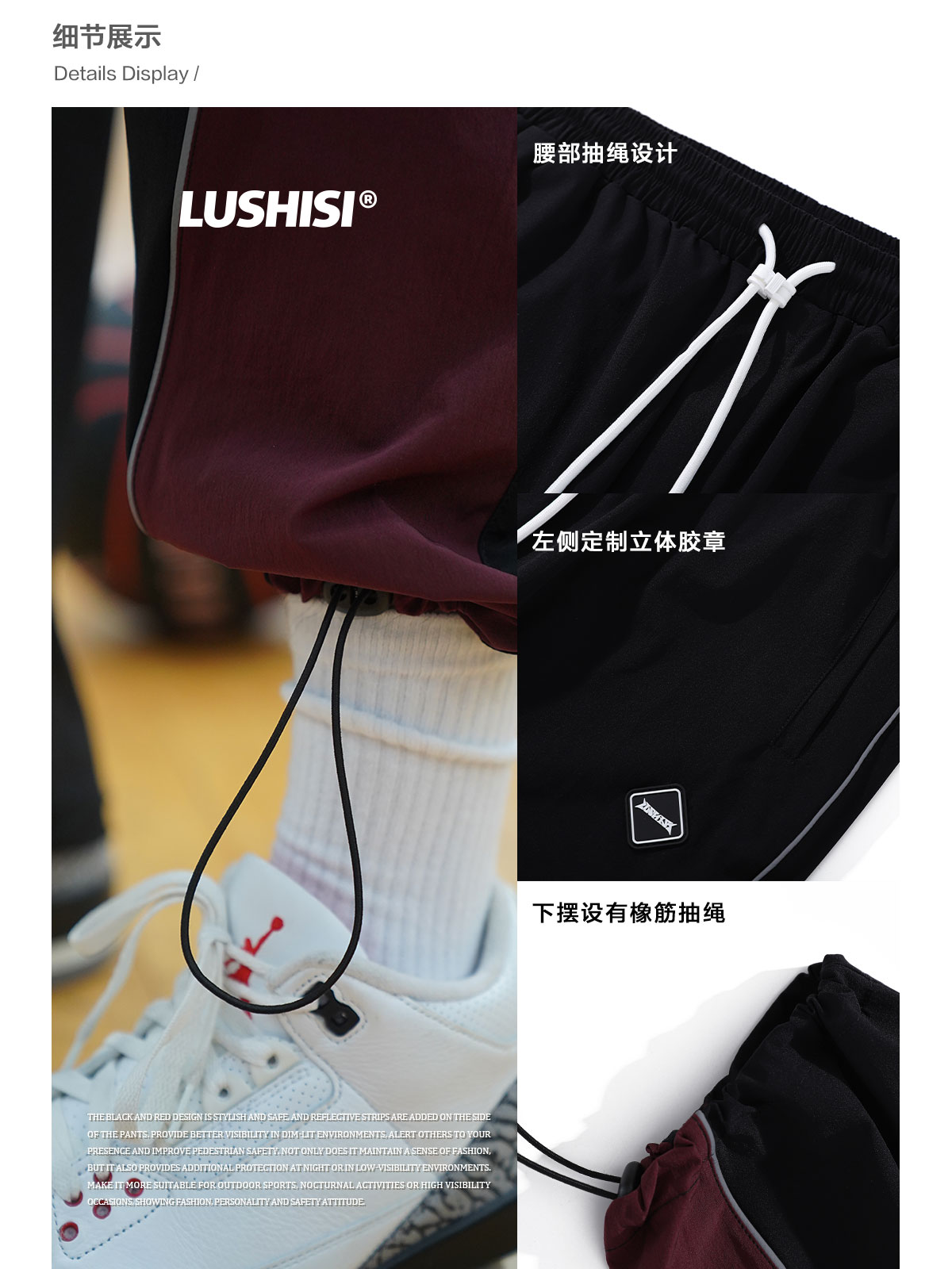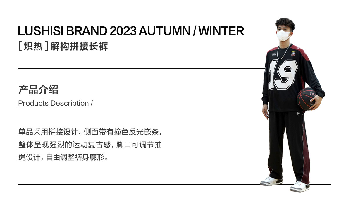 LUSHISI秋冬训练篮球跑步炽热拼接主题运动长裤薄拼色设计抽绳裤