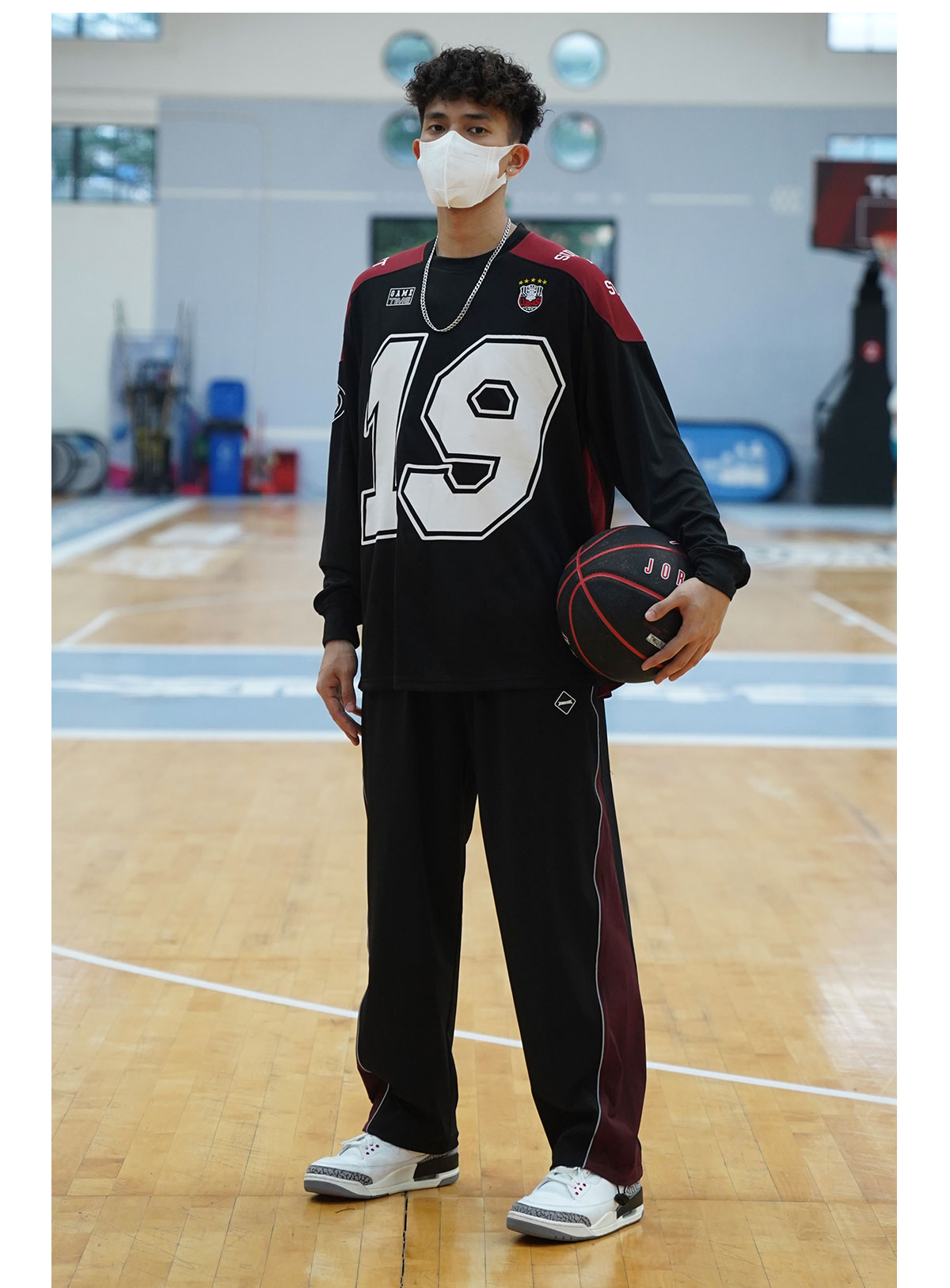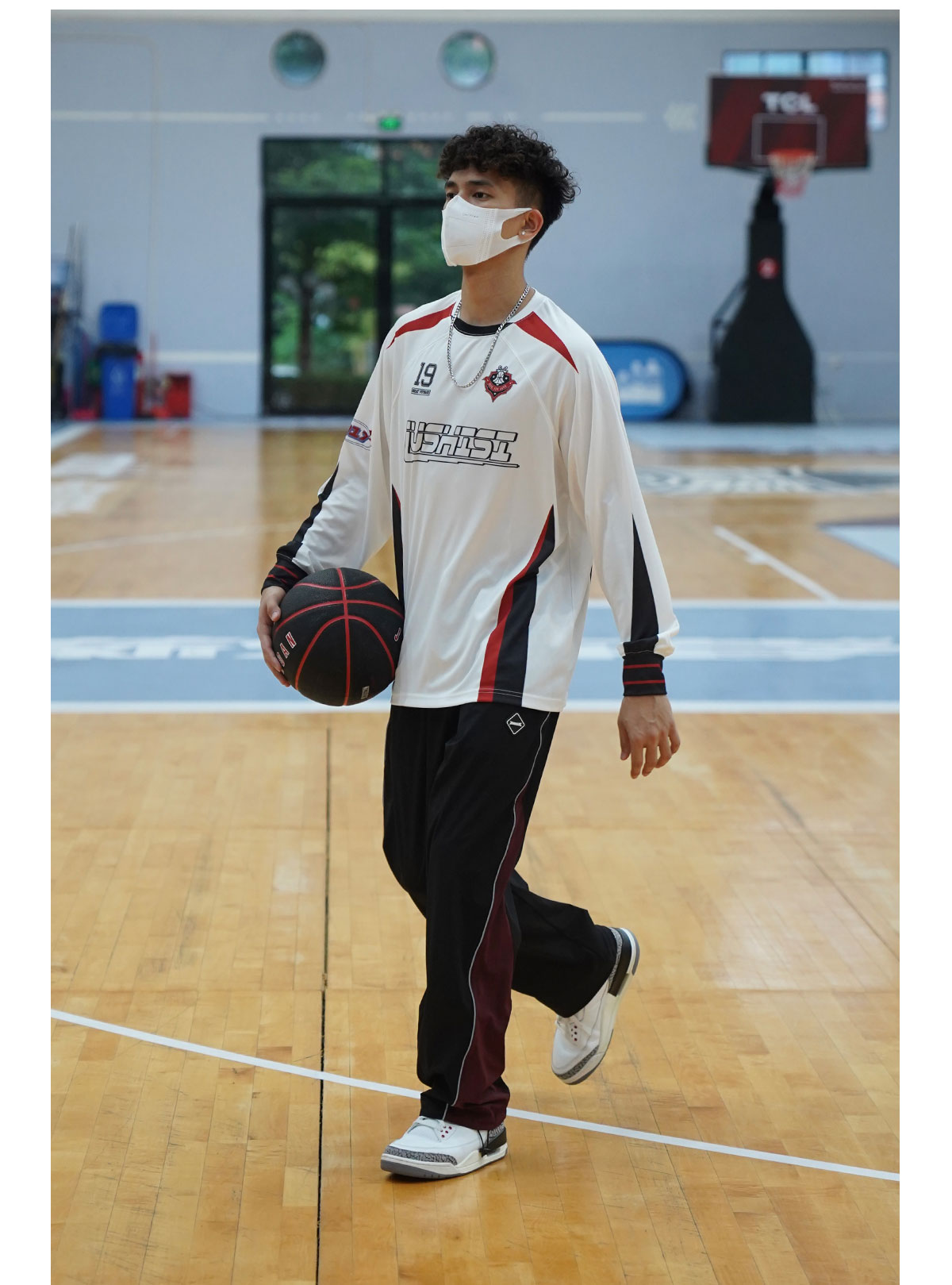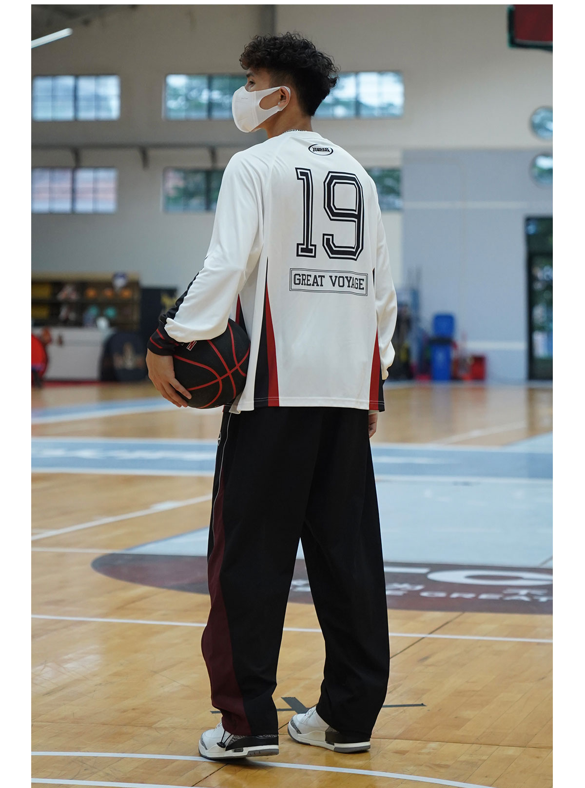 LUSHISI秋冬训练篮球跑步炽热拼接主题运动长裤薄拼色设计抽绳裤