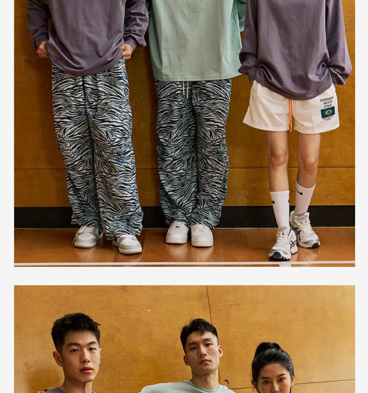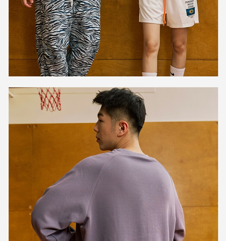 LUSHISI休闲美式街头短裤[紫星]主题宽松运动复古不过膝网眼裤男