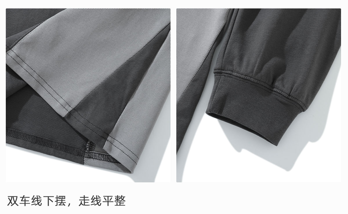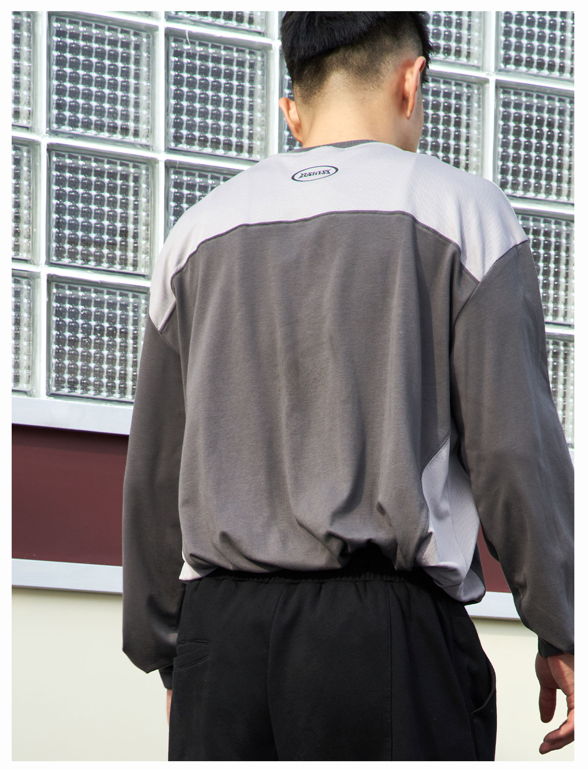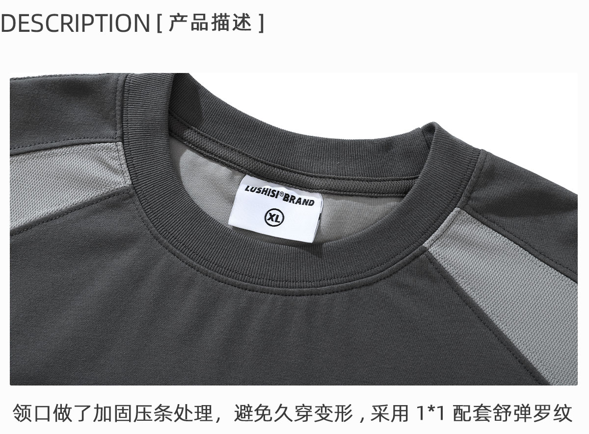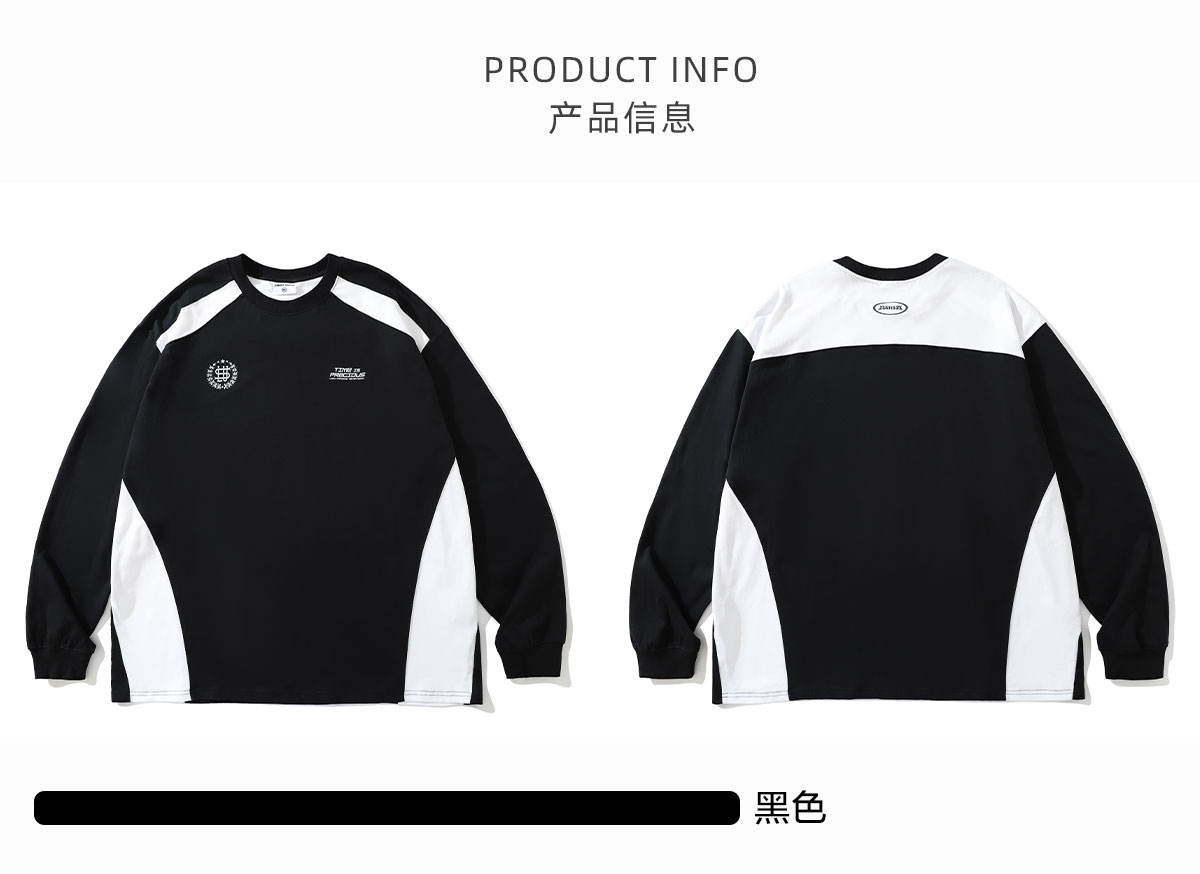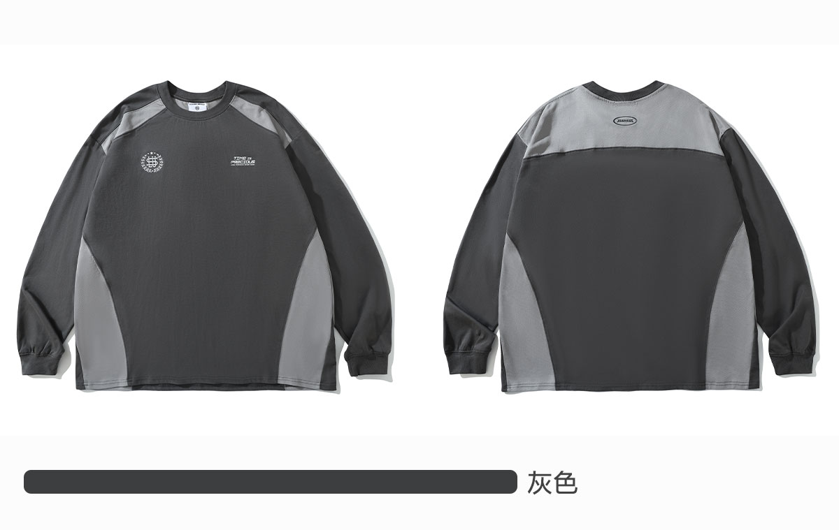 LUSHISI「棉感速干」双色拼接字母撞色运动复古风混纺棉长袖t恤