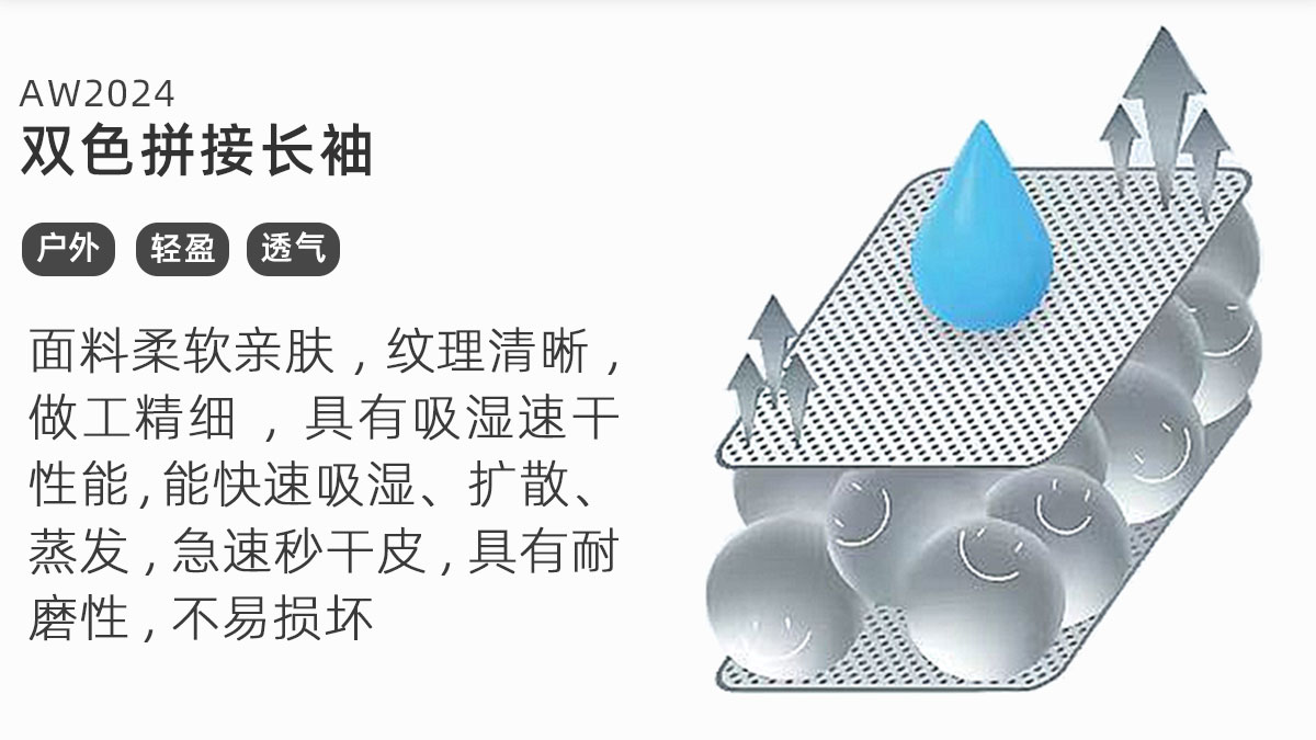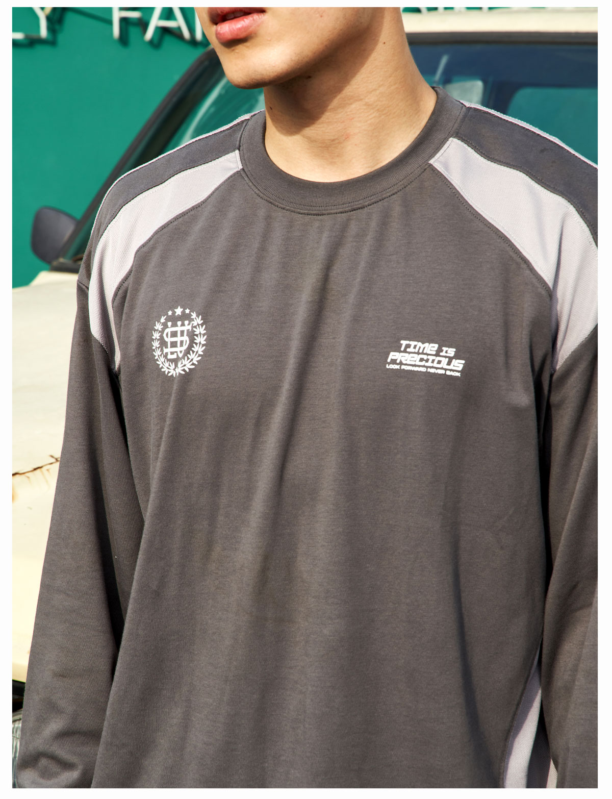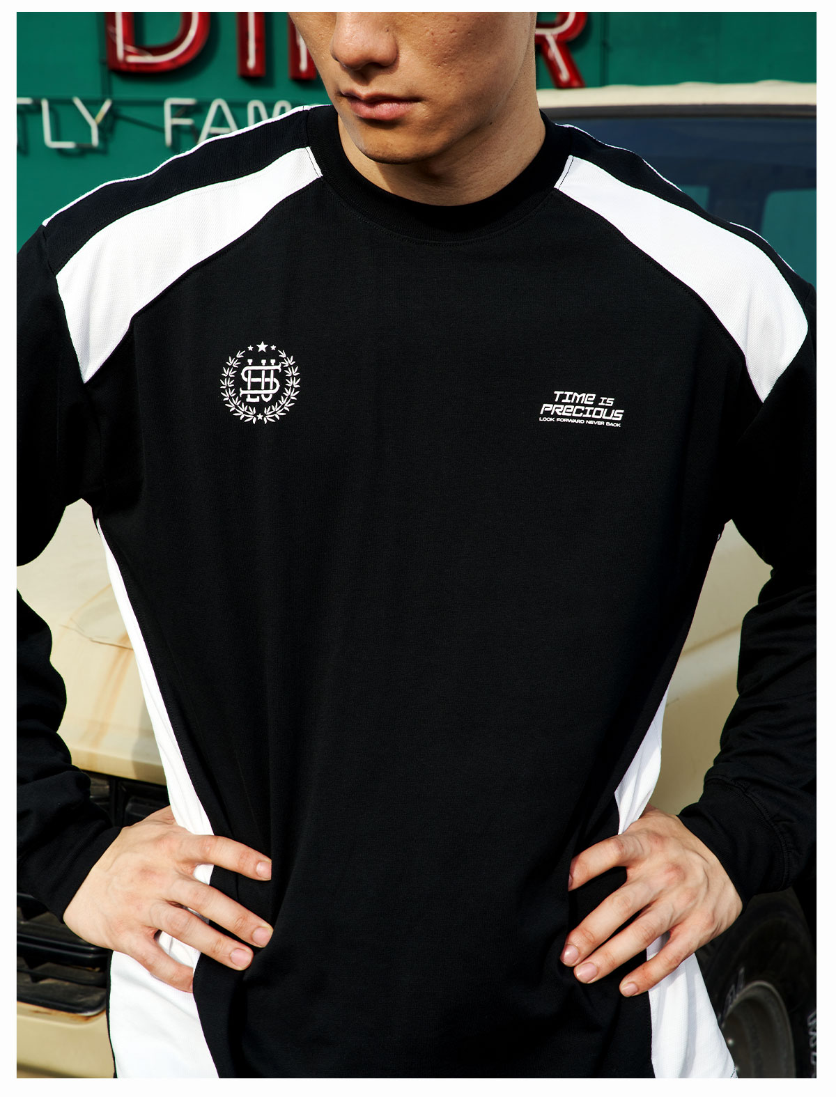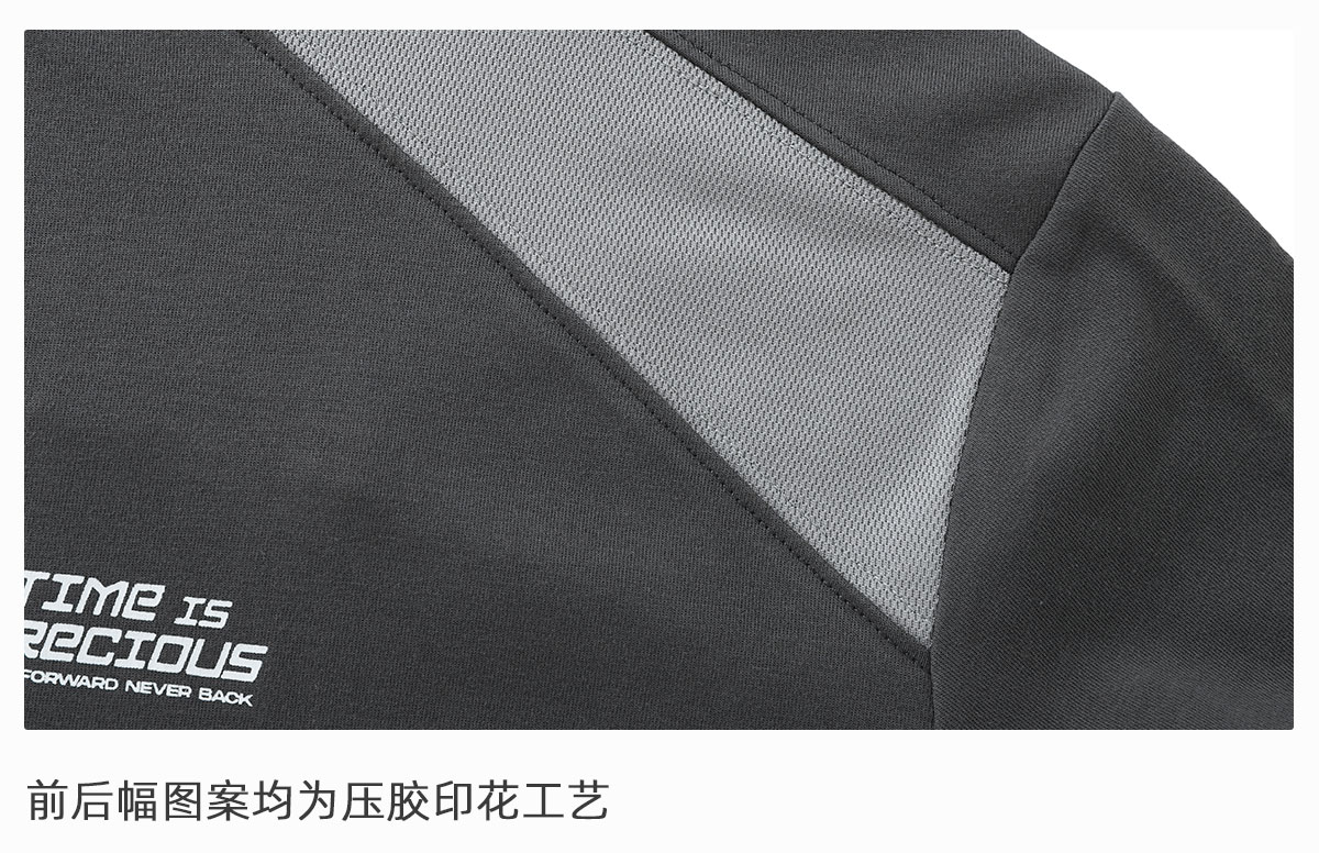 LUSHISI「棉感速干」双色拼接字母撞色运动复古风混纺棉长袖t恤